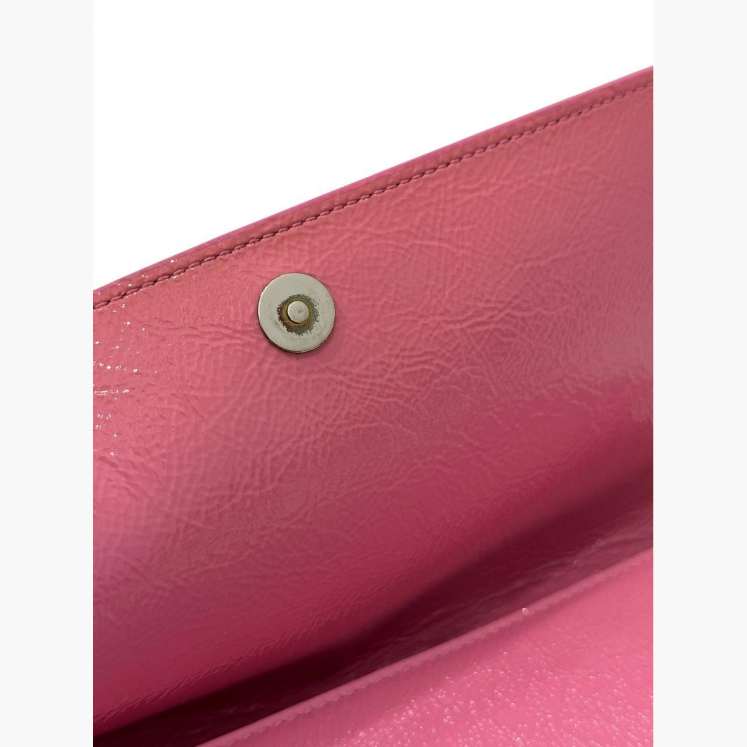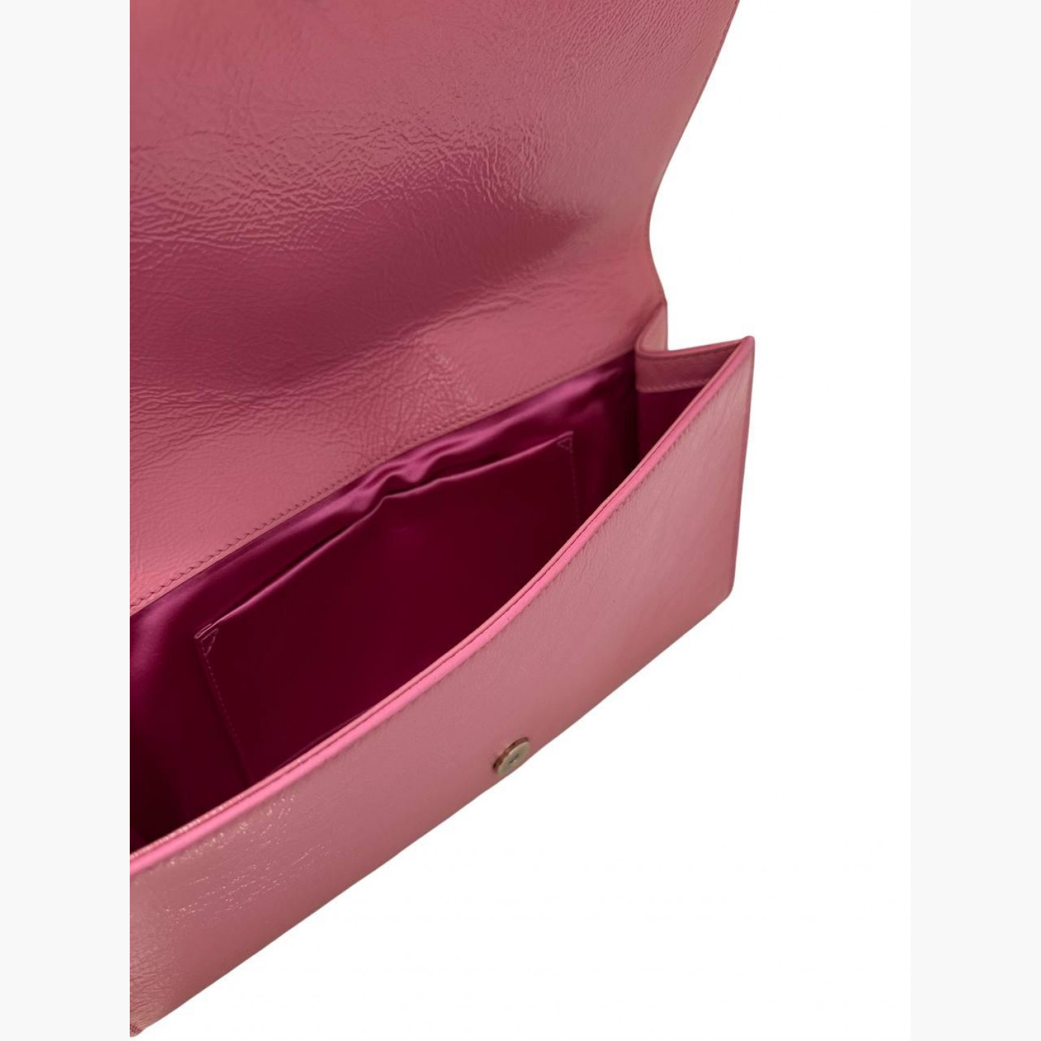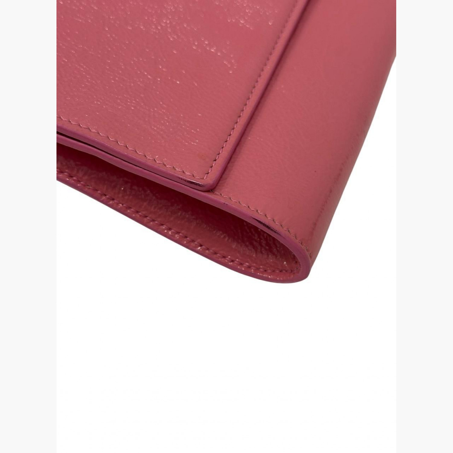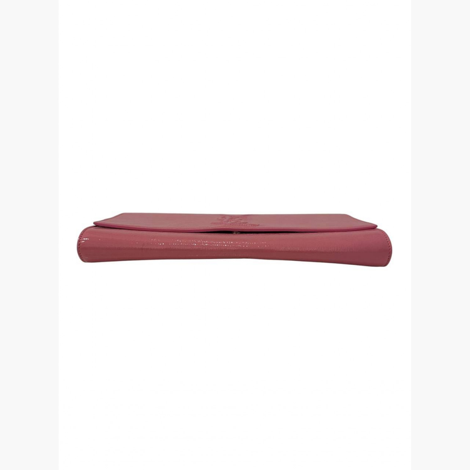 Рожевий лаковий клатч. Всередині одне основне відділення та кишеня. У хорошому стані, є потертості на шкірі та фурнітурі.