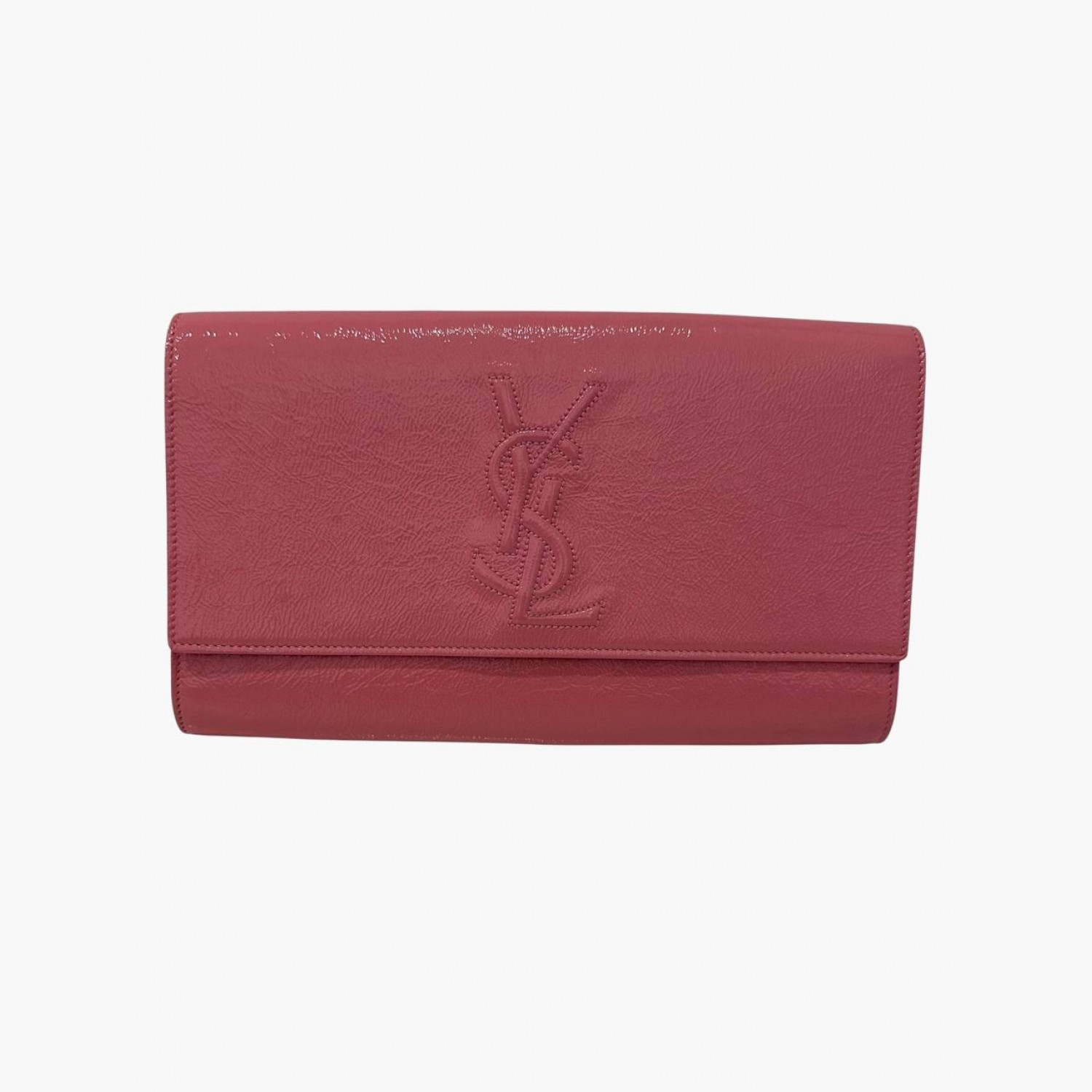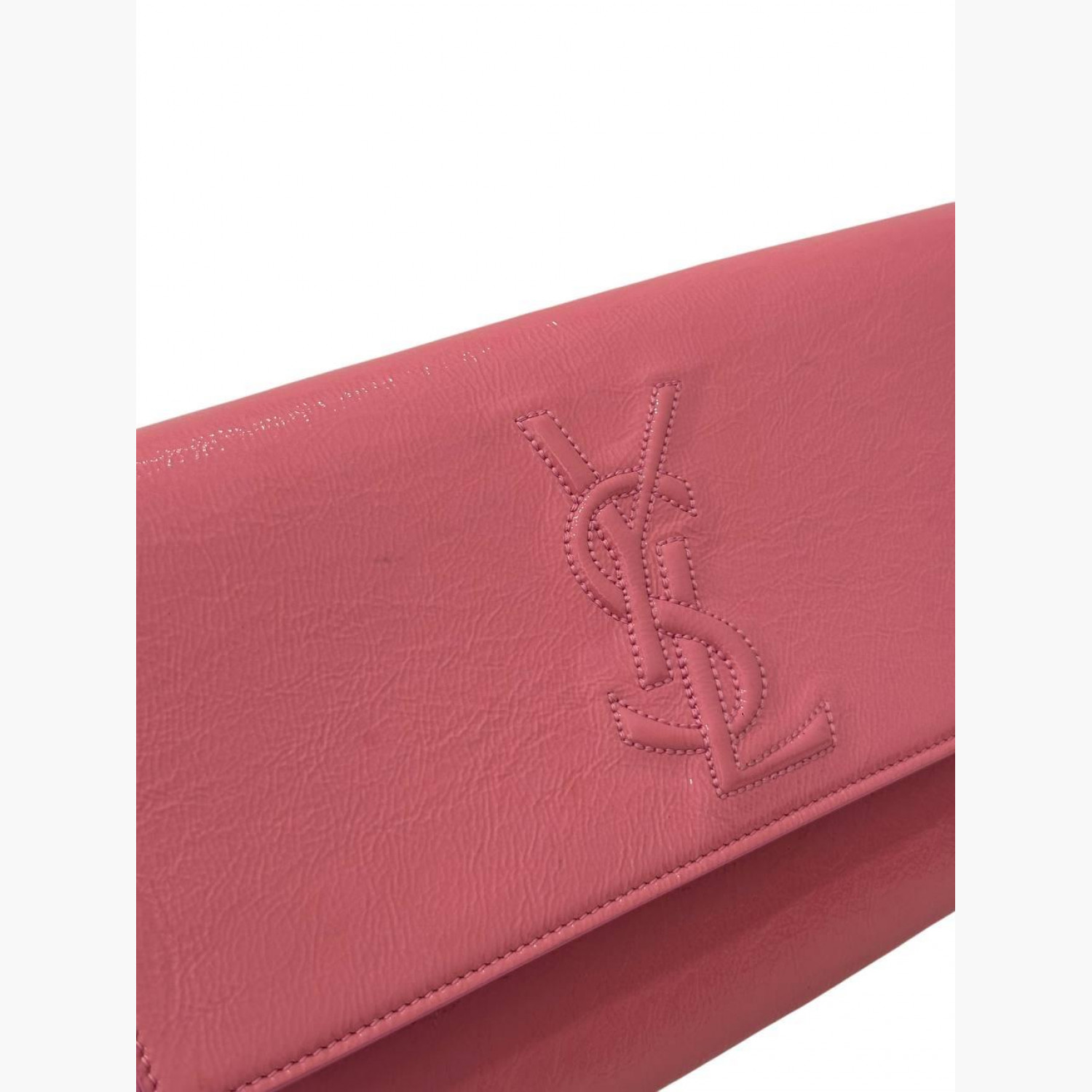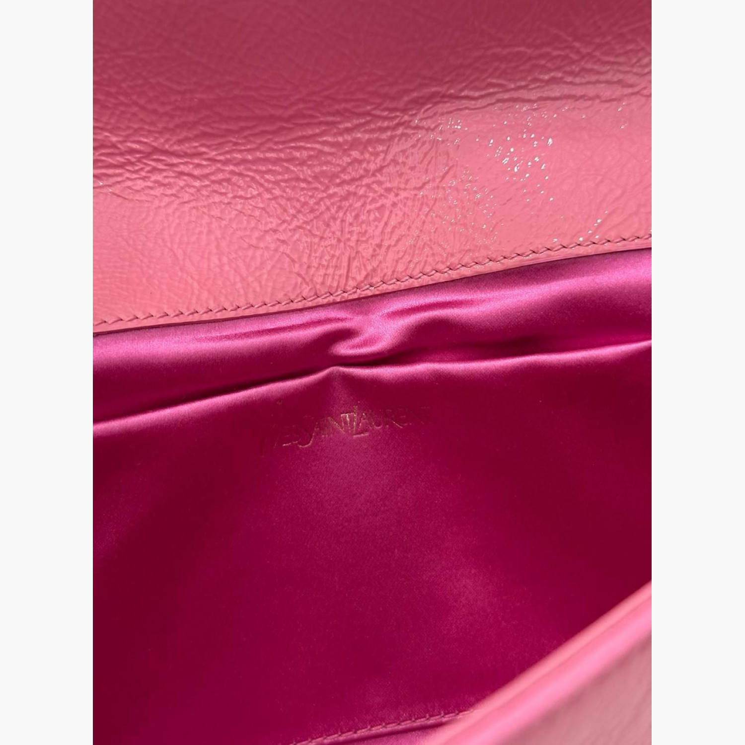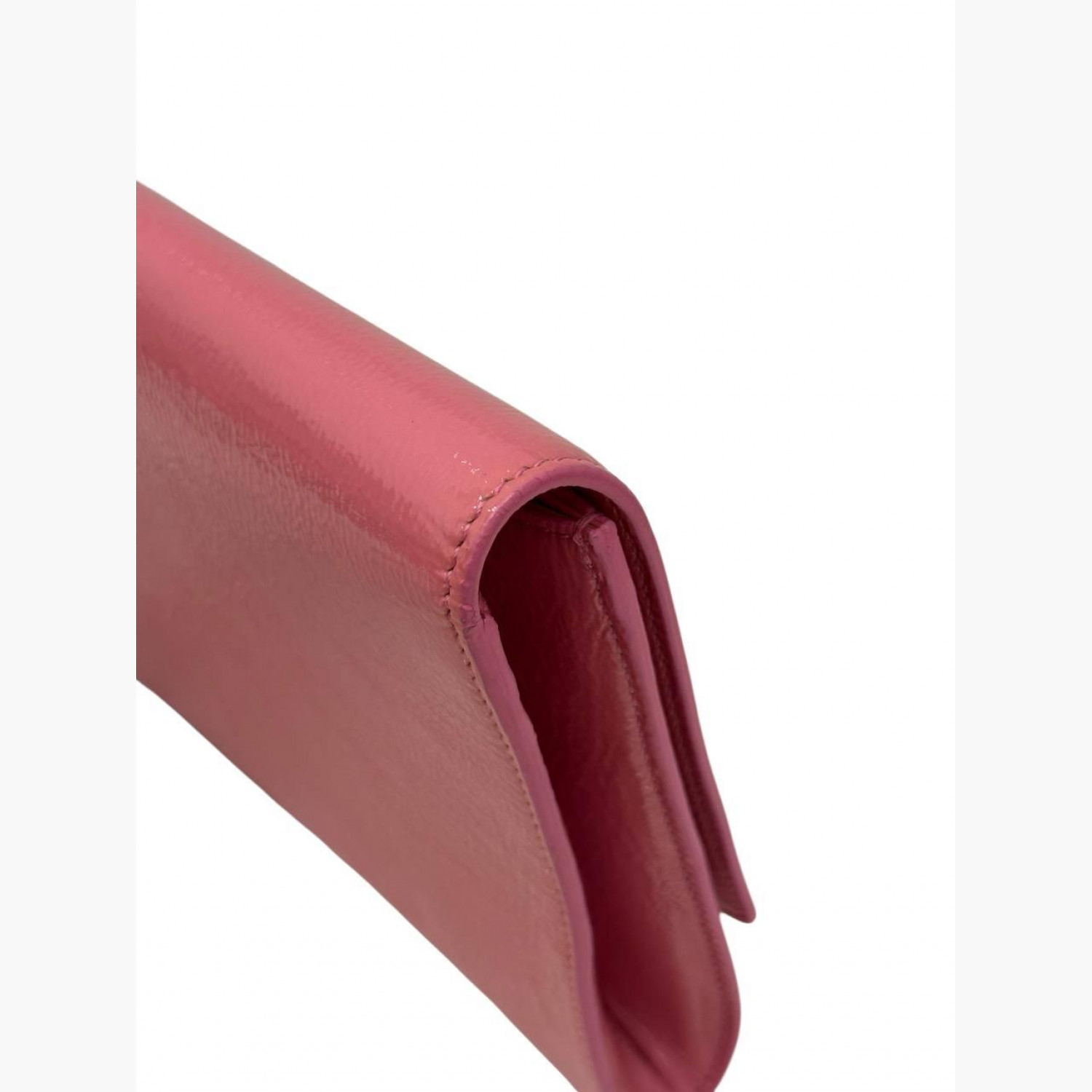 Рожевий лаковий клатч. Всередині одне основне відділення та кишеня. У хорошому стані, є потертості на шкірі та фурнітурі.