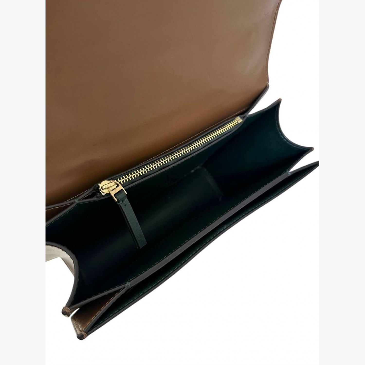 Коричнева шкіряна сумка. Усередині три основних відділення і дві кишені. У хорошому стані, є потертості на шкірі та фурнітурі.