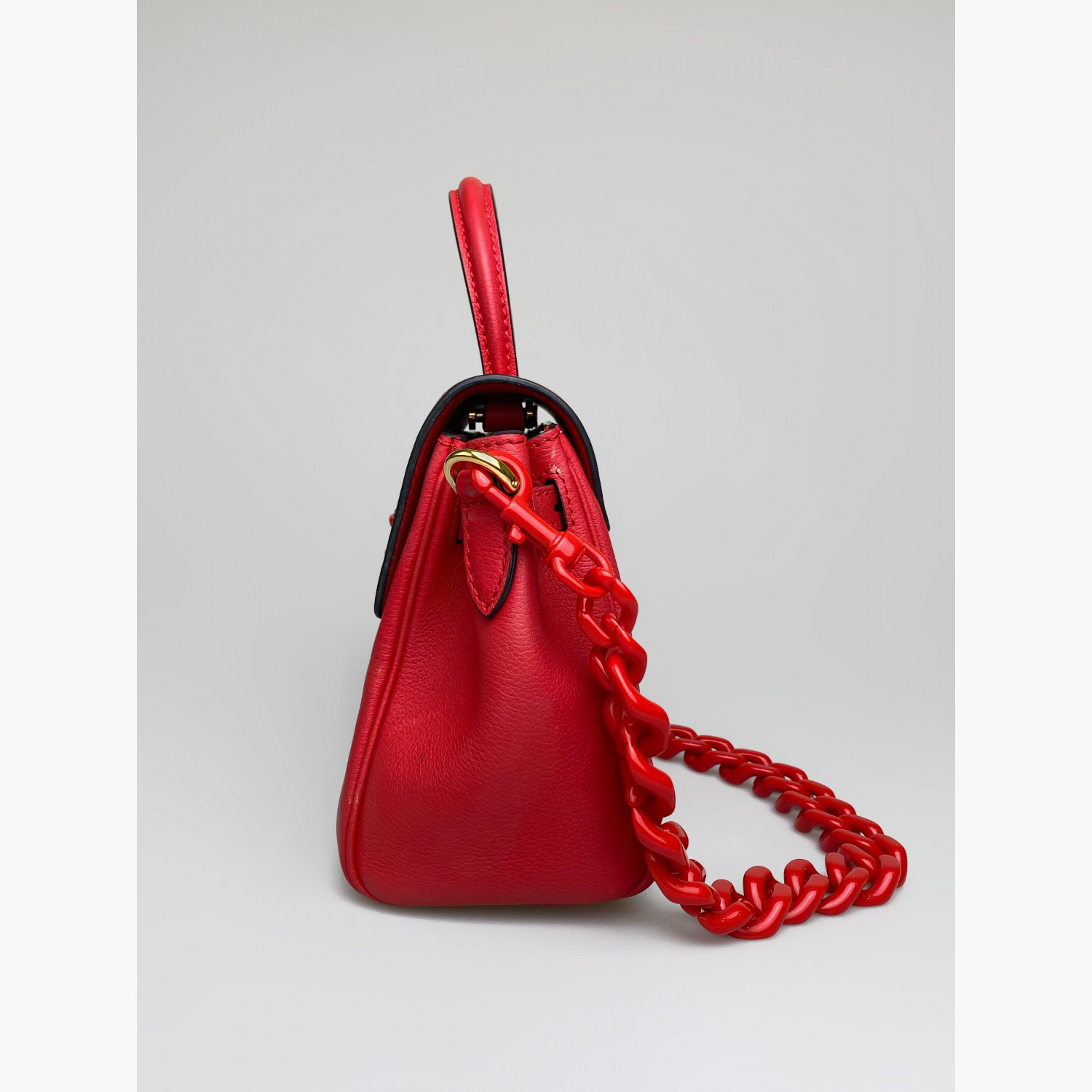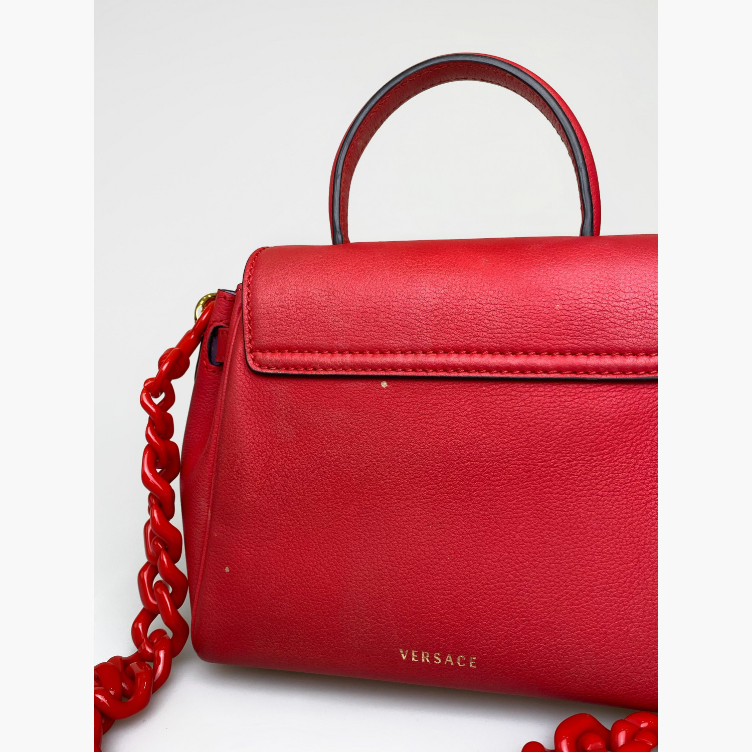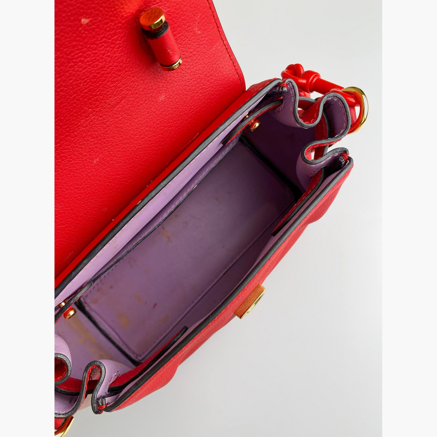Сумка в хорошому стані, присутні потертості і сліди вжитку. Виконана з зернистої матової шкіри. Всередині одне основне відділення, накладна бічна кишеня. З'ємний ланцюжок із пластику, фурнітура золотистого кольору.