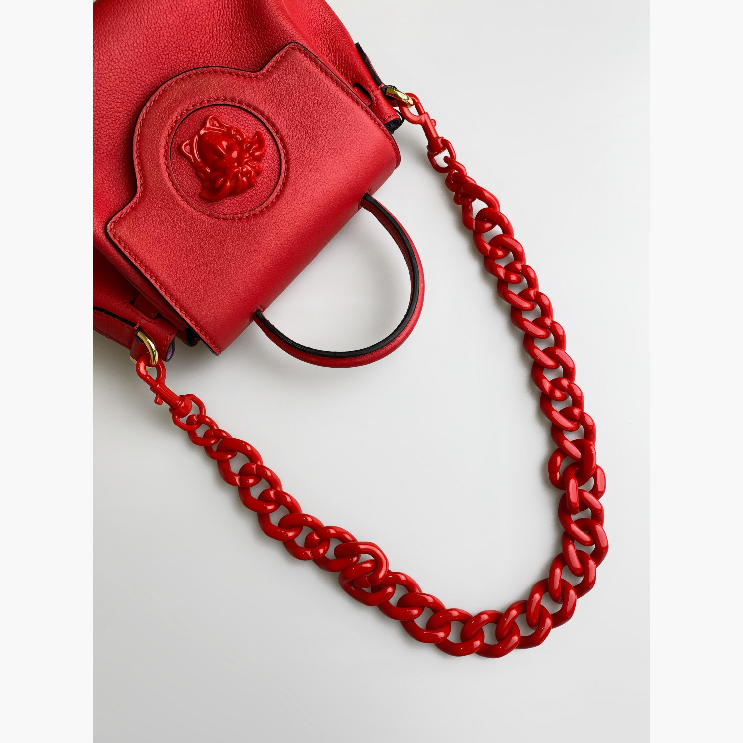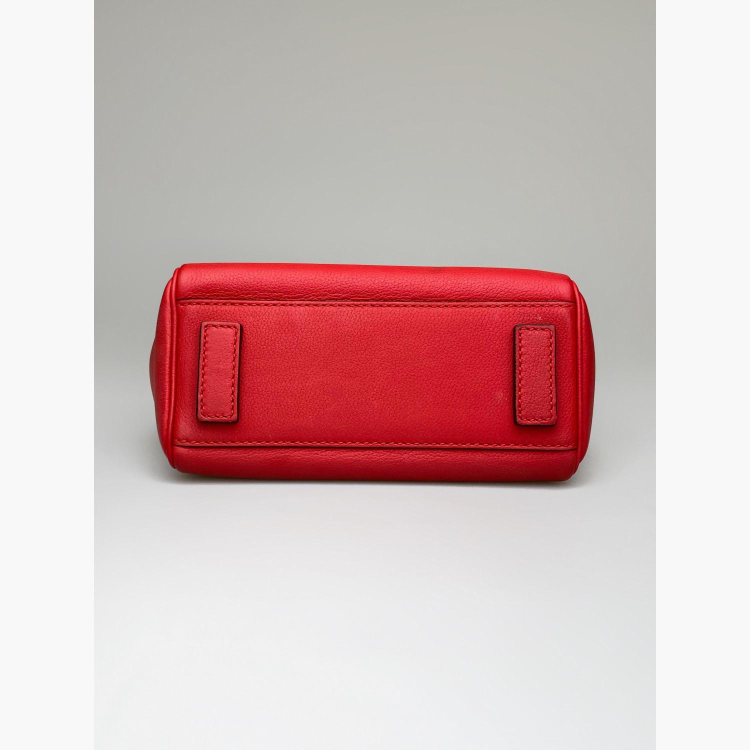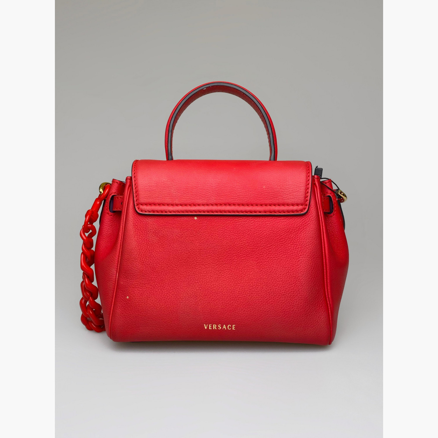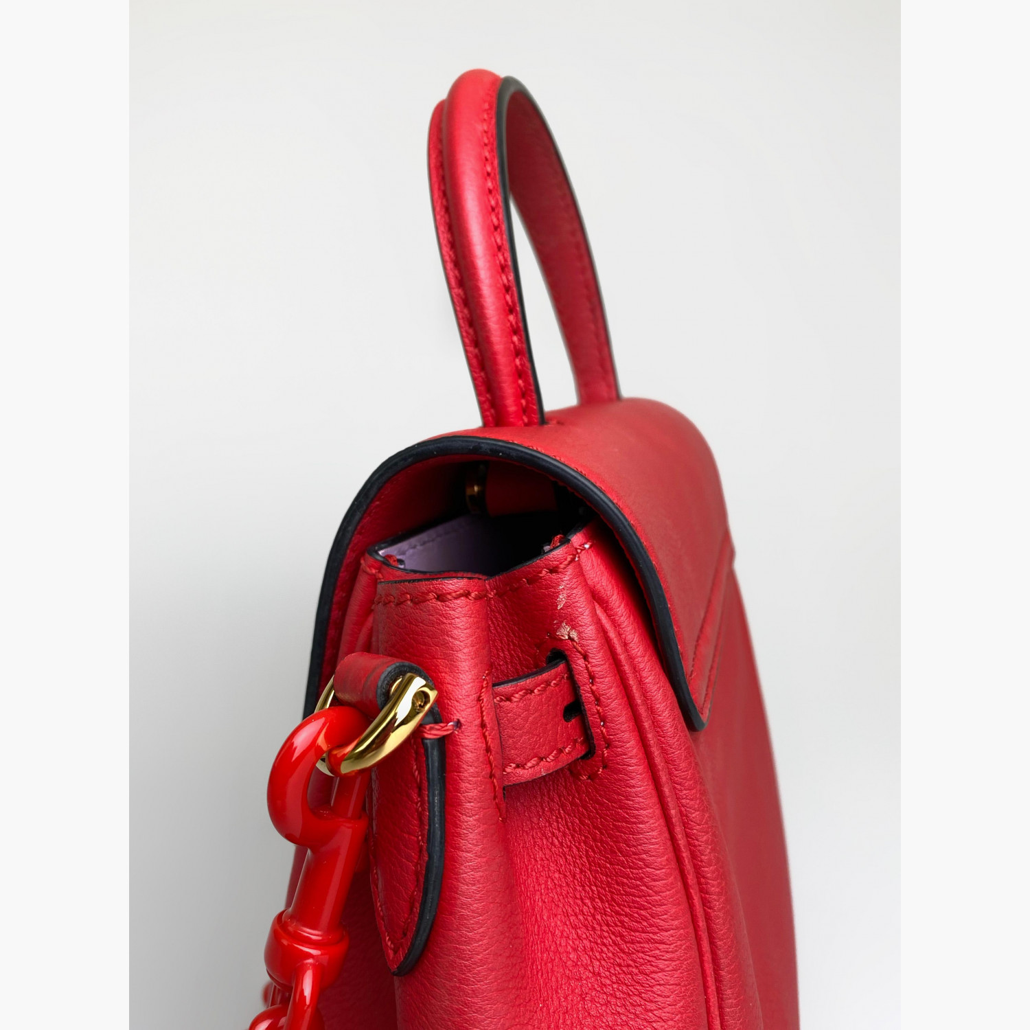Сумка в хорошому стані, присутні потертості і сліди вжитку. Виконана з зернистої матової шкіри. Всередині одне основне відділення, накладна бічна кишеня. З'ємний ланцюжок із пластику, фурнітура золотистого кольору.
