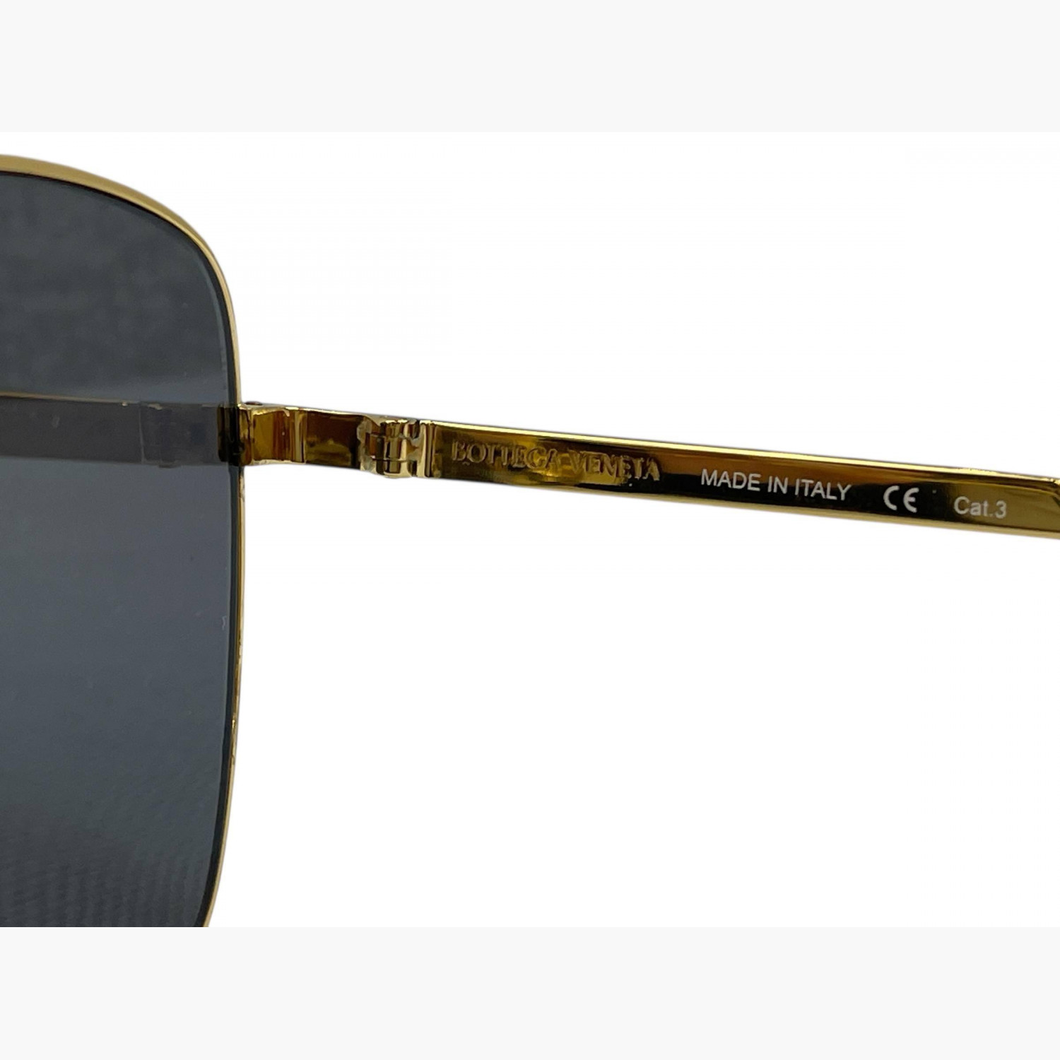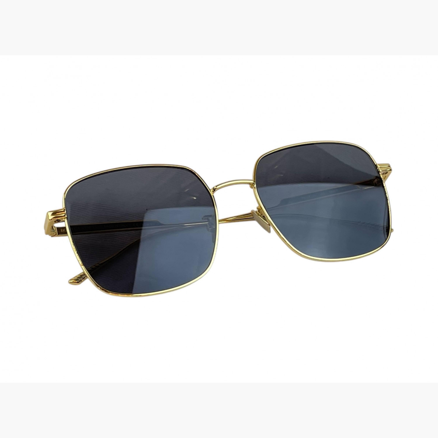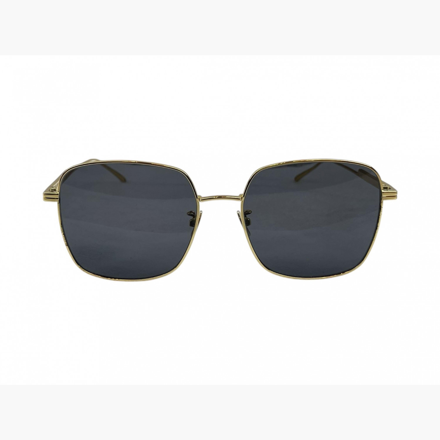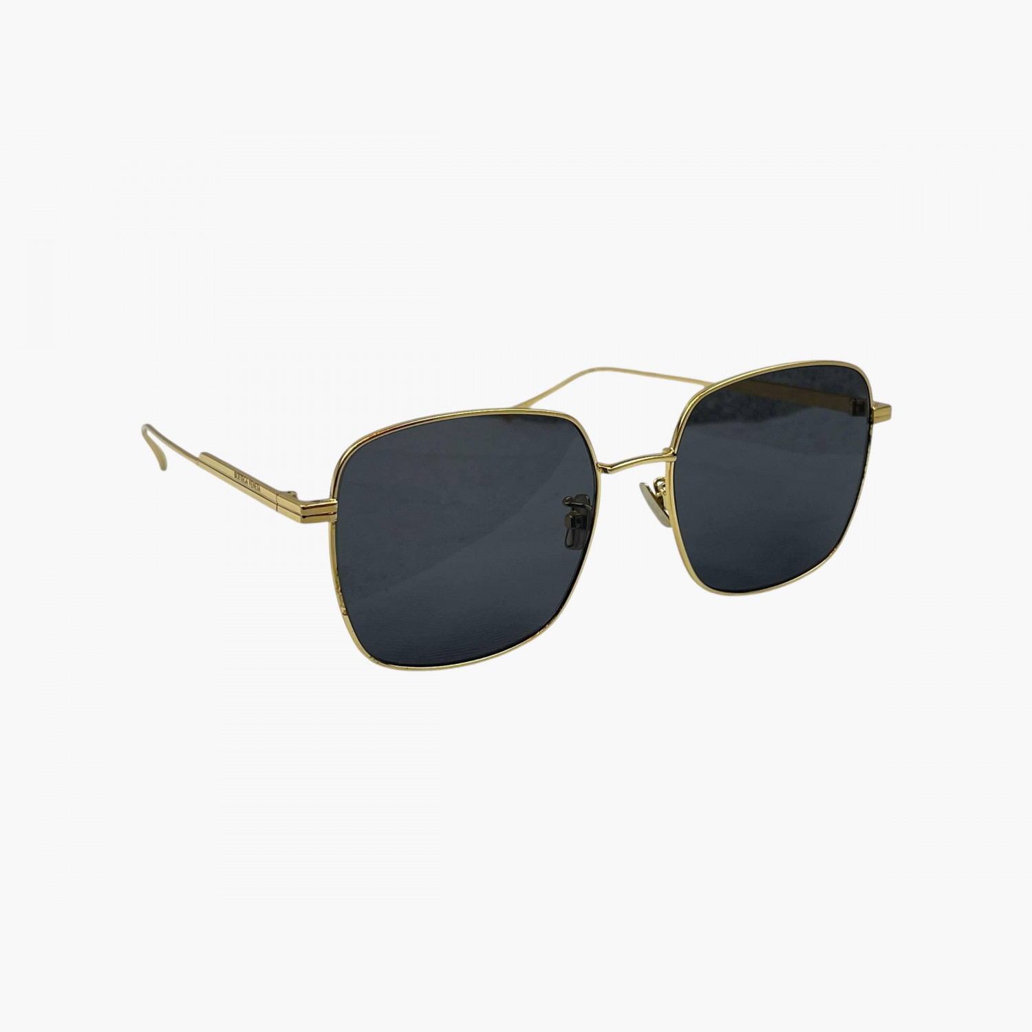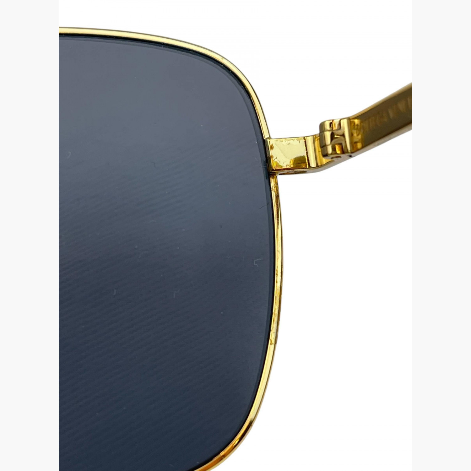 Сонцезахисні окуляри квадратної форми сірого кольору з тонкою металевою оправою золотого кольору. У комплекті рідний футляр.