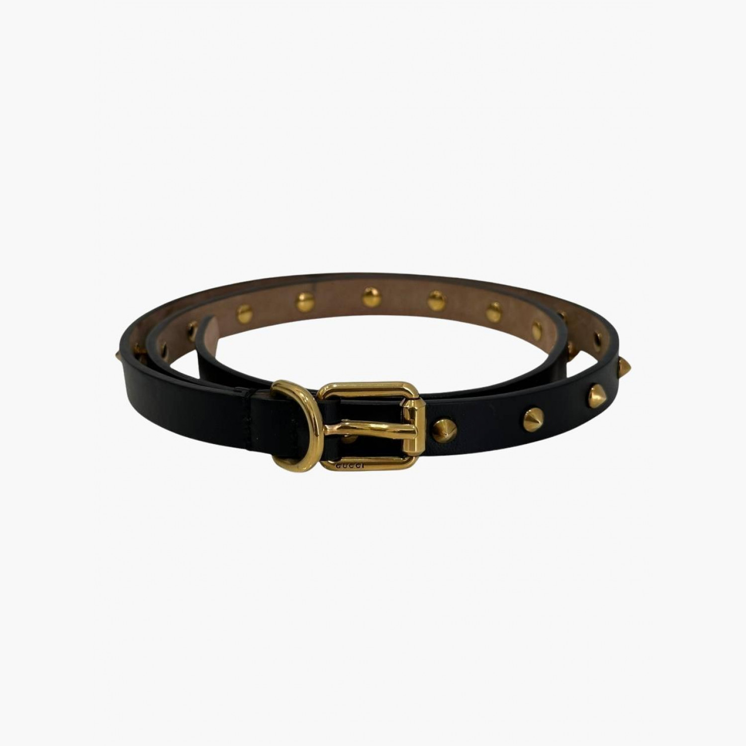 Чорний шкіряний ремінь із золотистими шипами. У гарному стані, є потертості.