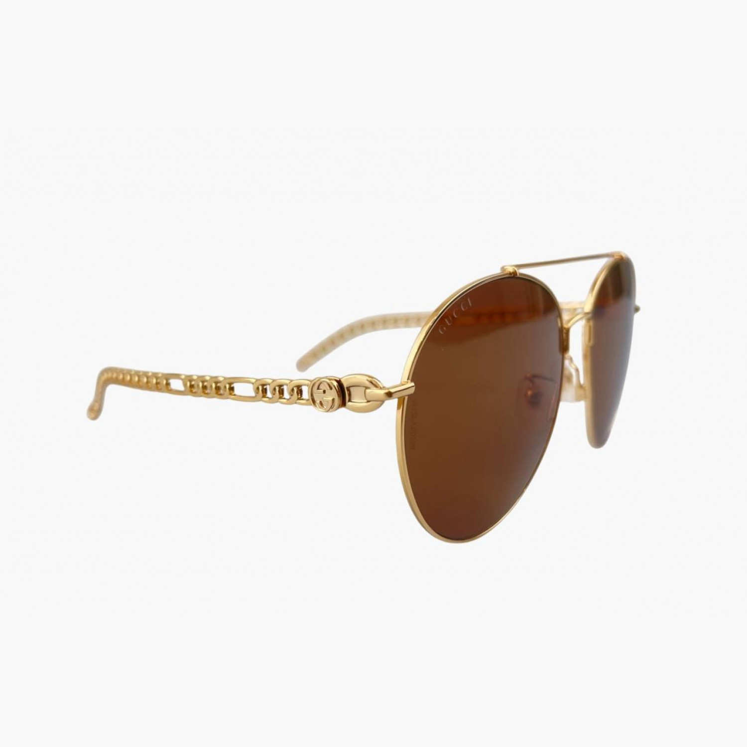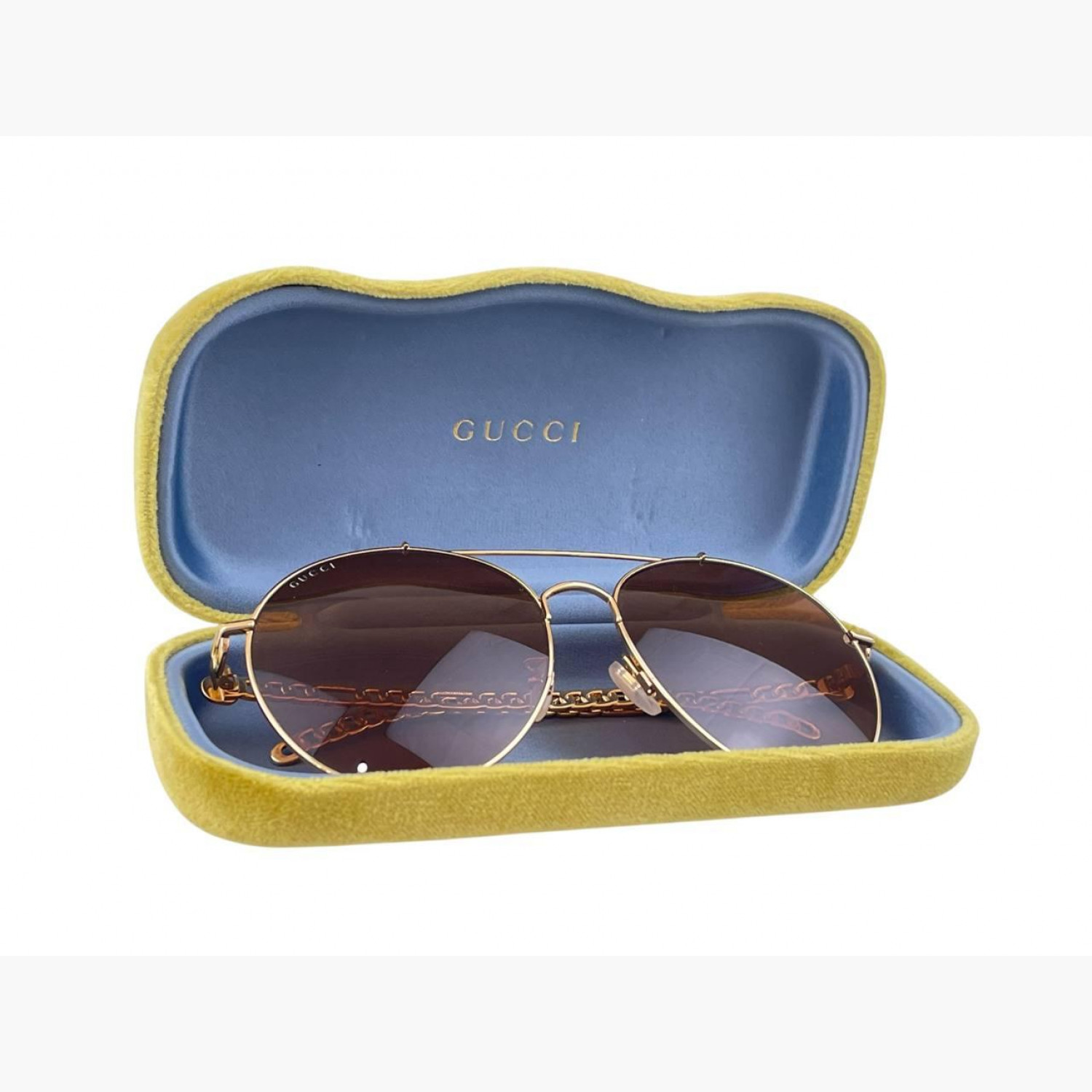 Сонцезахисні окуляри з коричневими лінзами та золотою оправою. У комплекті футляр. У відмінному стані.