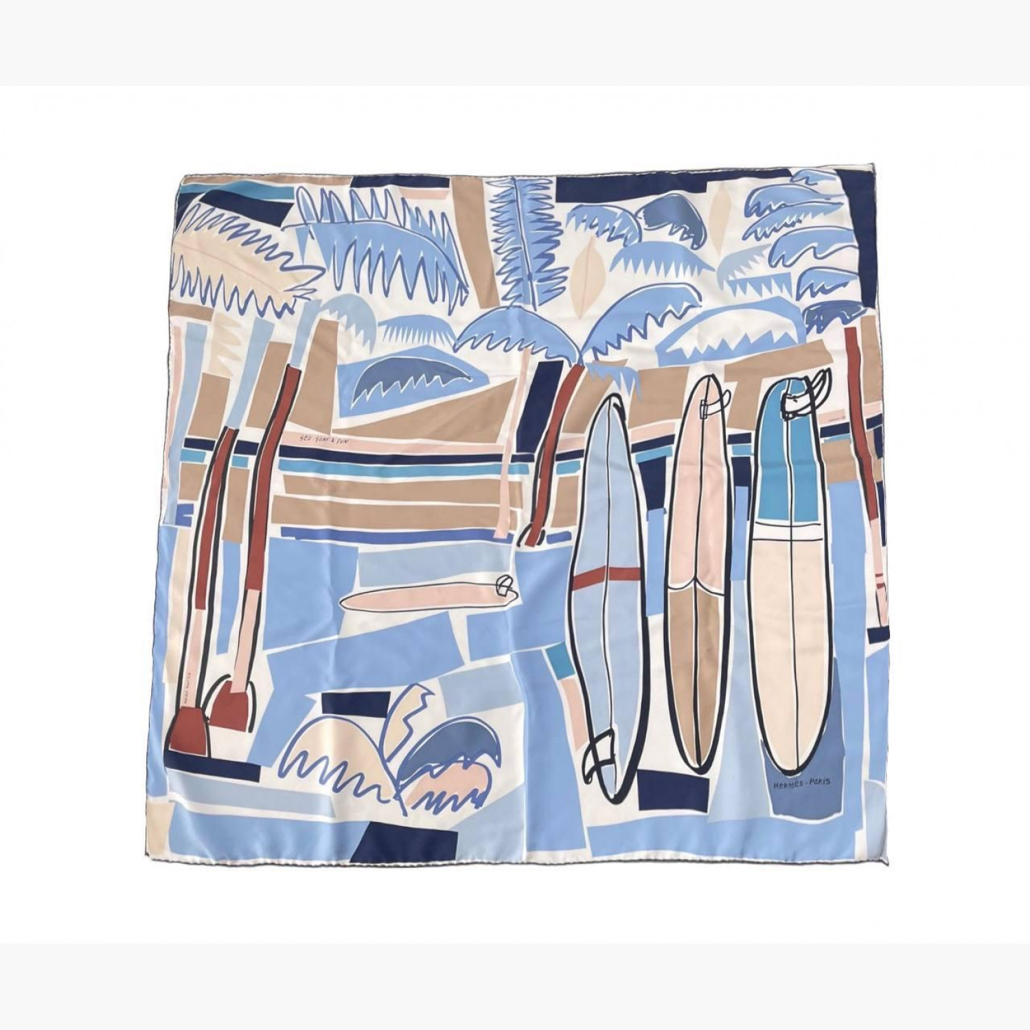 Блакитна шовкова хустка «Sea, Surf and Fun». У відмінному стані, є затяжки.