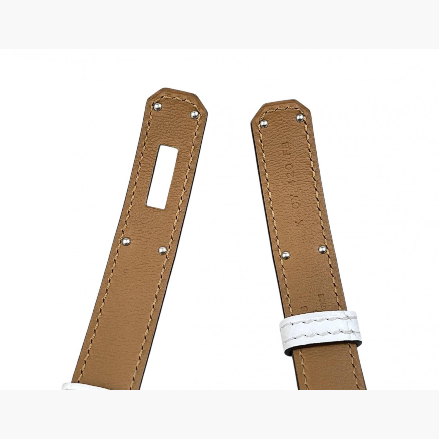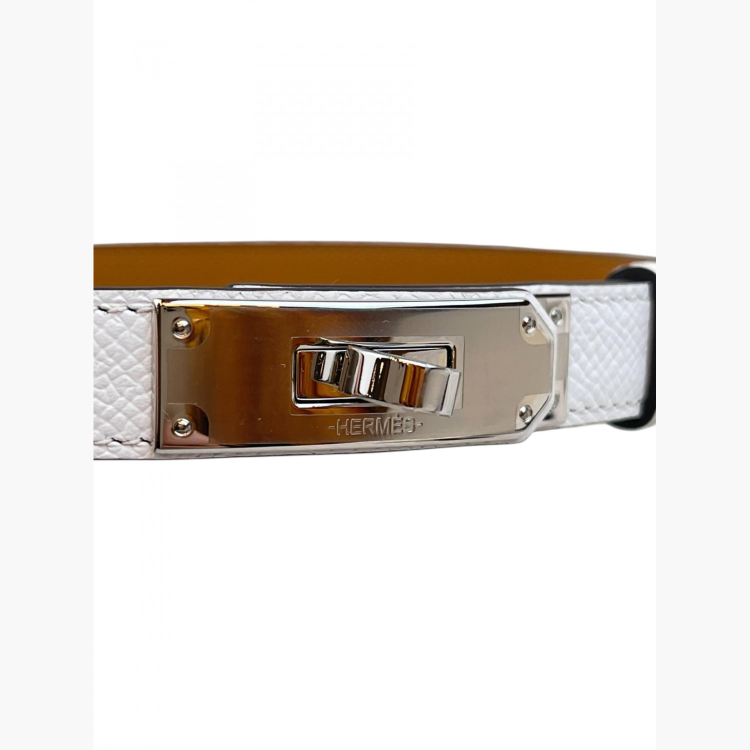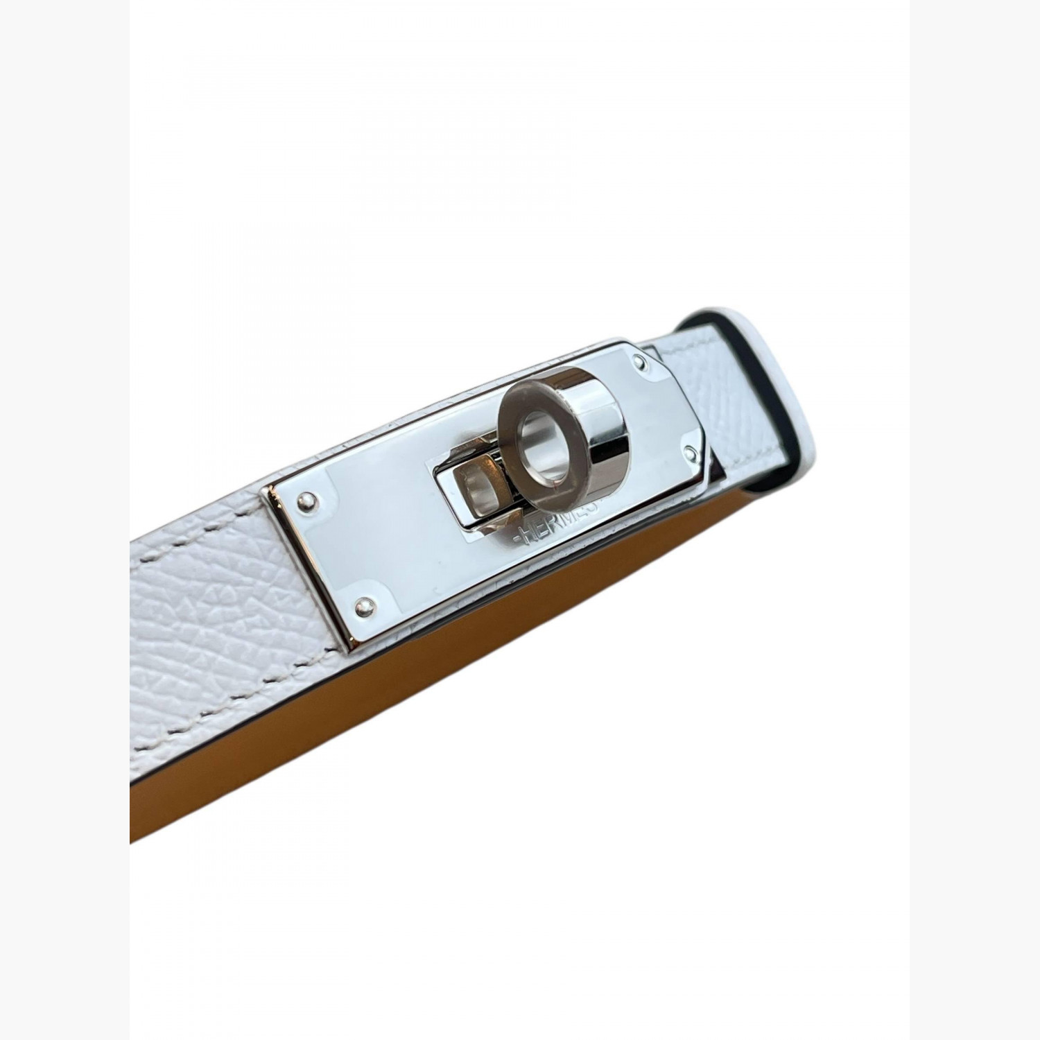 Білий шкіряний ремінь із металевим замком Kelly сріблястого кольору. Розмір регулюється.