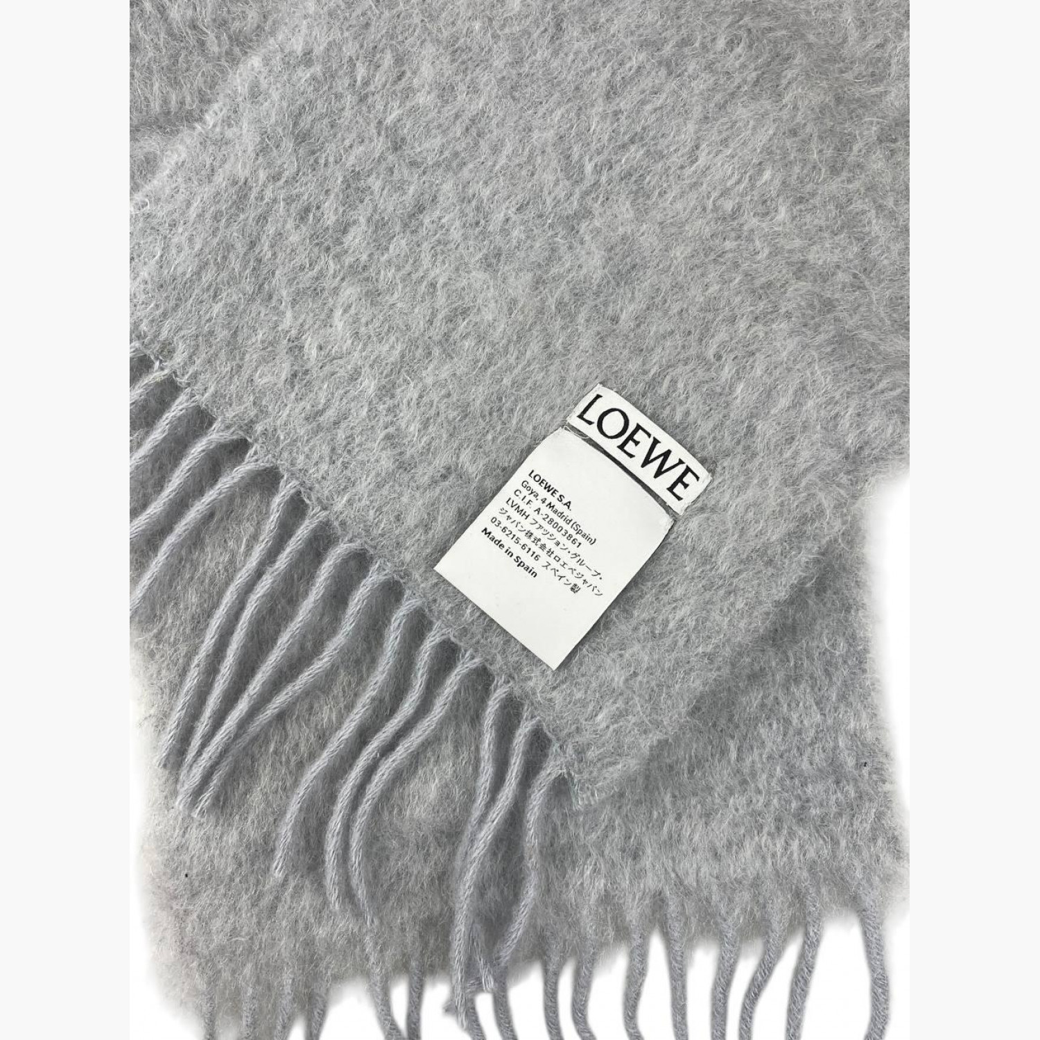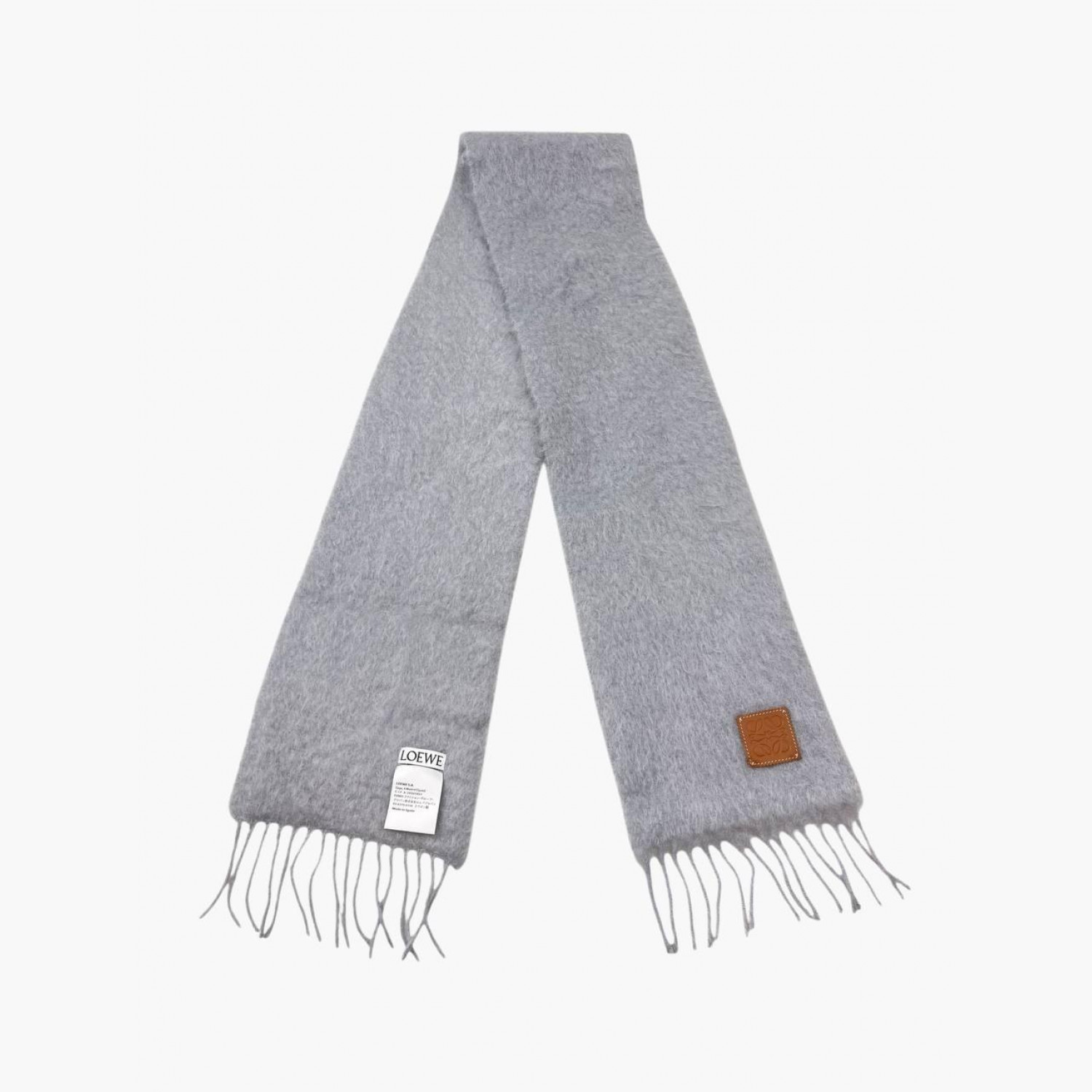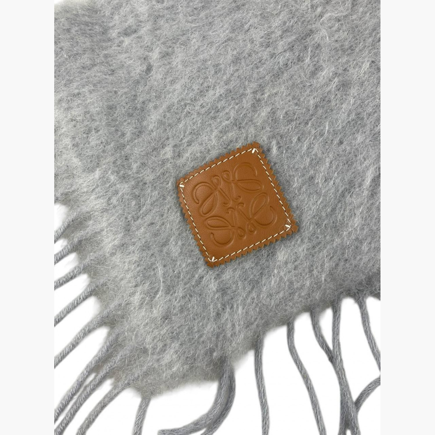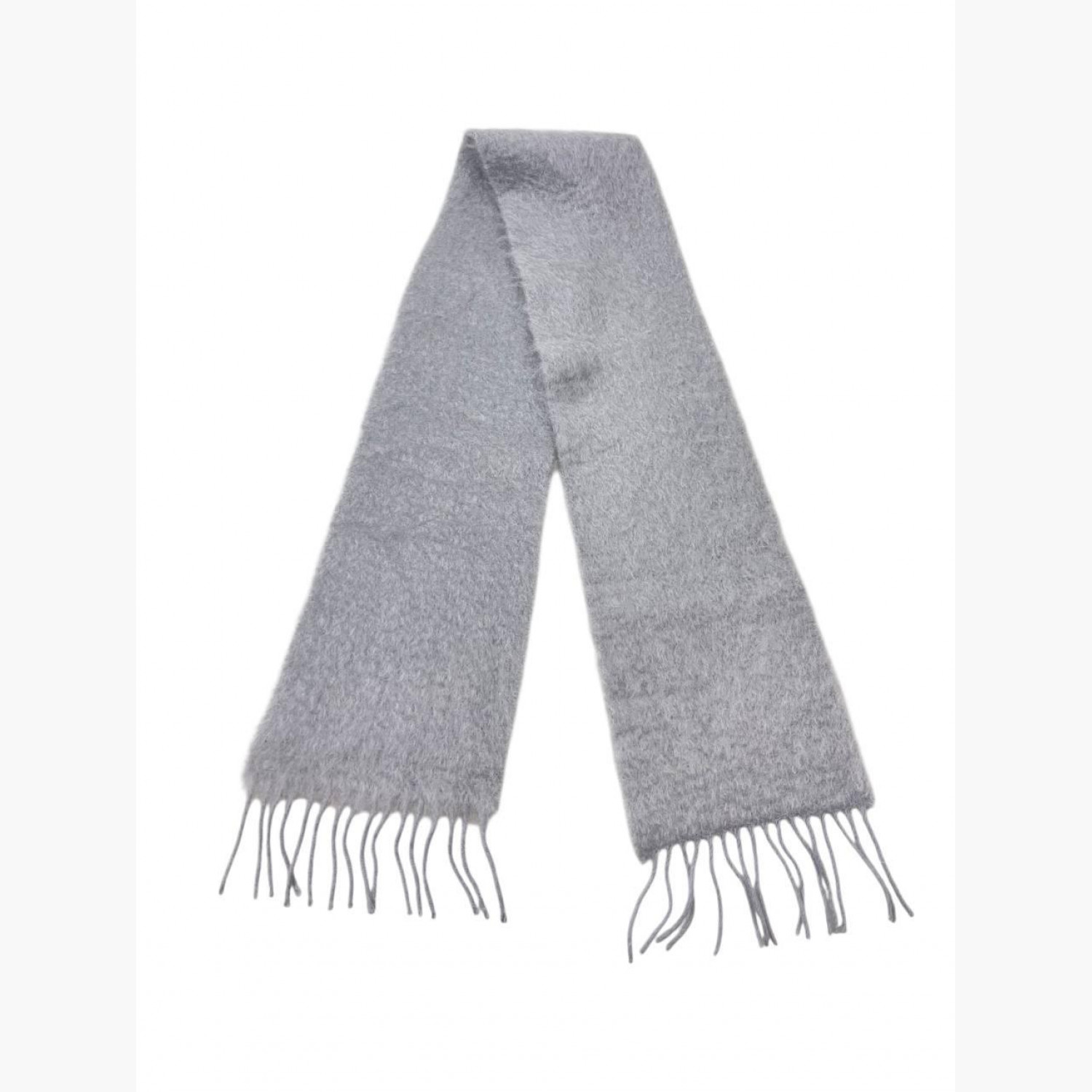 Сірий шарф із мохеру з бахромою. Склад: 50% мохер, 48% шерсть, 2% поліамід. Відмінний стан, без слідів вжитку.