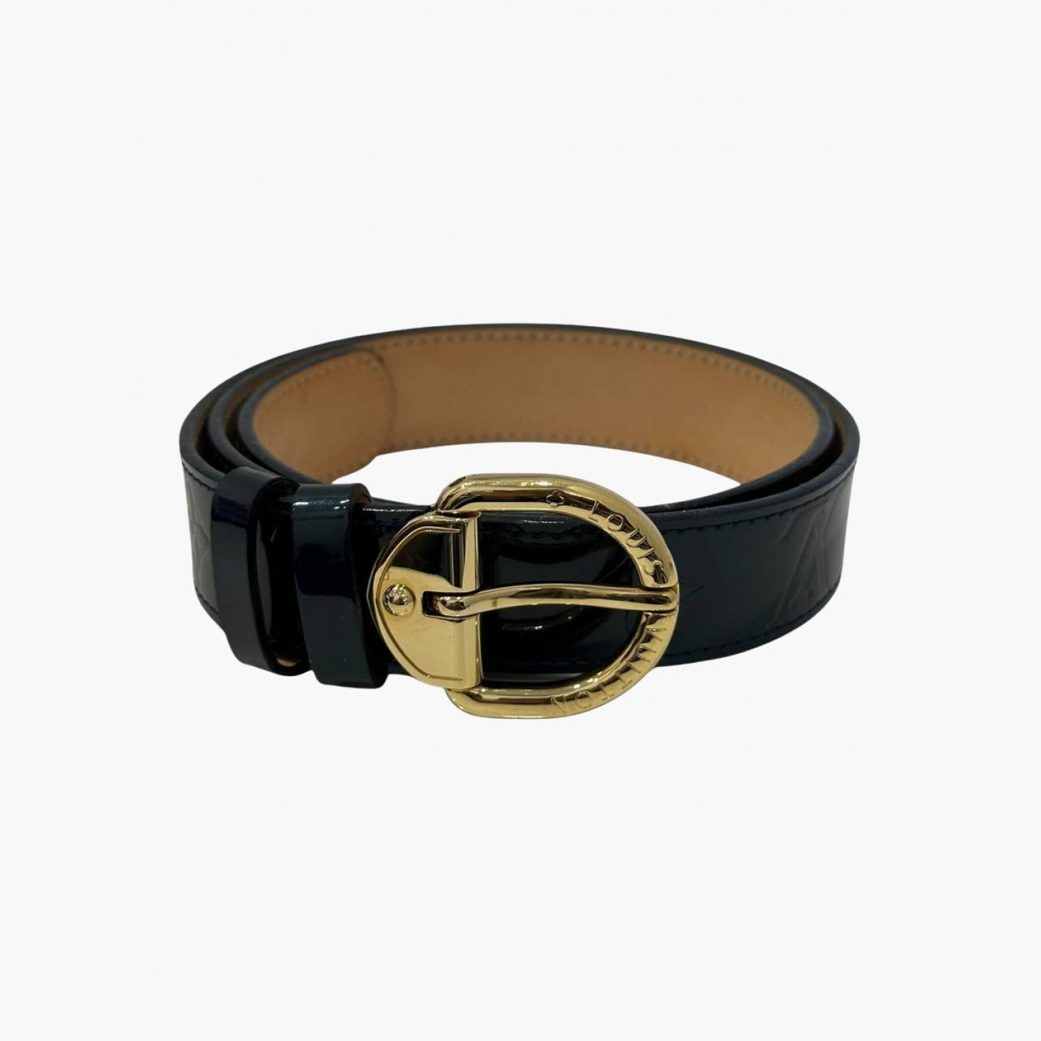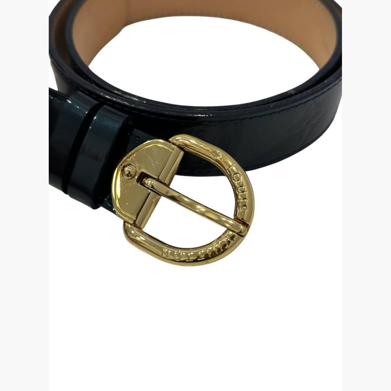 Зелений лакований ремінь із золотистою пряжкою. У гарному стані, є потертості.