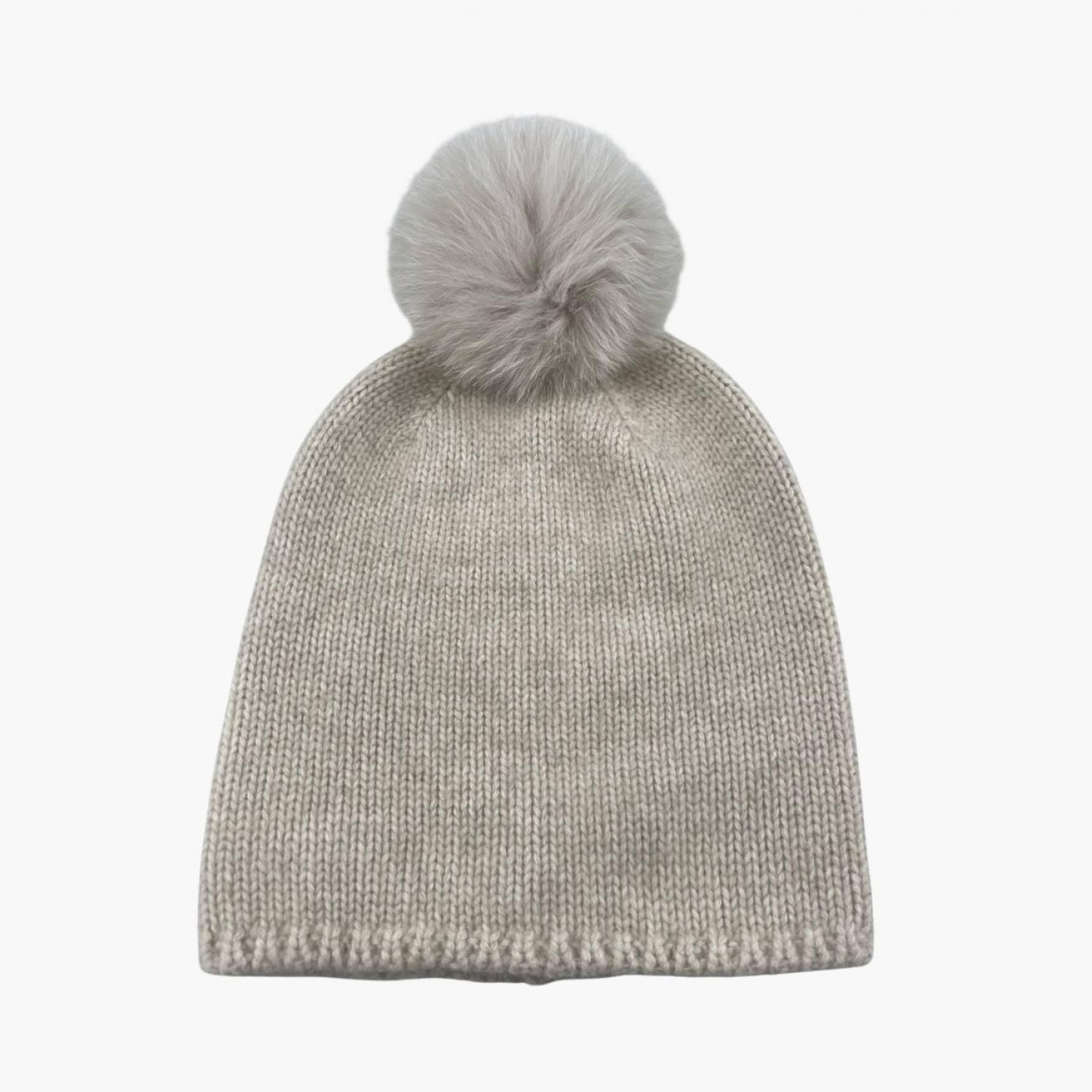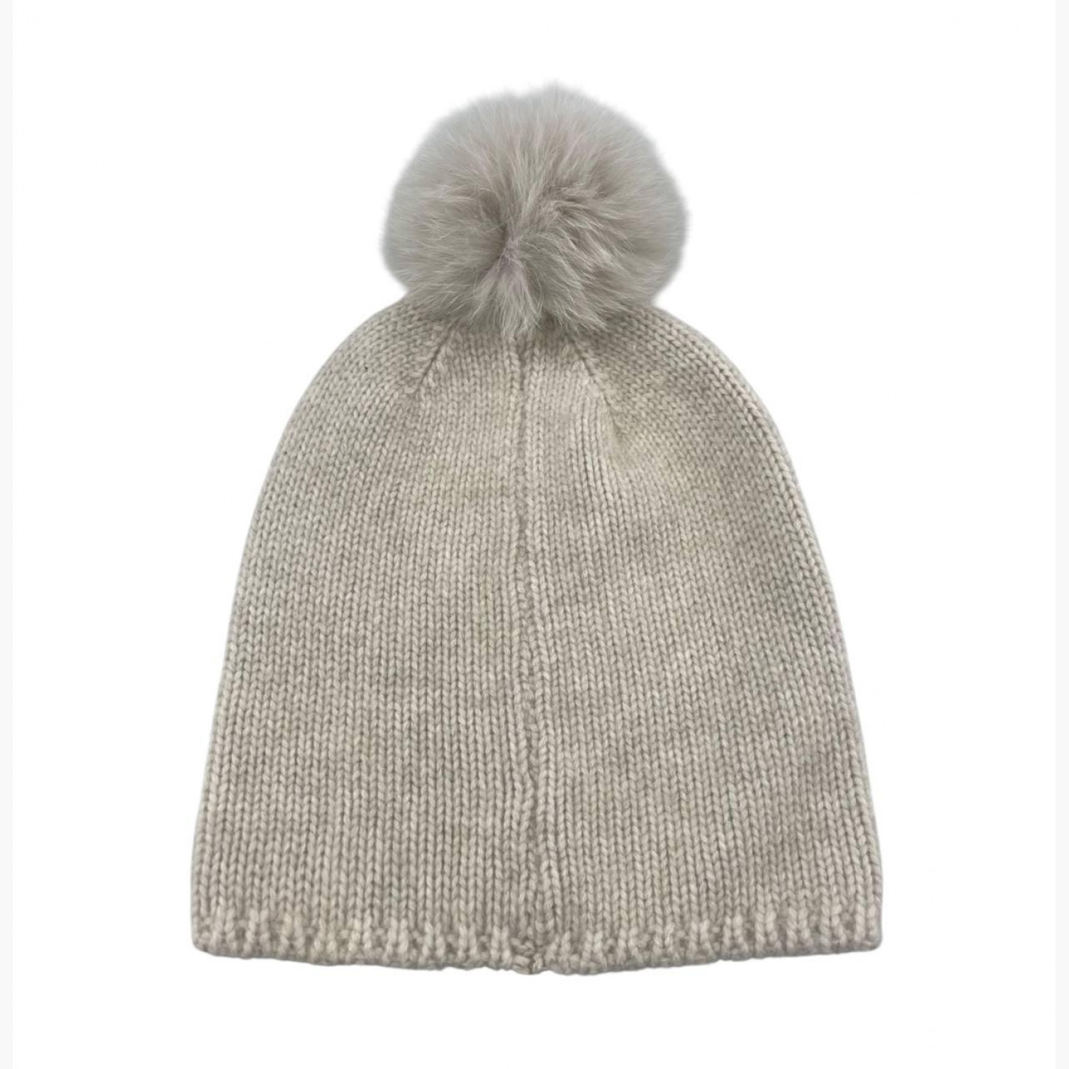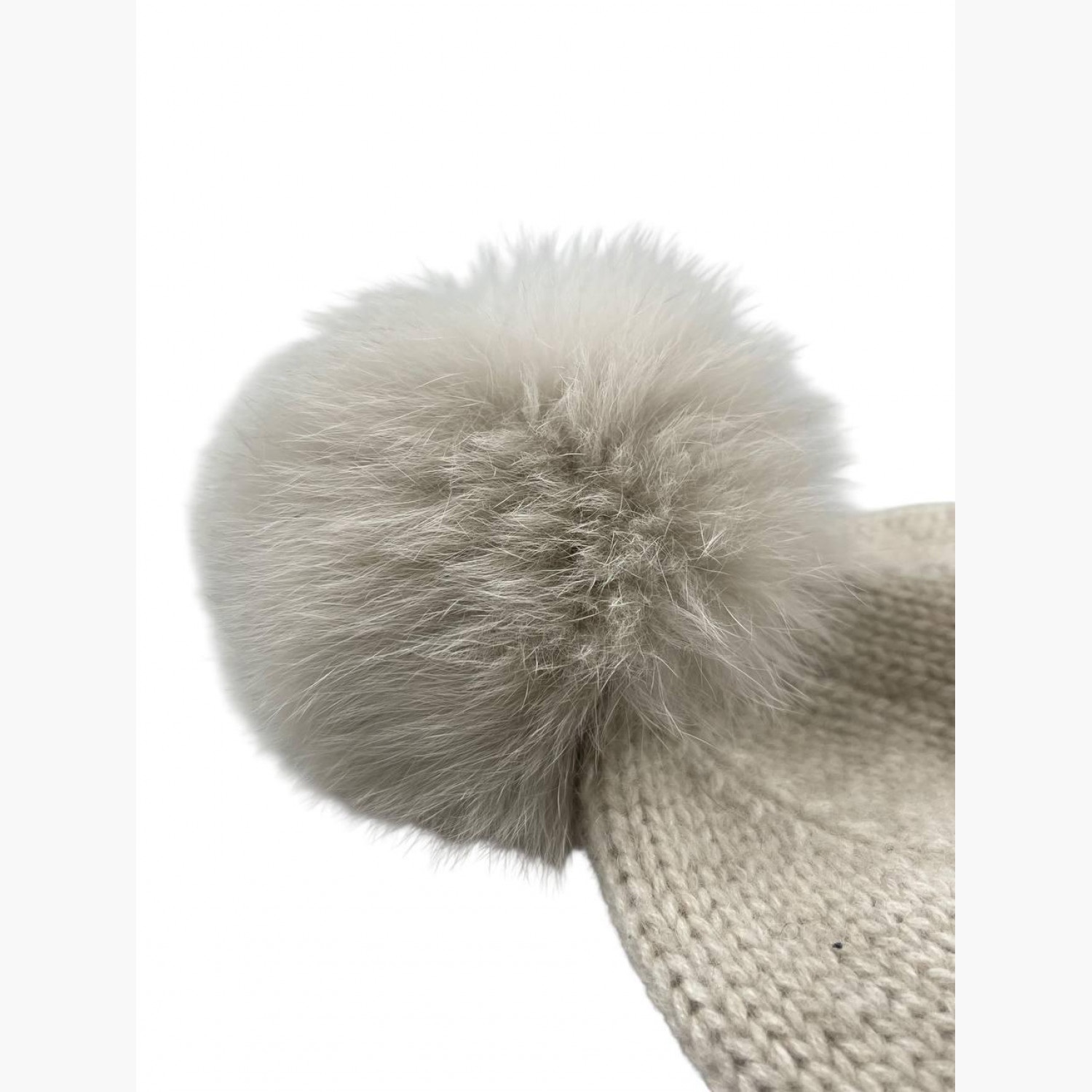 Кремова шапка з хутряним помпоном. Склад: 100% кашемір. У відмінному стані.
