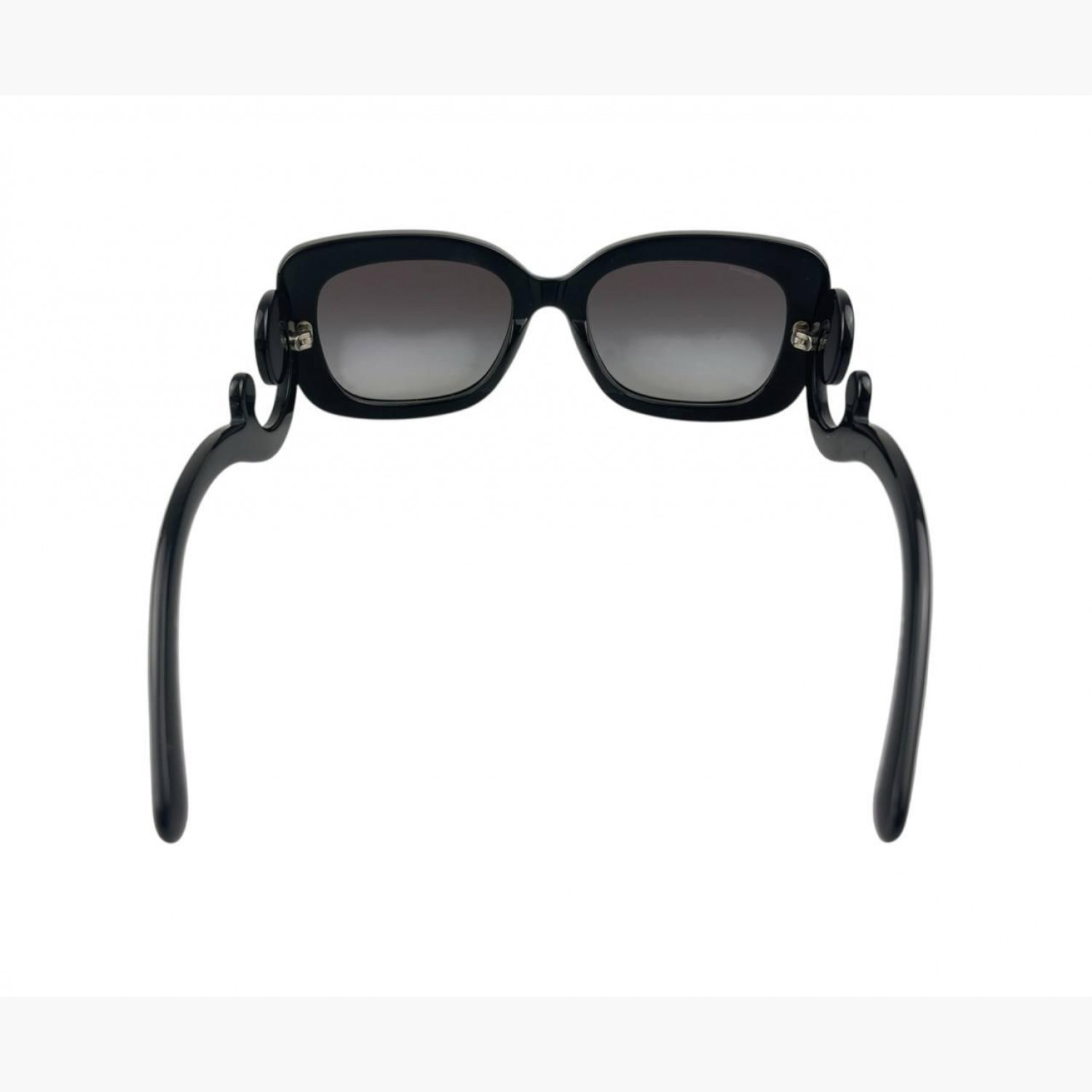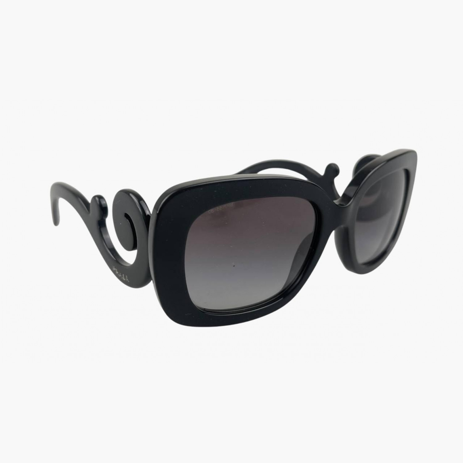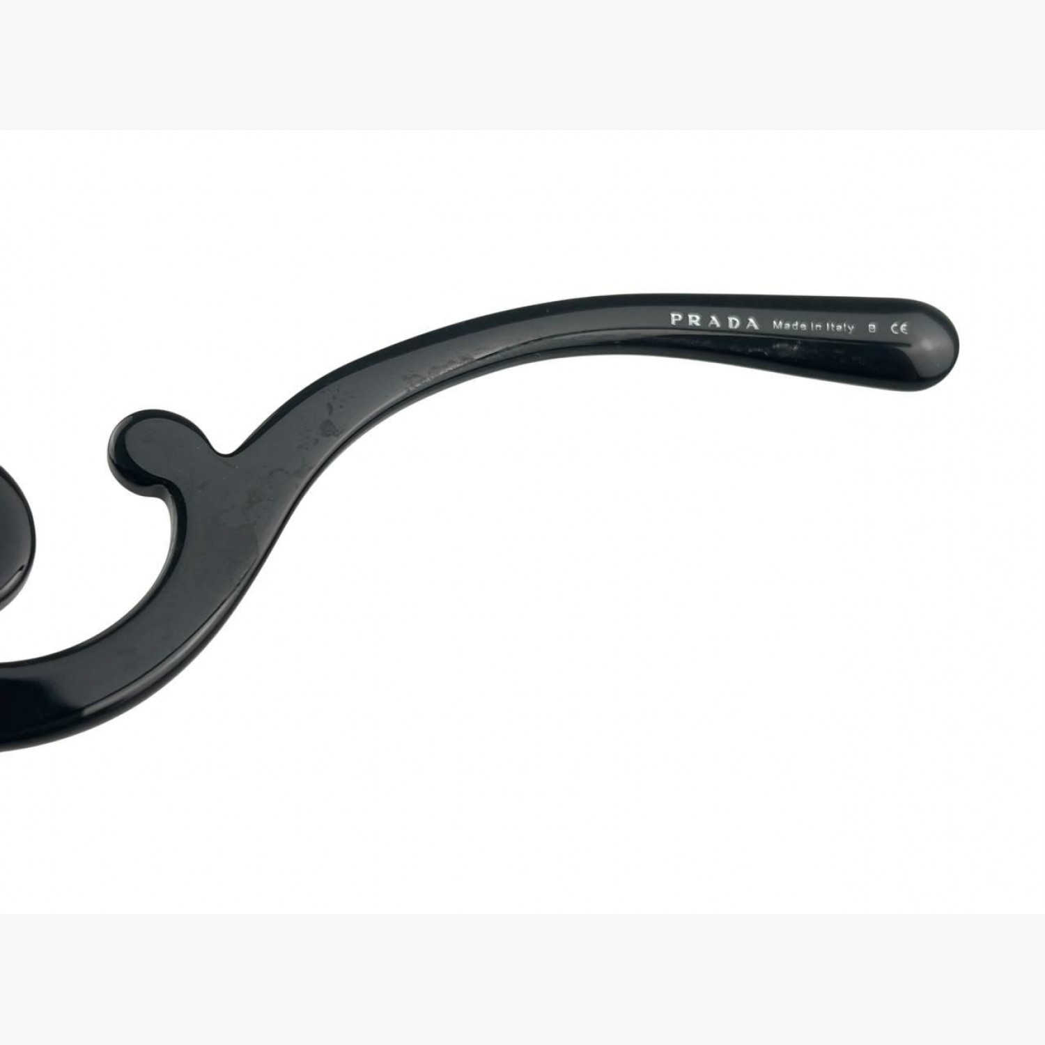 Black plastic sunglasses with twisted frame. Comes with case. In good condition with scuffs.