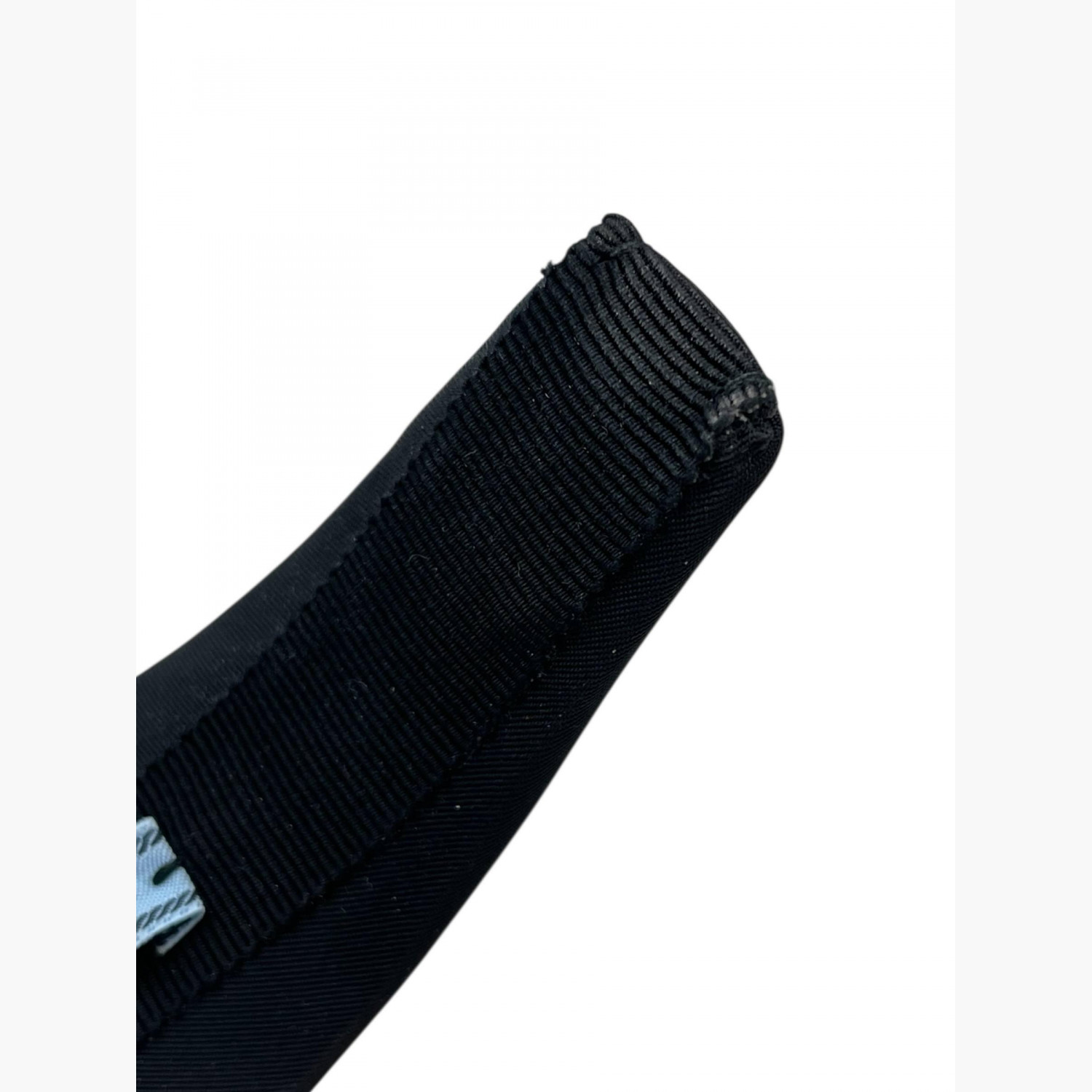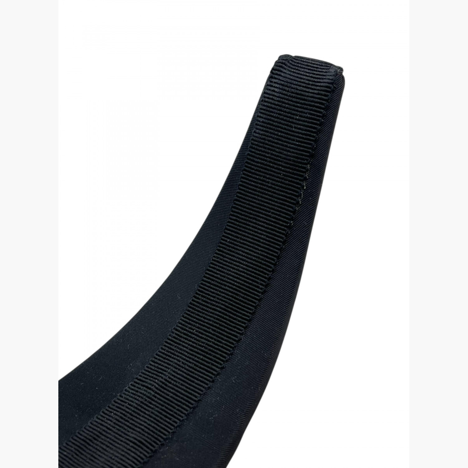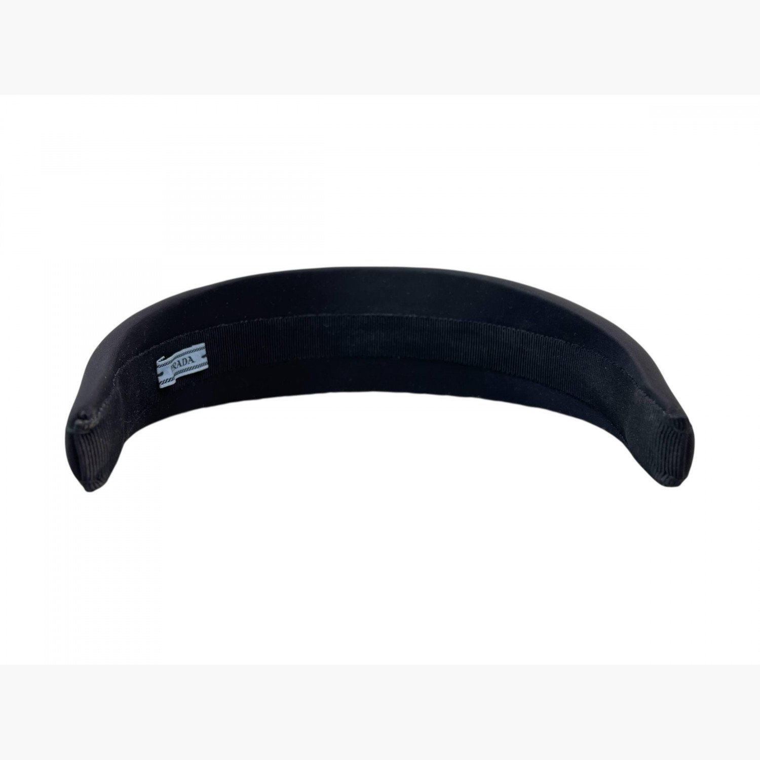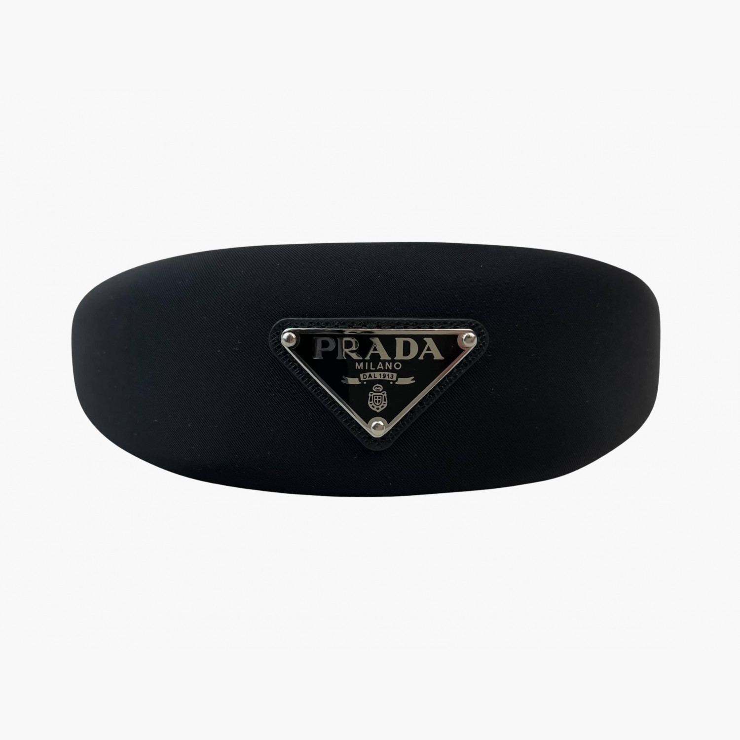 Чорний об’ємний обруч із металевим логотипом срібного кольору.