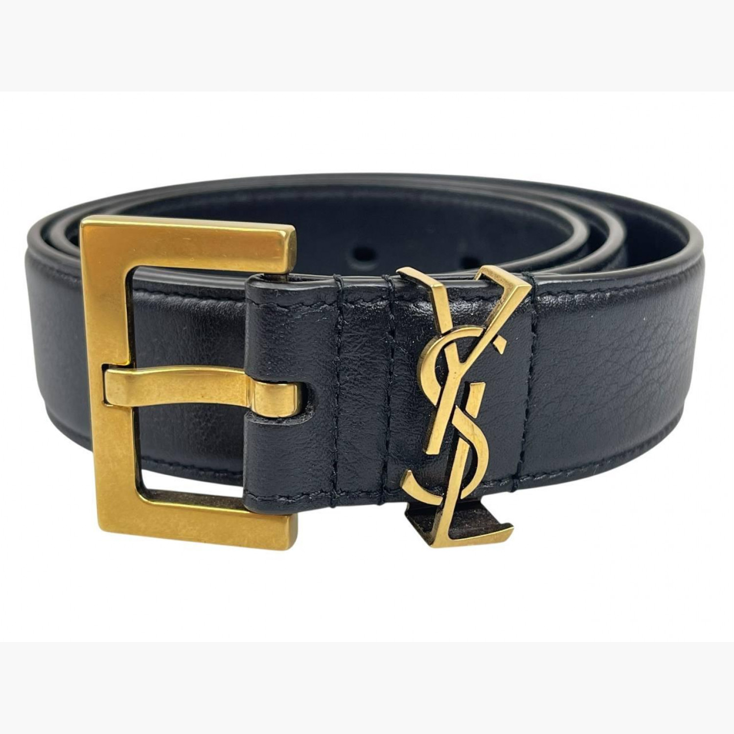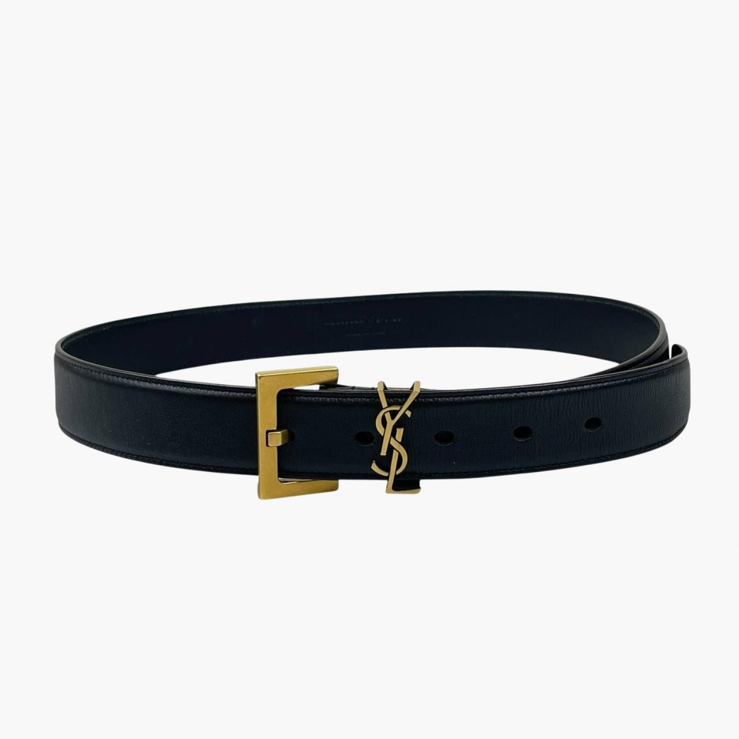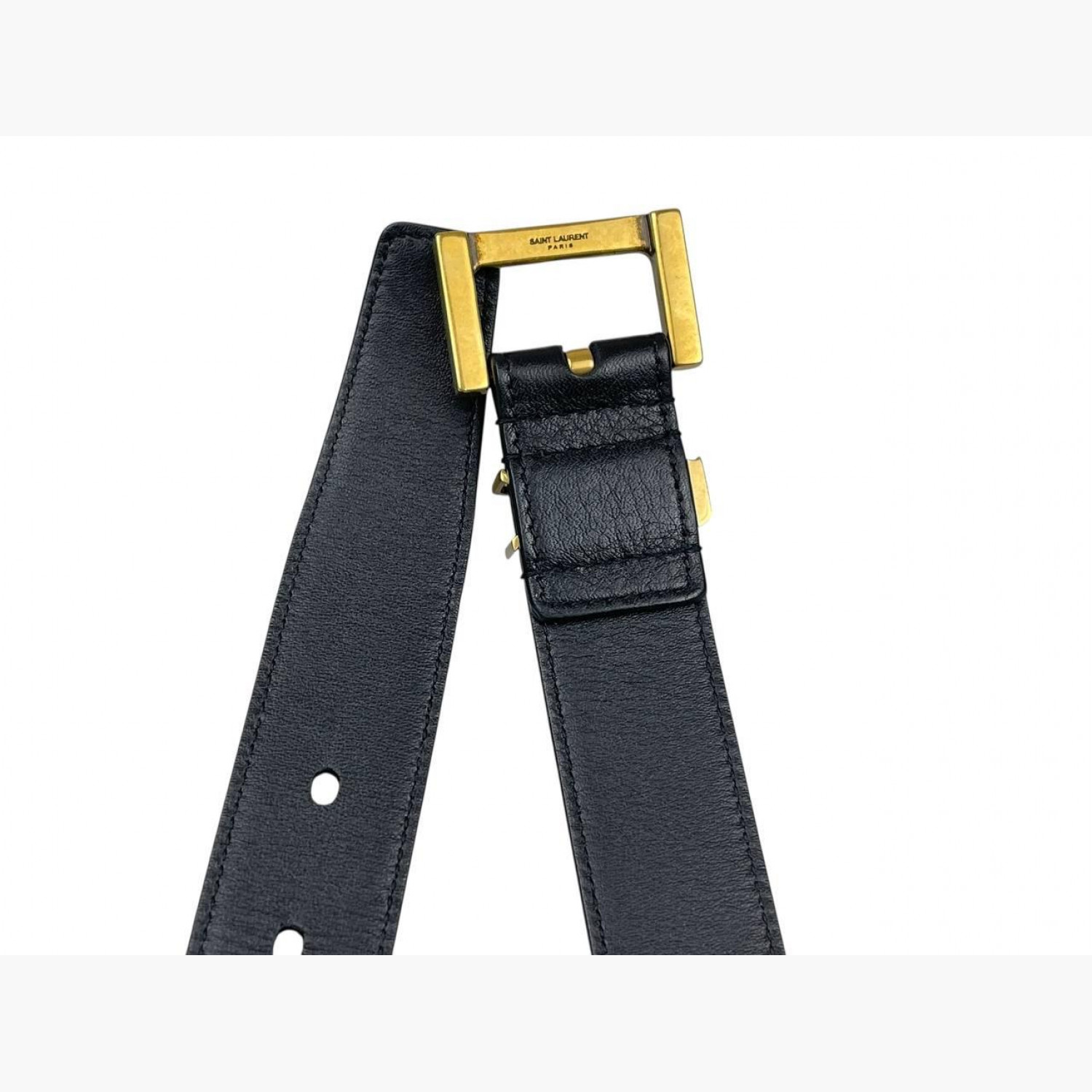 Чорний шкіряний ремінь із золотою пряжкою у вигляді логотипа. Відмінний стан, без значних слідів вжитку.