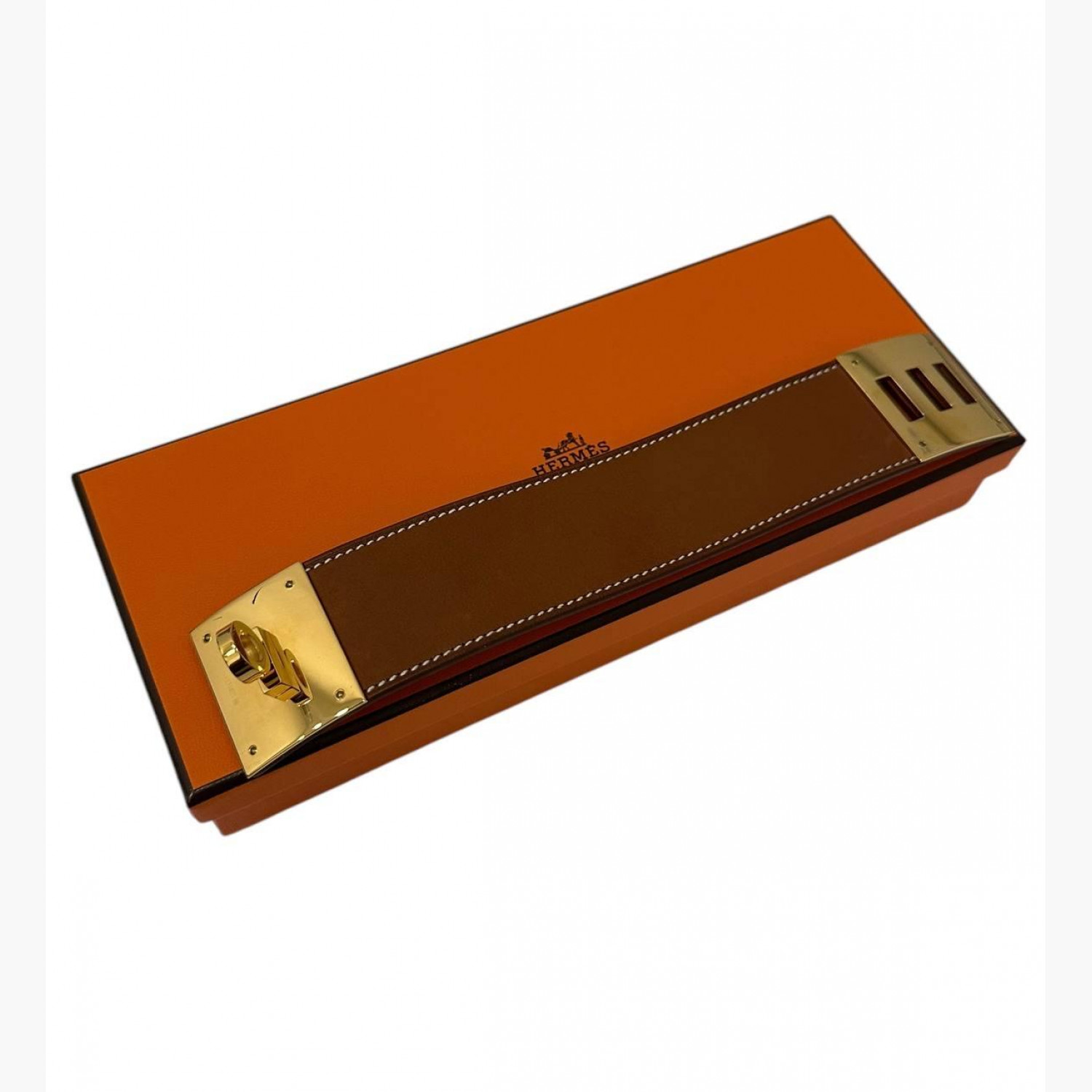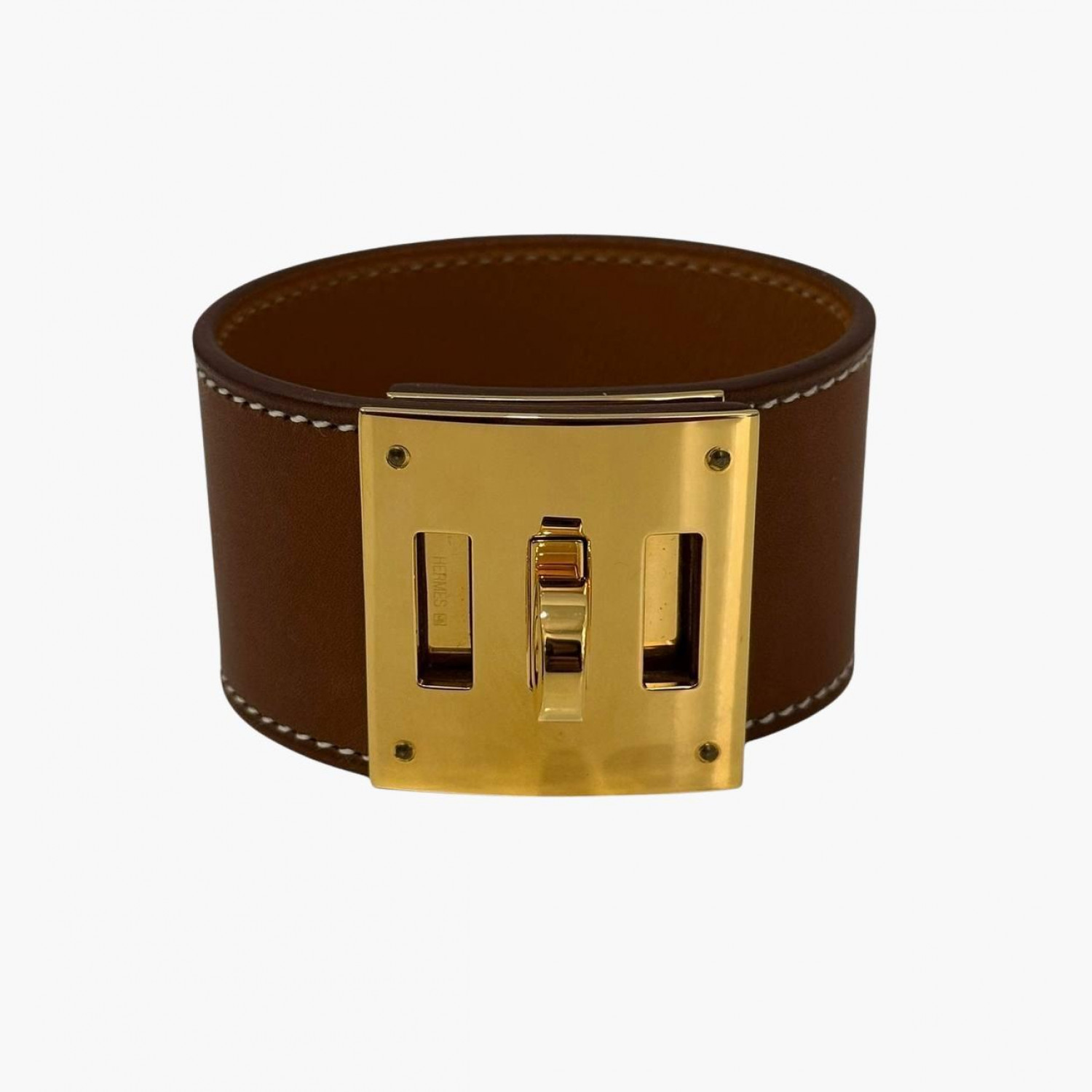 Коричневий шкіряний браслет із золотистою фурнітурою. В ідеальному стані, є невелика подряпина на замочку.