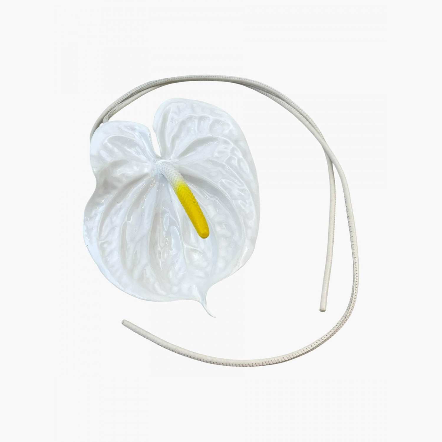 Підвіска на шию у вигляді білого пластикового антуріума на шнурку.У відмінному стані, є незначні сліди носіння.