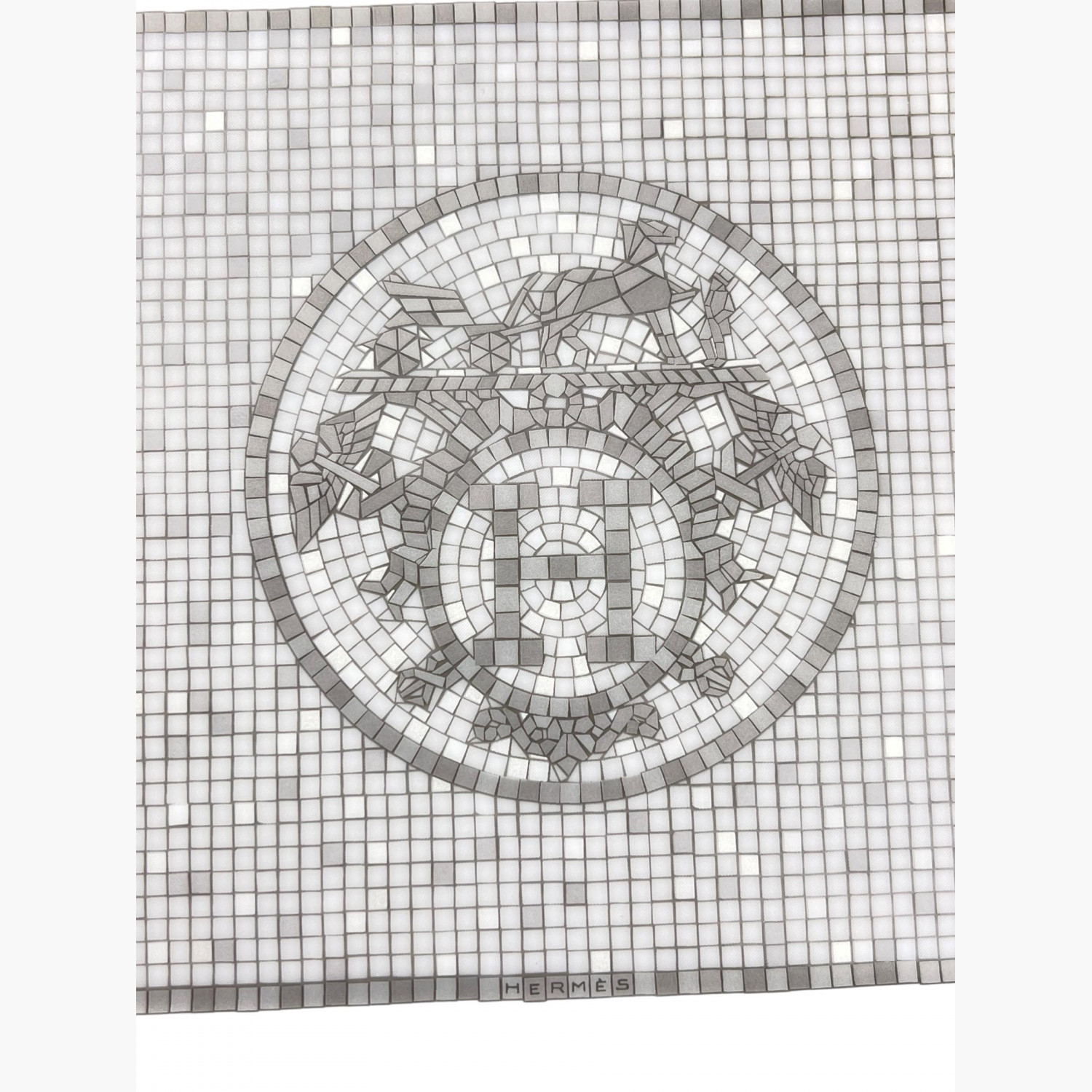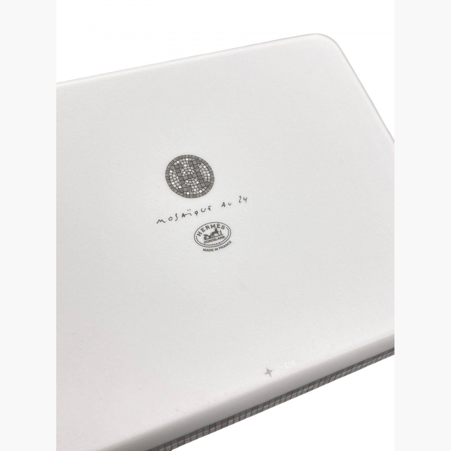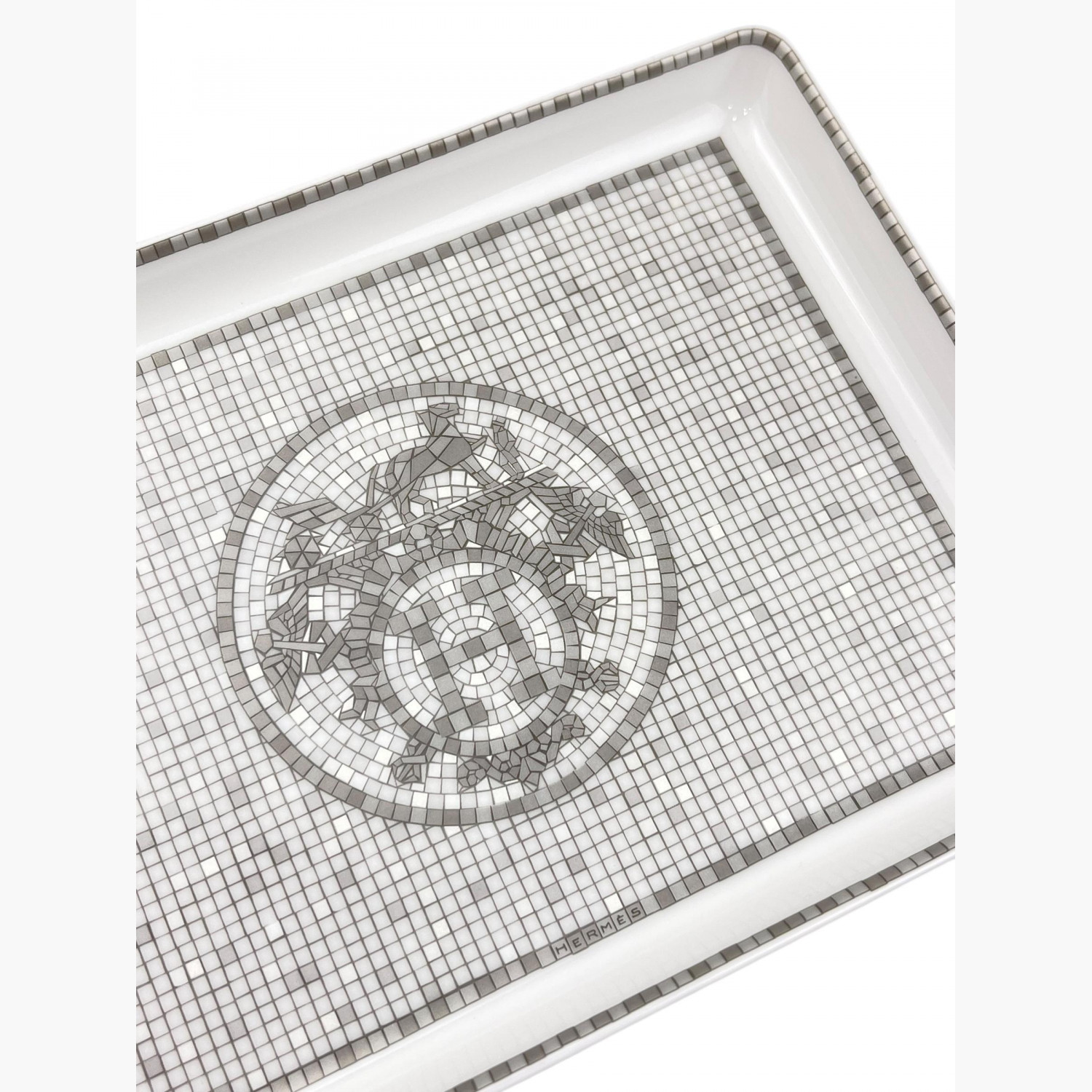 Сіра прямокутна тарілка виготовлена з ліможського фарфору та прикрашена платиновими деталями. У центрі тарілки зображено емблему бренду у вигляді мозаїки. Абсолютно нова.