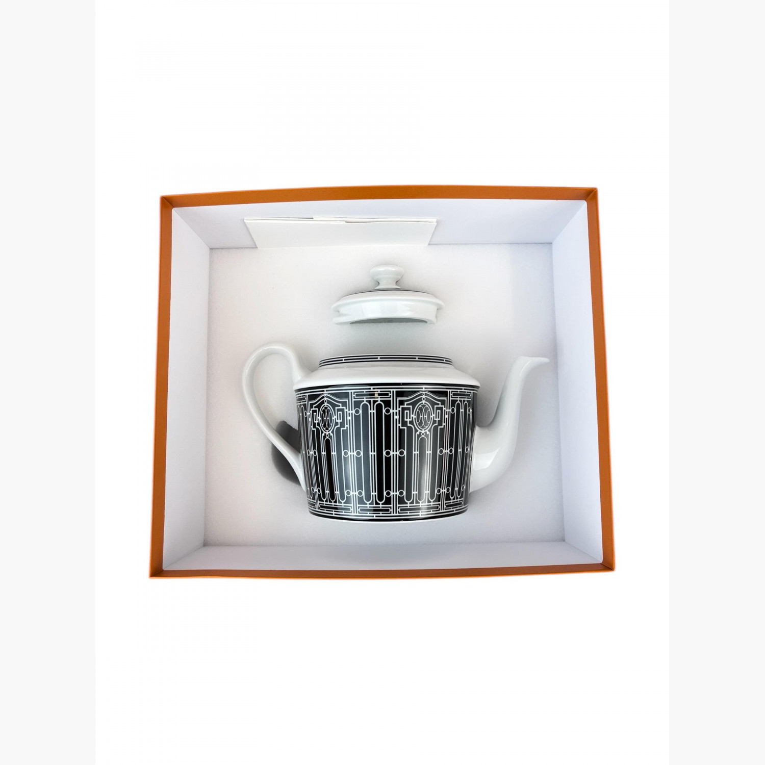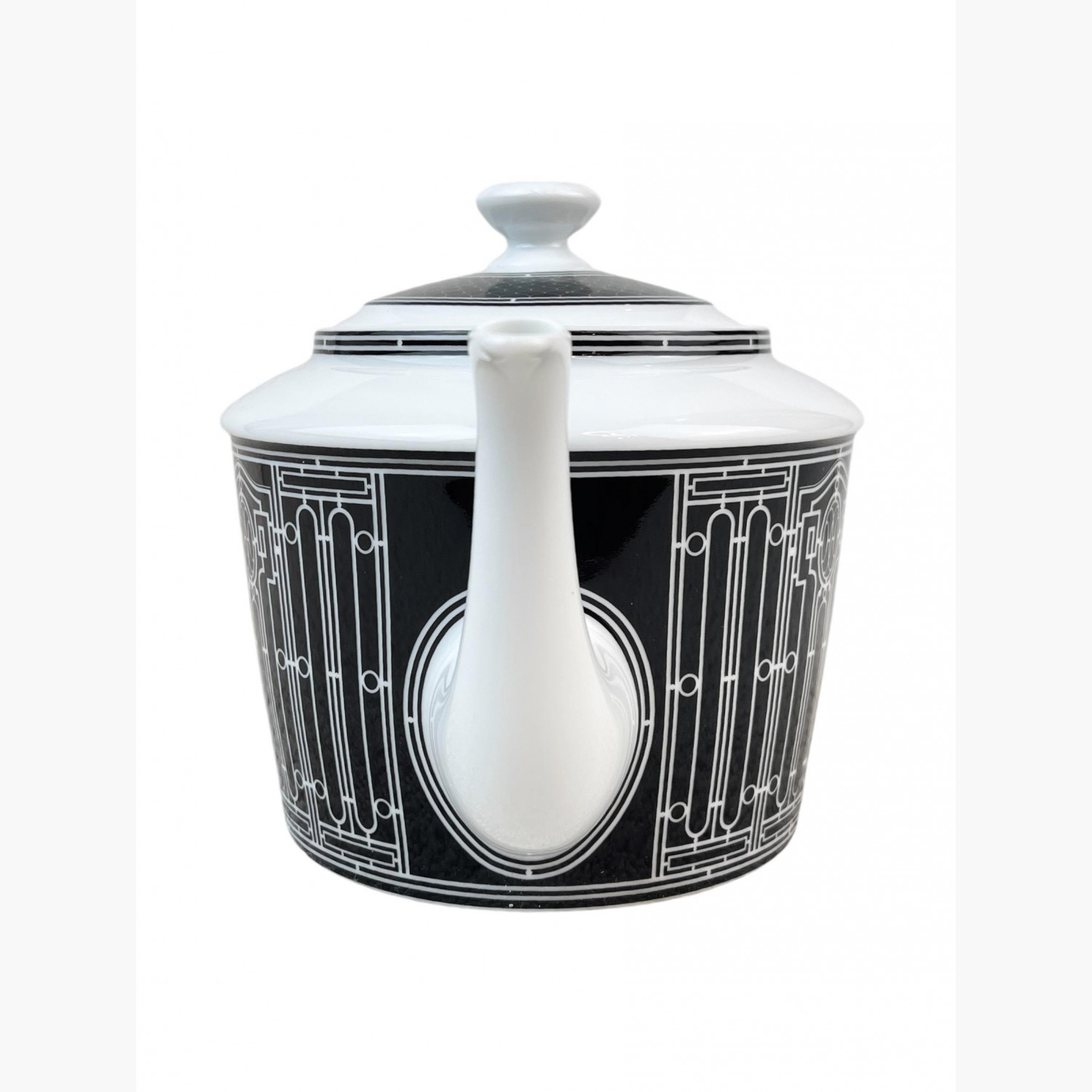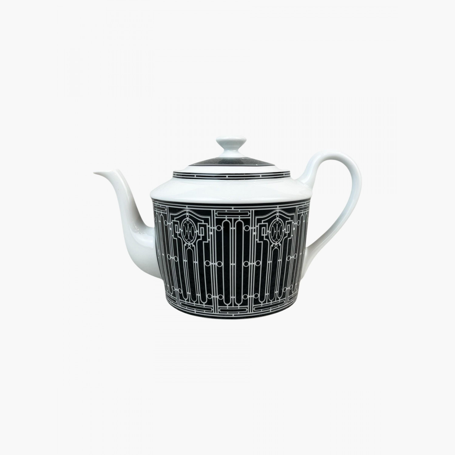 Білий порцеляновий чайник з чорним візерунком.У відмінному стані, без значних слідів використання.