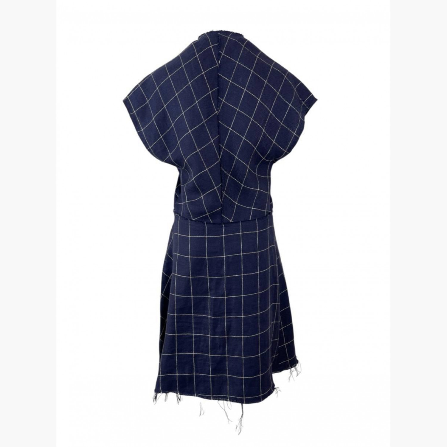 Синя лляна сукня в білу клітинку. У дуже гарному стані, є незначні сліди вжитку та затяжки.