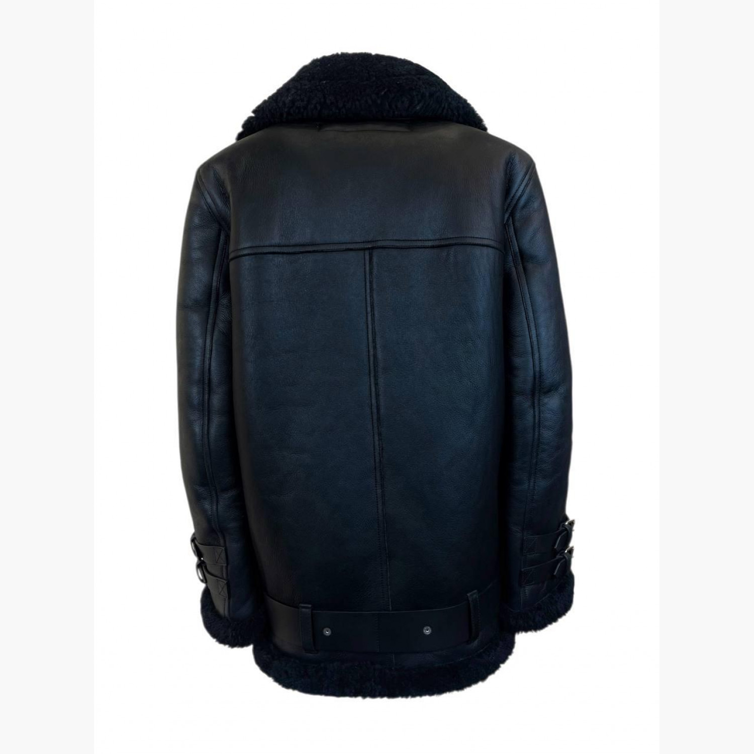 Чорна шкіряна дублянка на овчині. Склад: основний матеріал — 100% шкіра; підкладка — 100% овчина; підкладка кишень — 100% бавовна. У відмінному стані, без значних слідів вжитку.