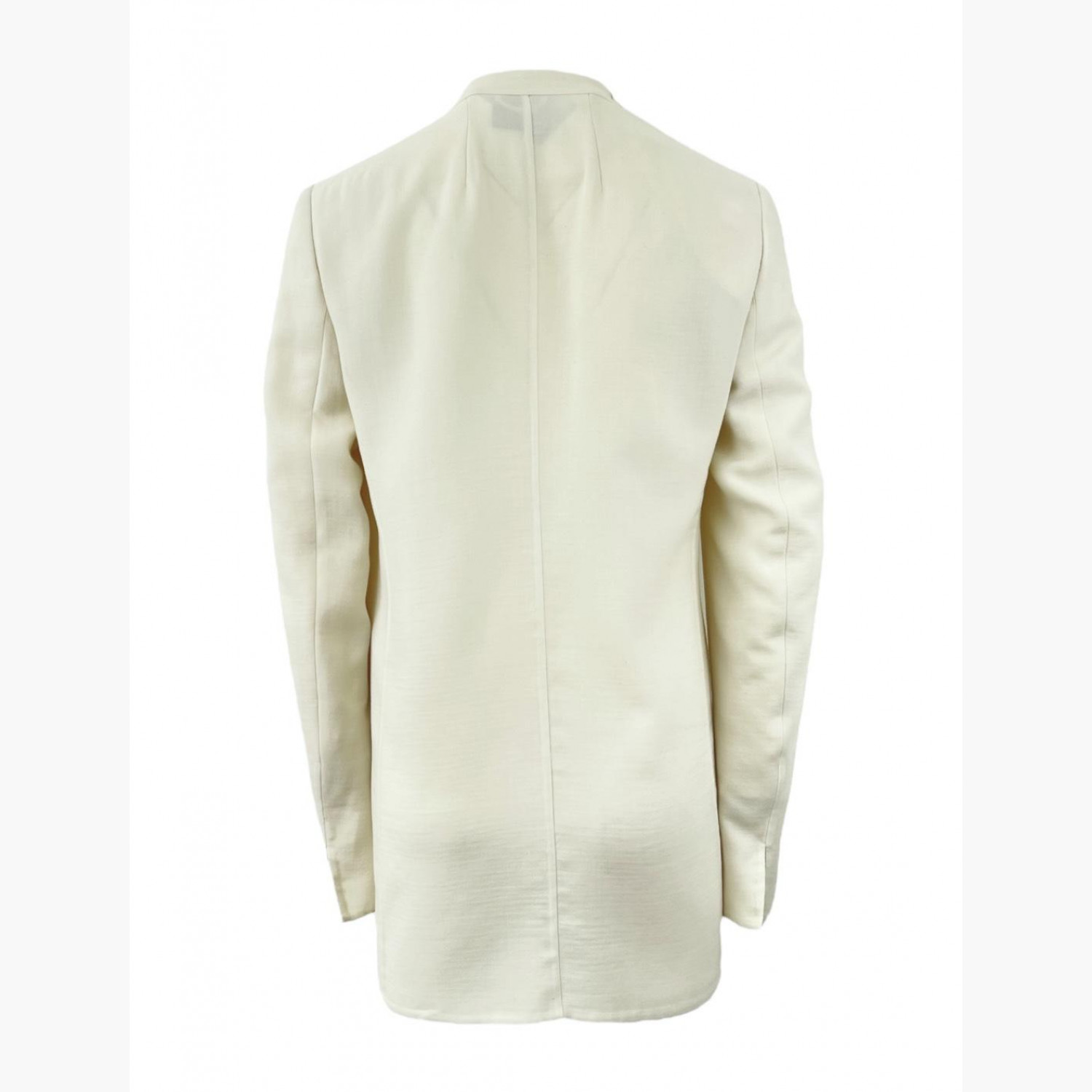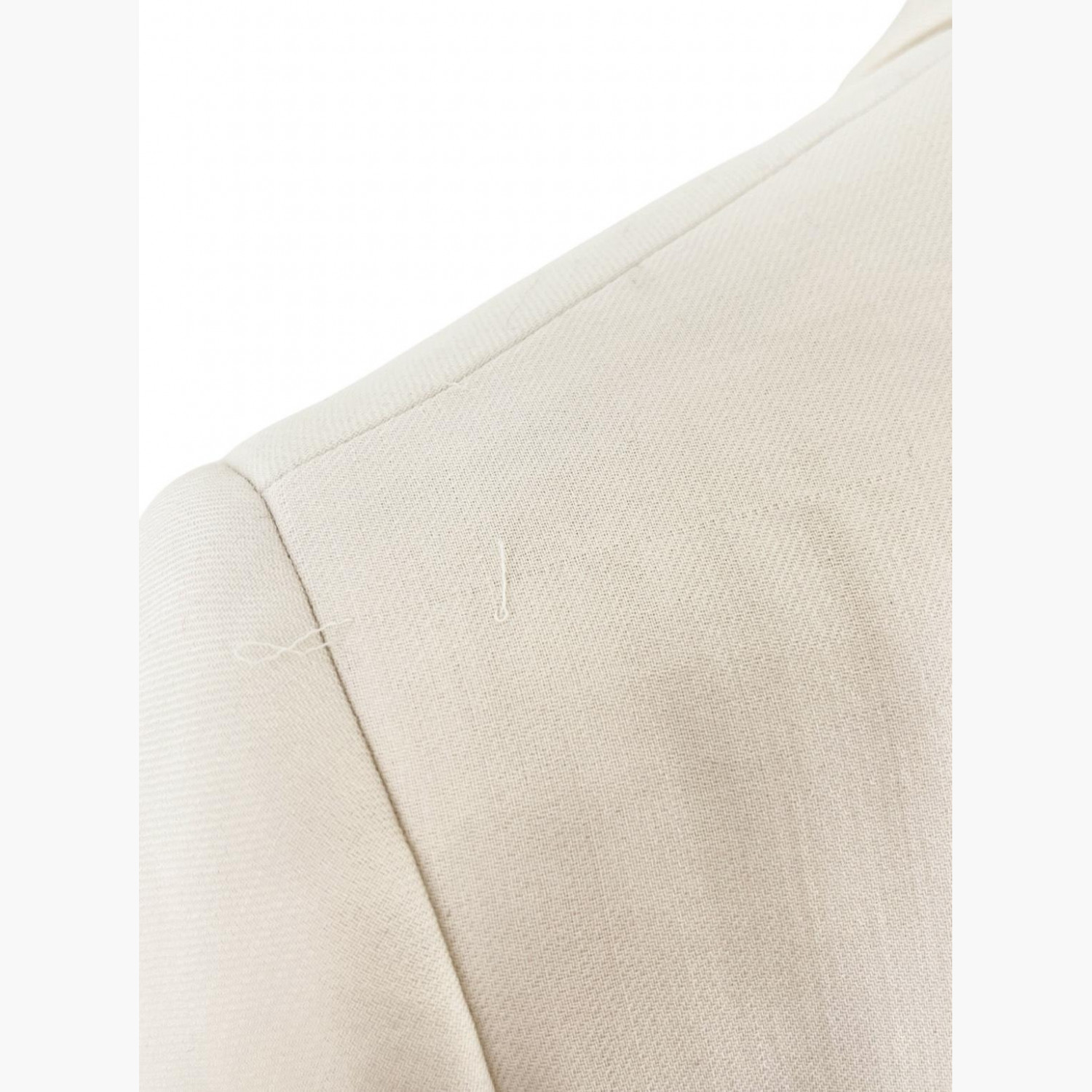 Молочний блейзер. Склад: основний матеріал — 80% шерсть, 20% поліестер; підкладка — 100% віскоза. У відмінному стані, є незначні затяжки.