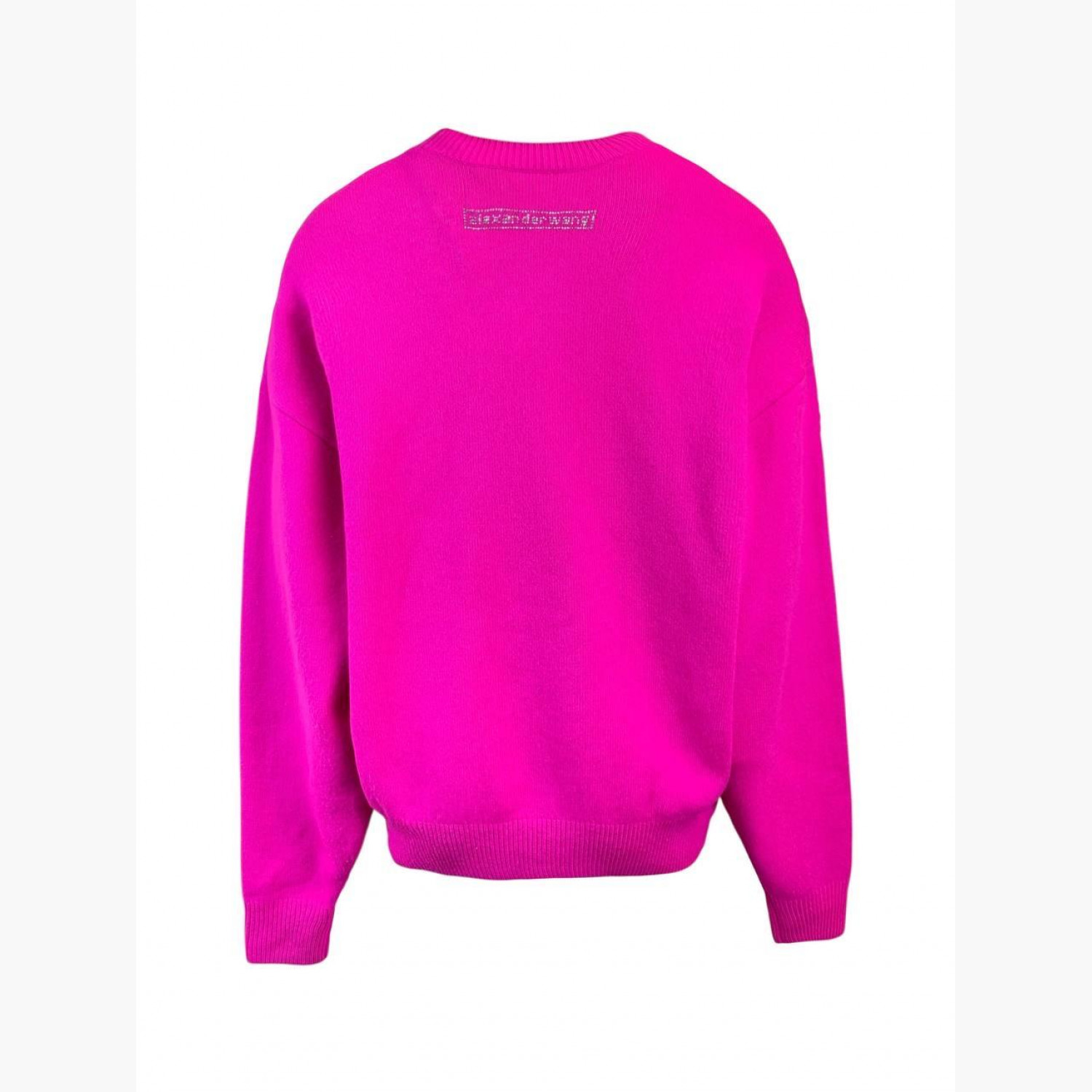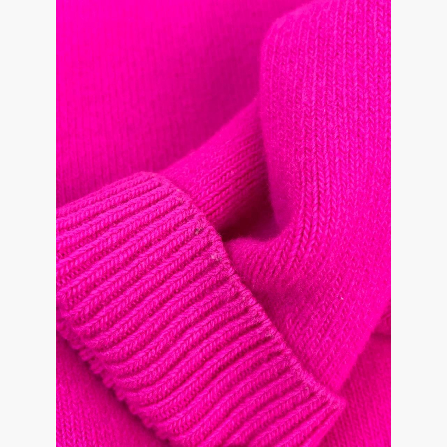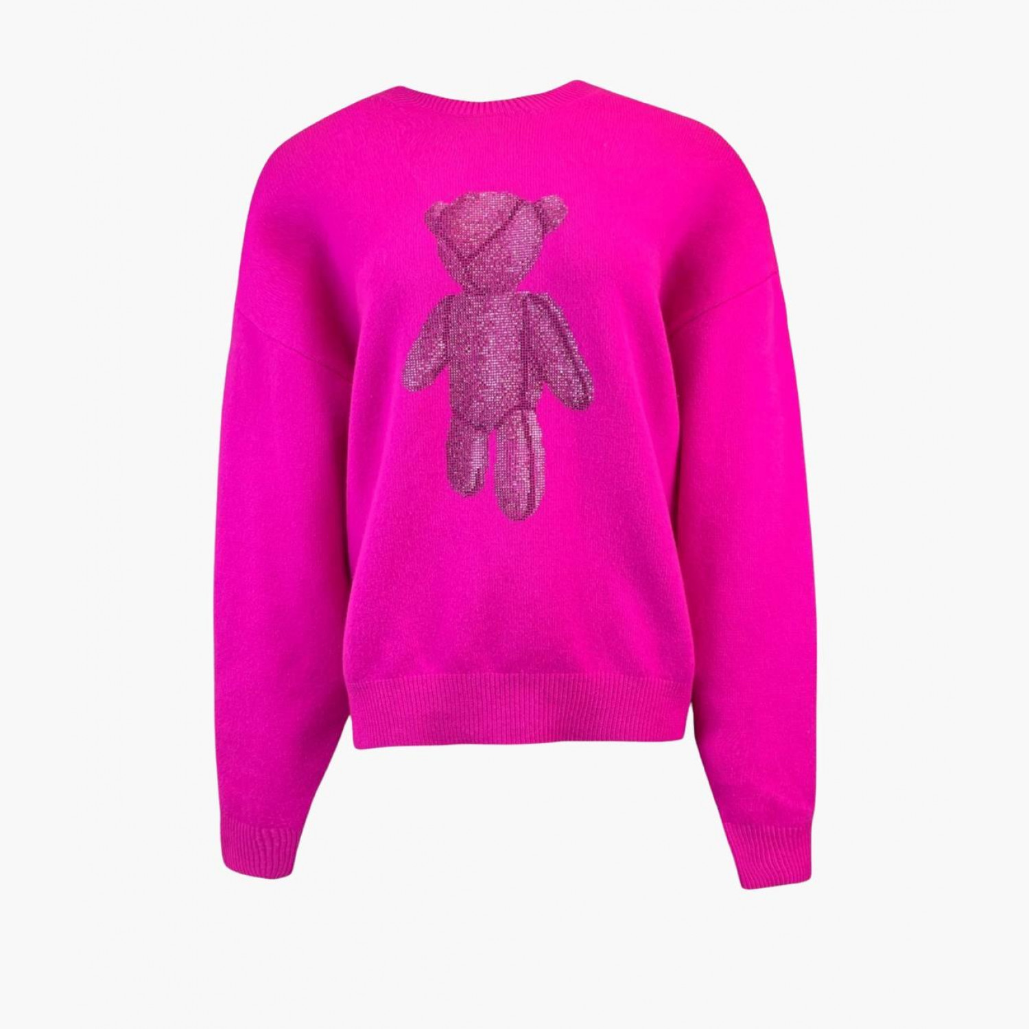 Вовняний светр кольору фуксія з декоративним ведмедиком із каміння. Склад: 94% вовна, 5% поліамід, 1% еластан. У відмінному стані: незначні ковтунці та невеликі забруднення на манжетах.