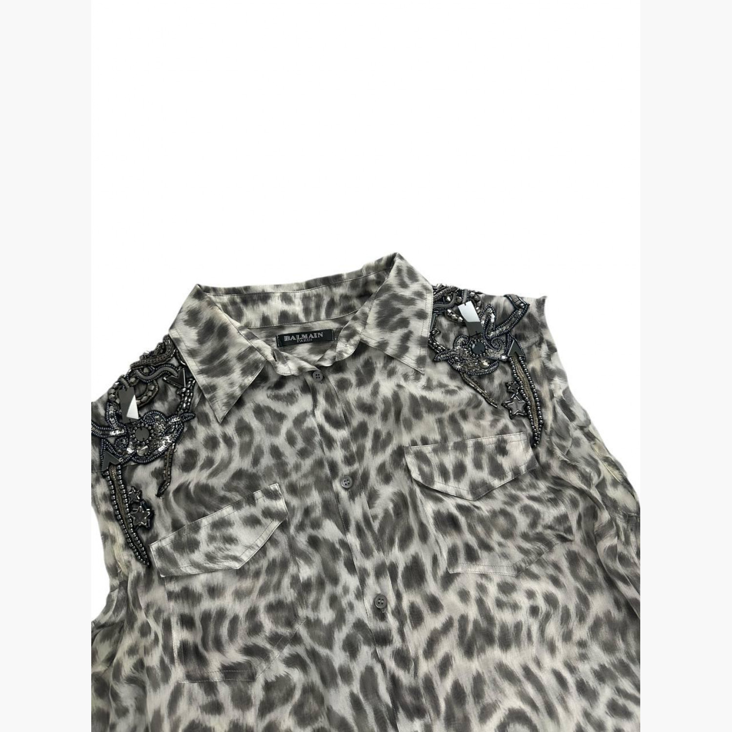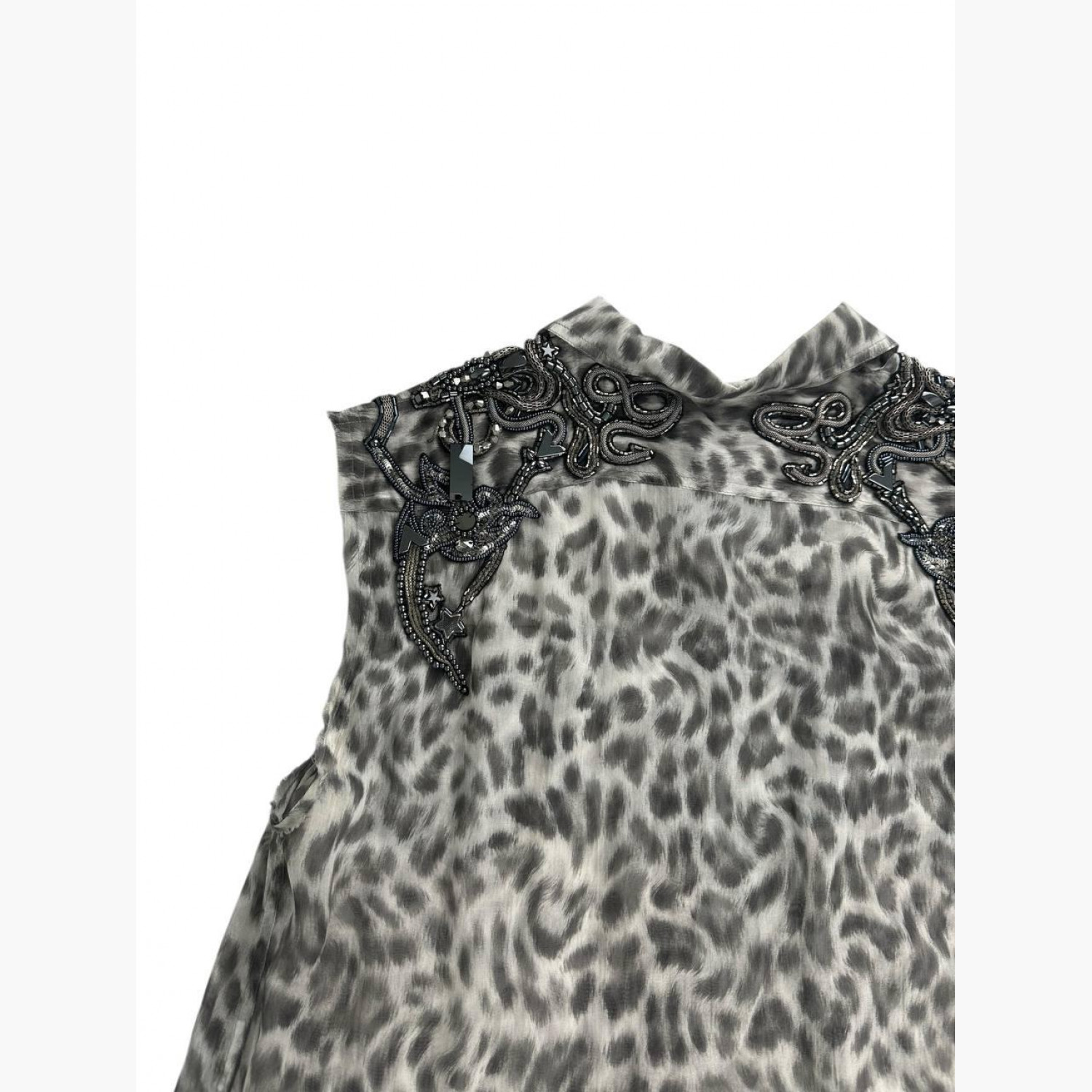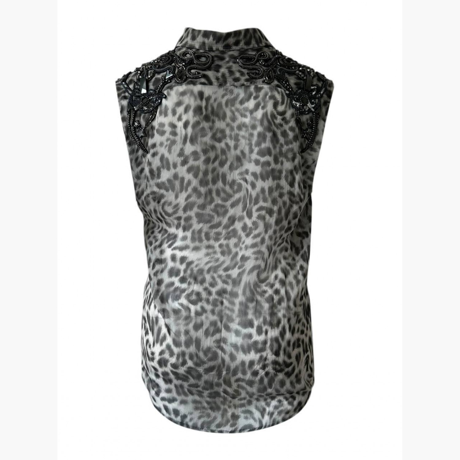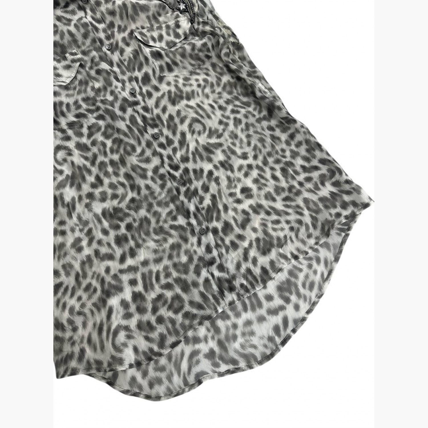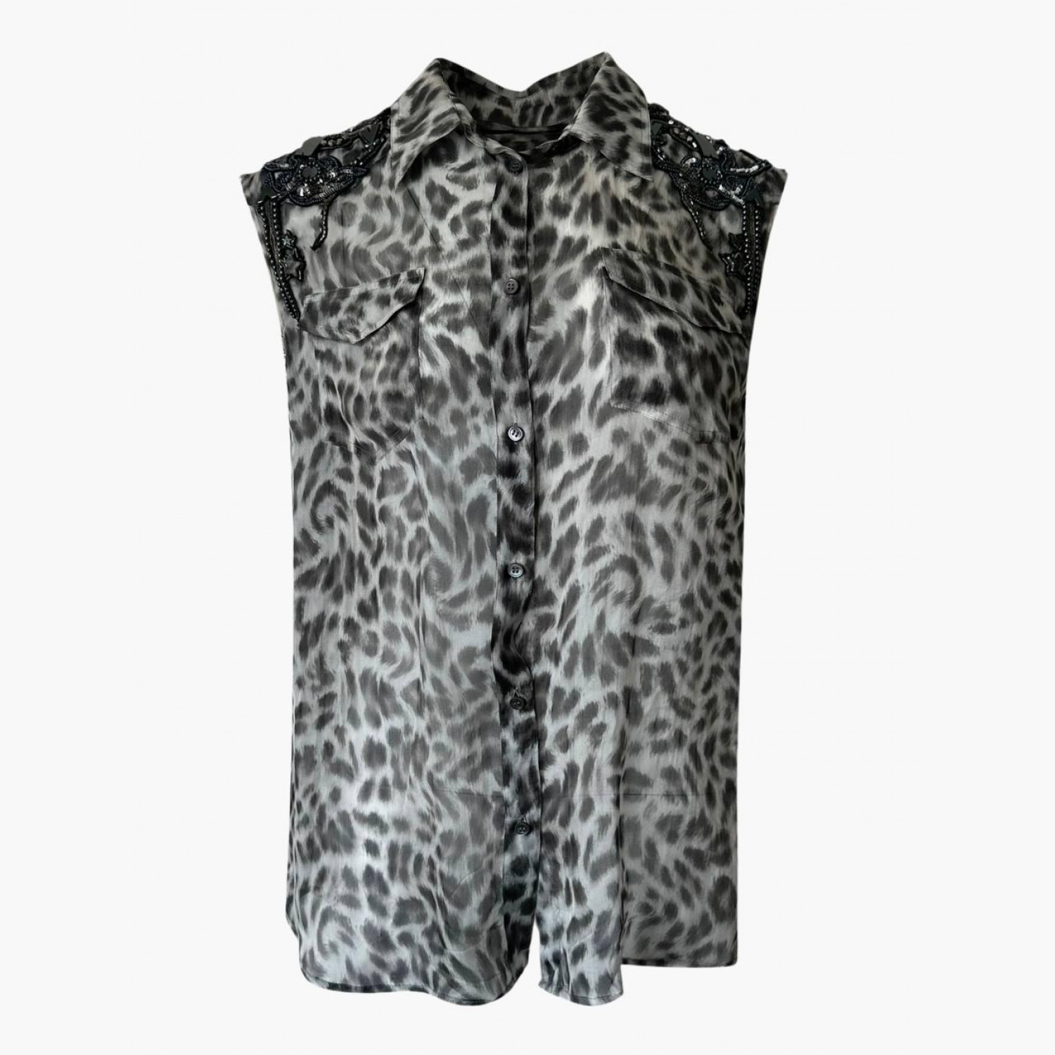 Леопардова блузка, оздоблена вишивкою з бісеру. У хорошому стані, є сліди вжитку. Бірку зі складом зрізано.