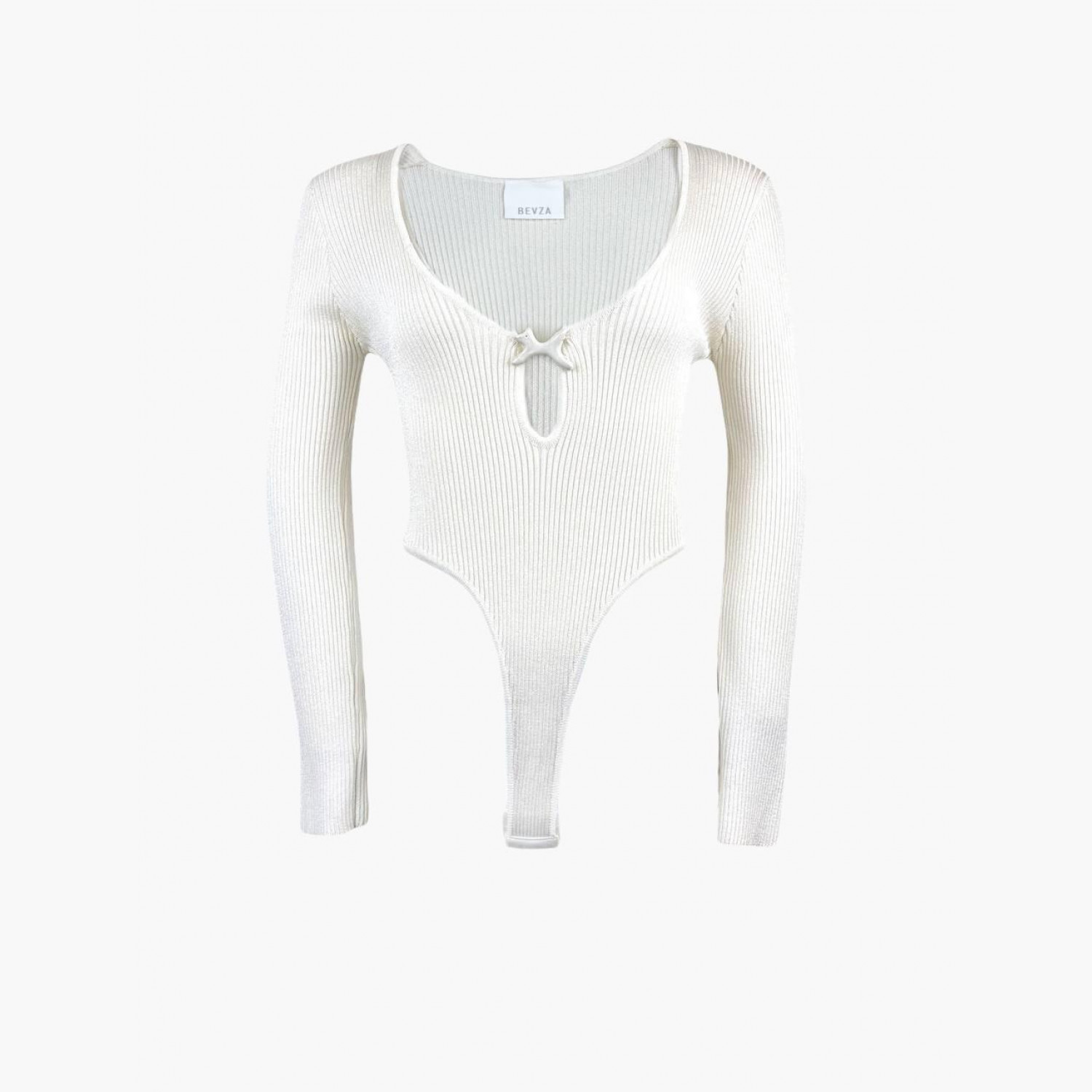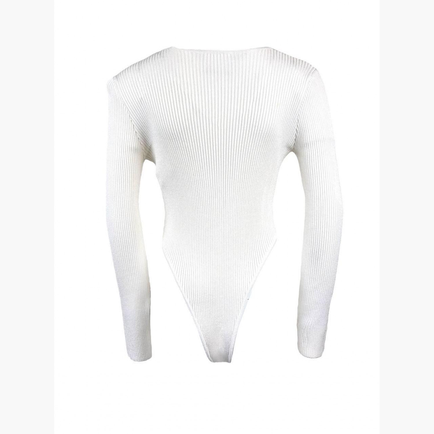 Трикотажний боді в рубчик молочного кольору. У відмінному стані, є незначні сліди вжитку.