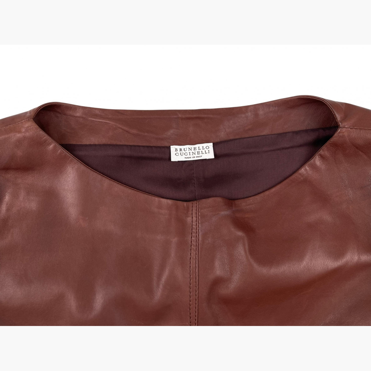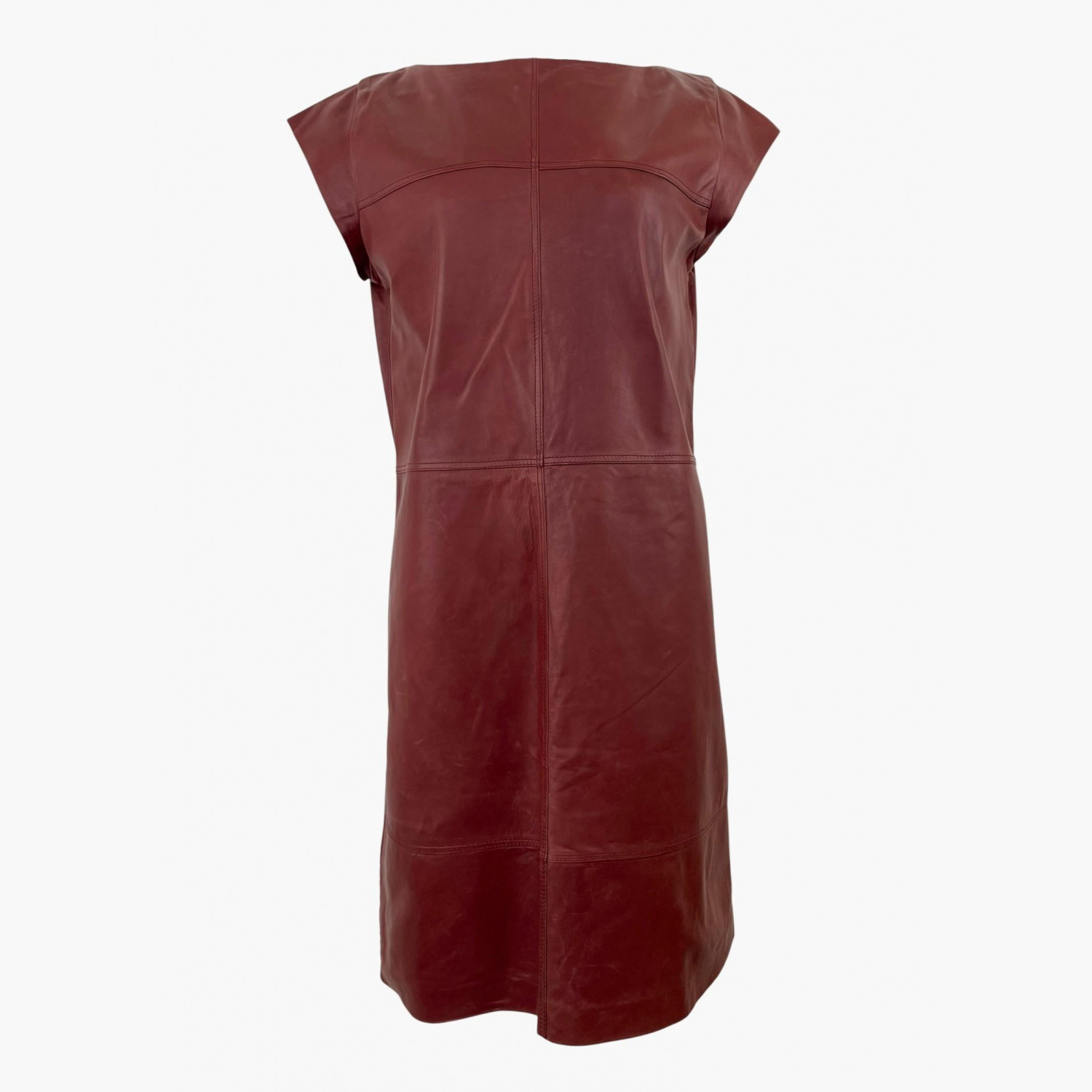 Бордовa шкіряна сукня. Склад: основний матеріал — 100% натуральна шкіра. У гарному стані, є сліди вжитку та затяжки.