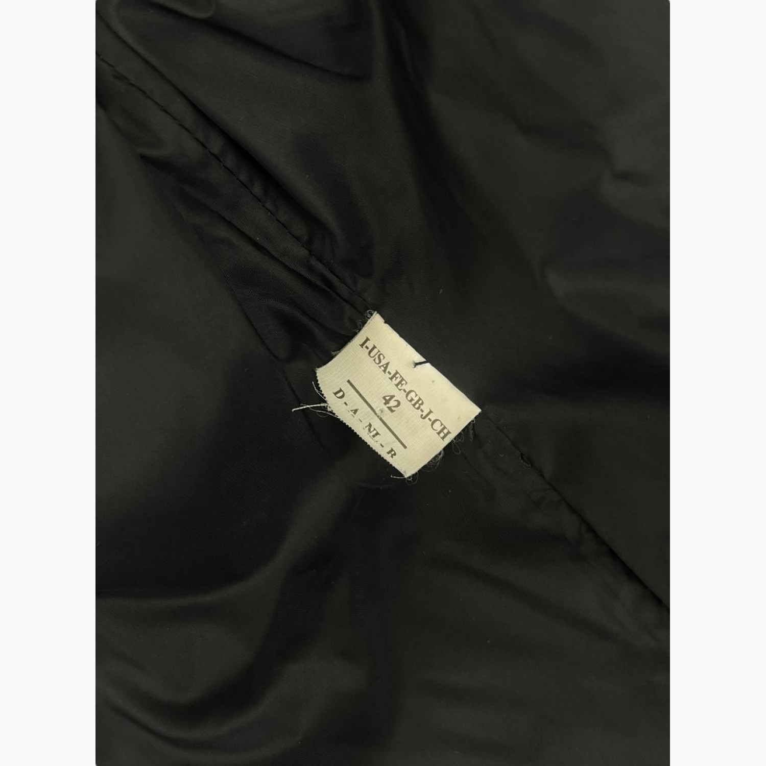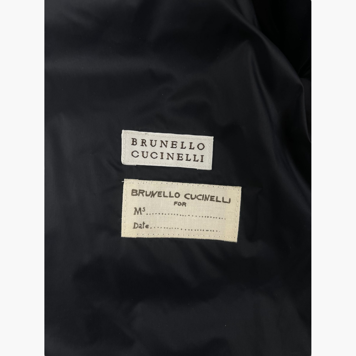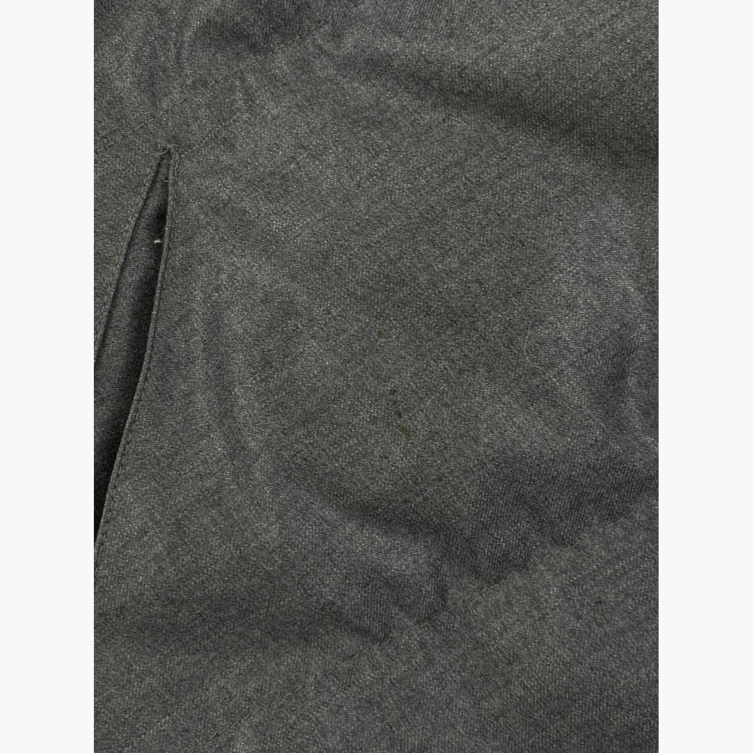 Сірий кашеміровий пуховик із трикотажними рукавами в рубчик. Склад: основний матеріал — 95% вовна, 5% кашемір; підкладка — 100% нейлон; наповнення — 100% гусячий пух. У відмінному стані, є сліди вжитку.