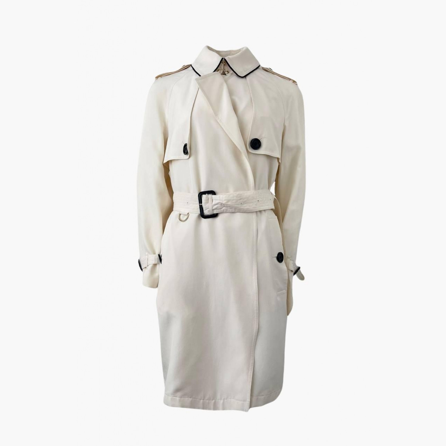 Шовковий тренч молочного кольору. У гарному стані, є сліди вжитку.