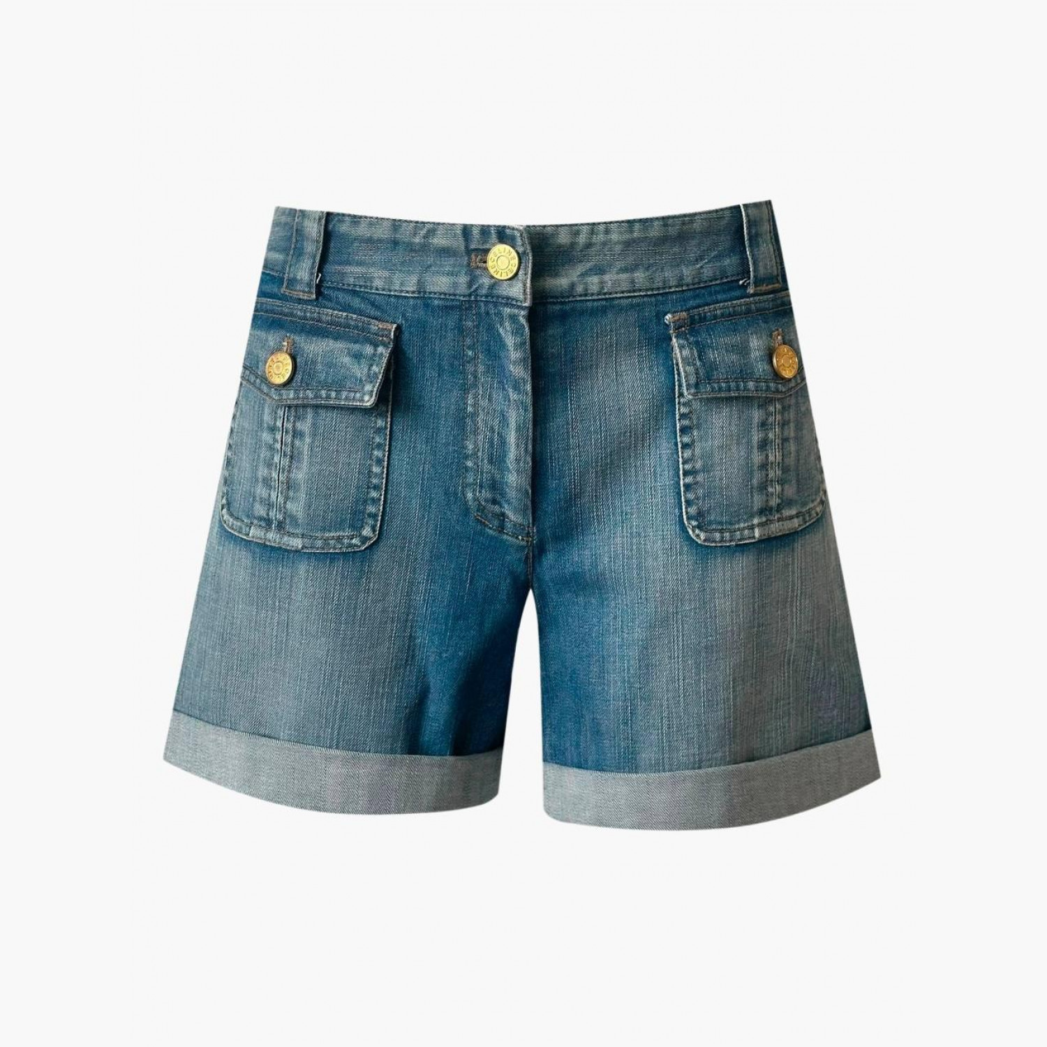 Блакитні джинсові шорти. У хорошому стані, є потертості. Склад: 98% бавовна, 2% еластан.