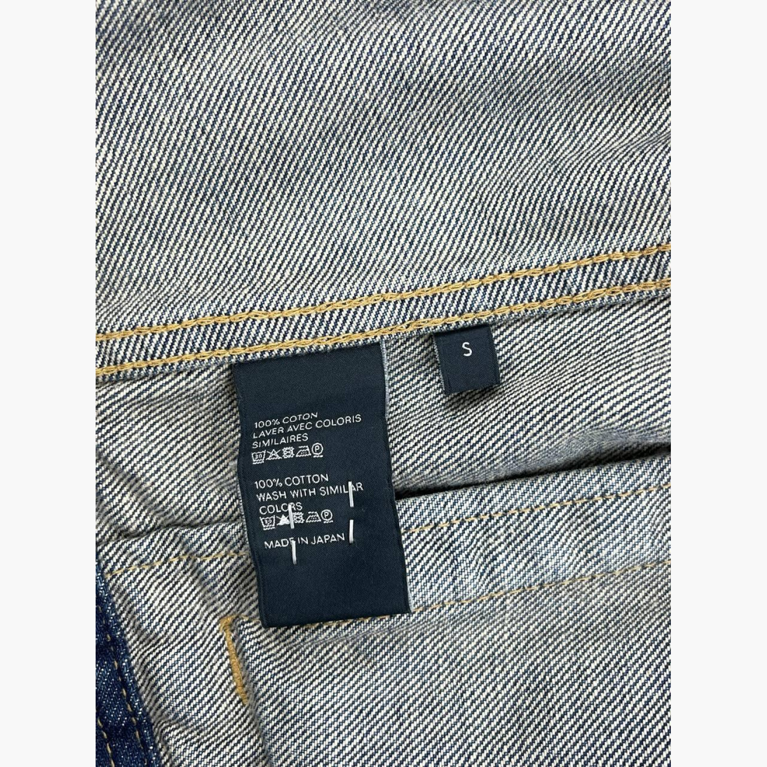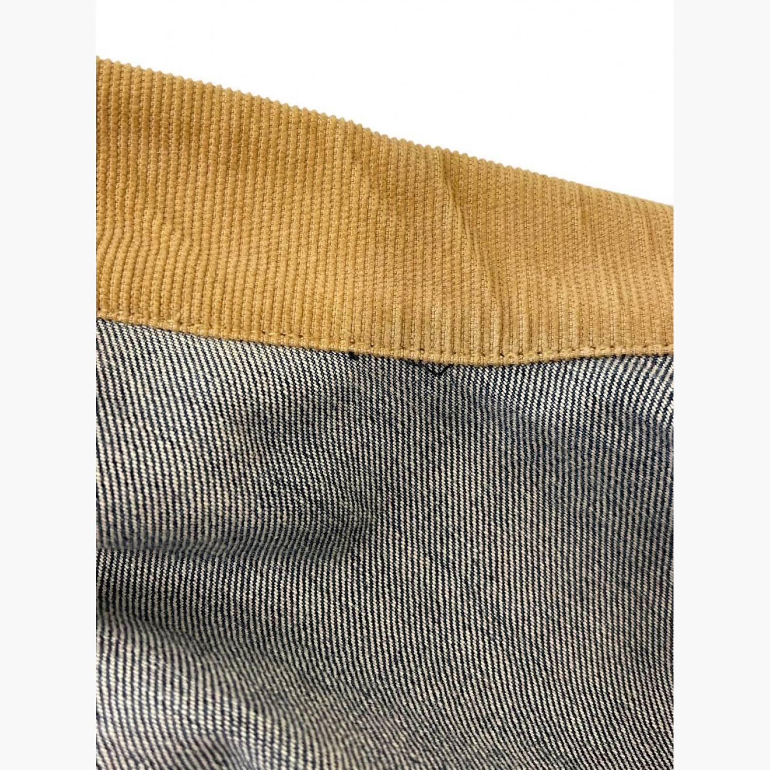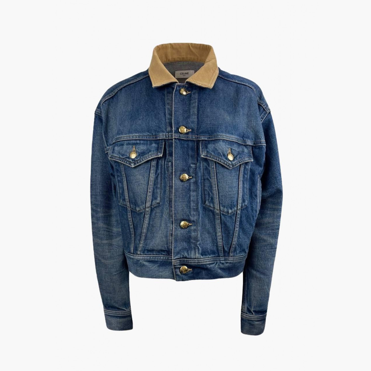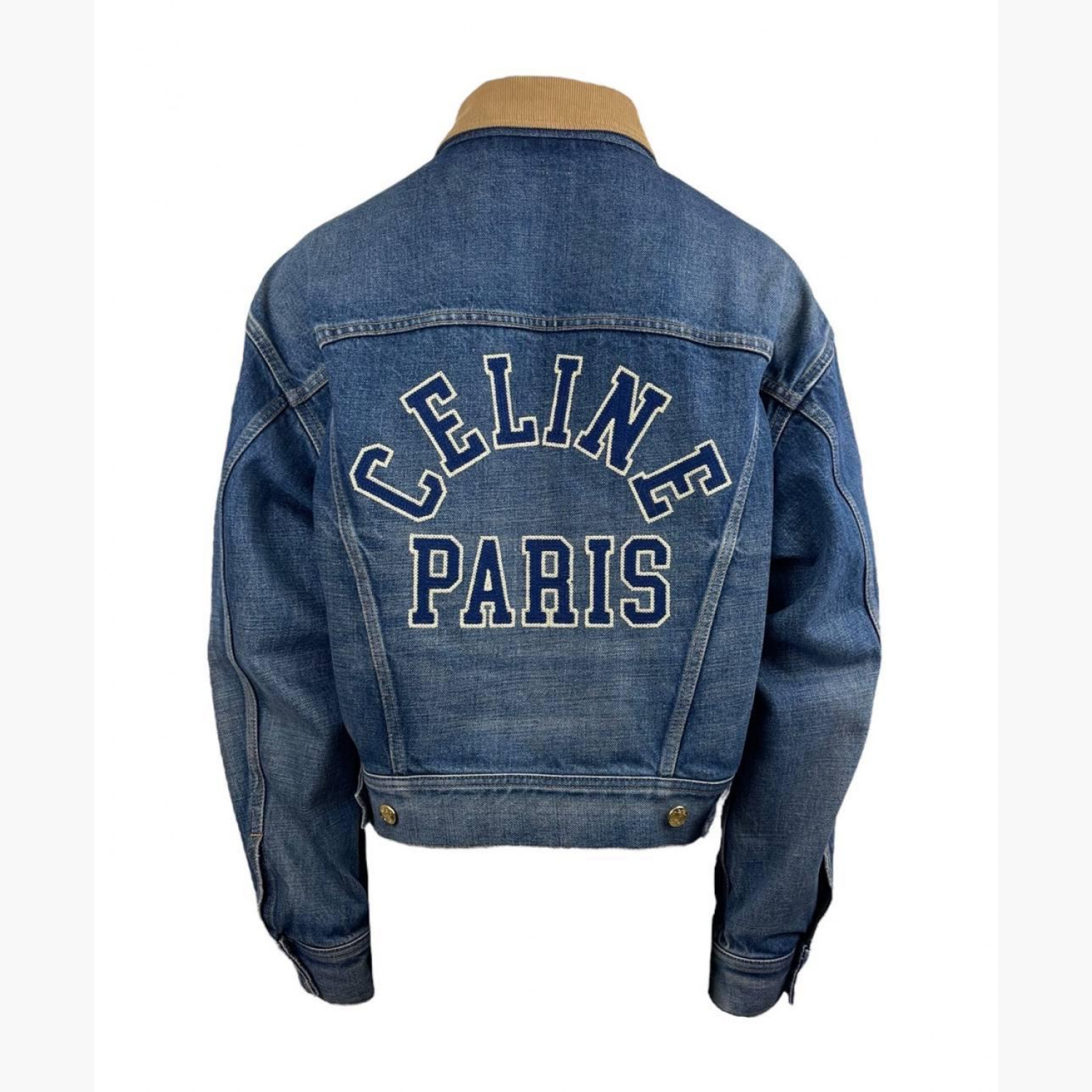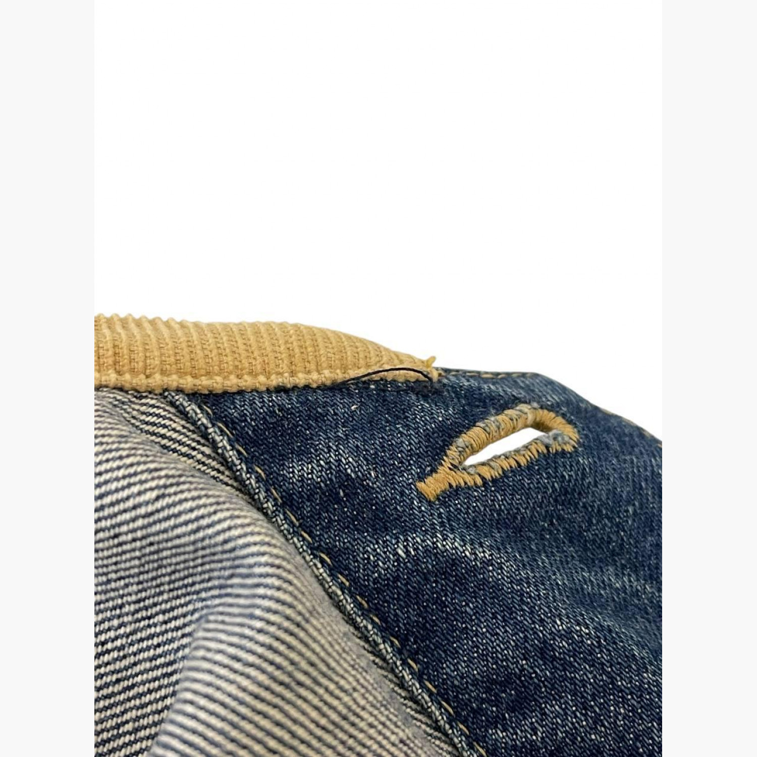 Синя джинсова куртка на ґудзиках з вельветовим гірчичним коміром та вишивкою на спині. У відмінному стані, є незначні сліди вжитку.