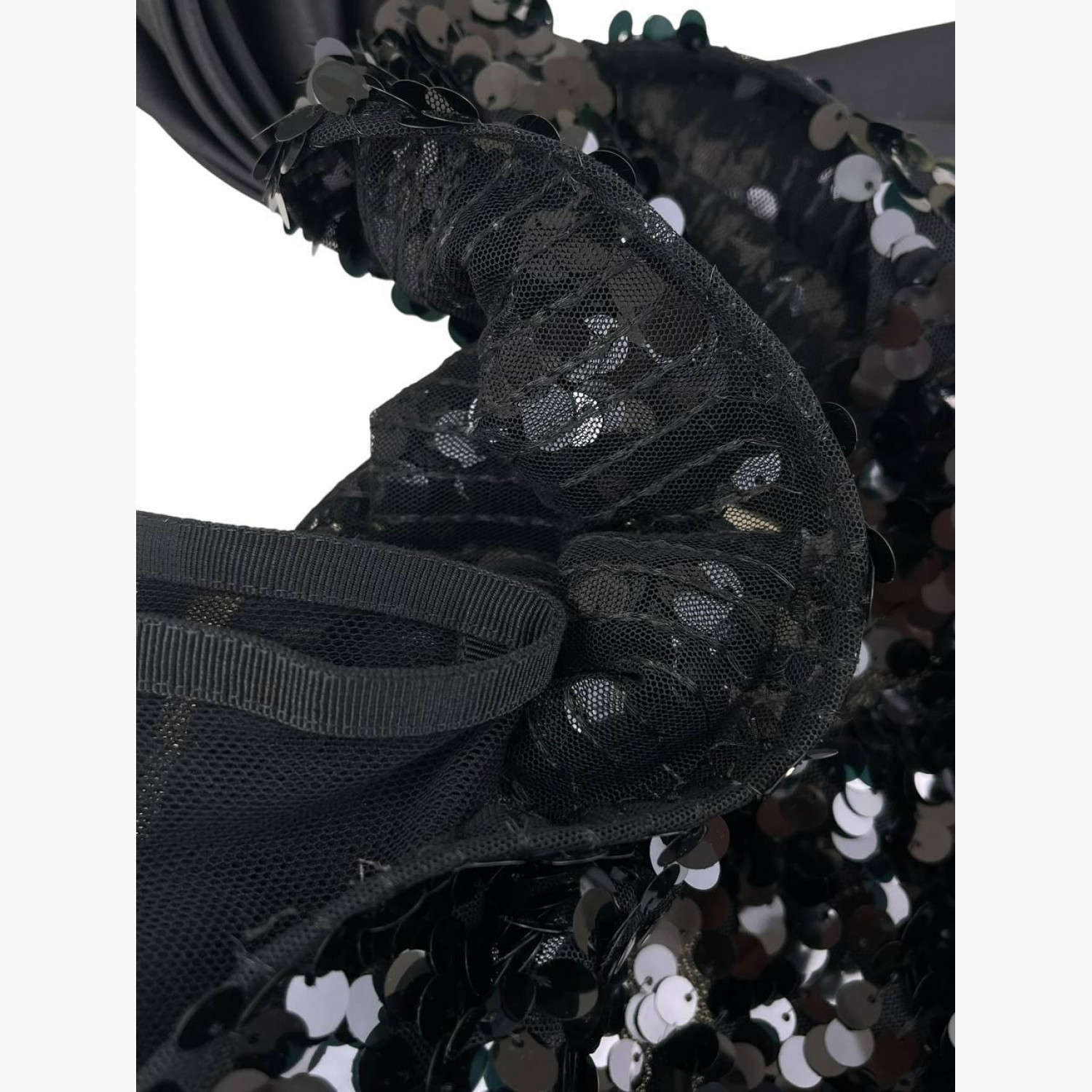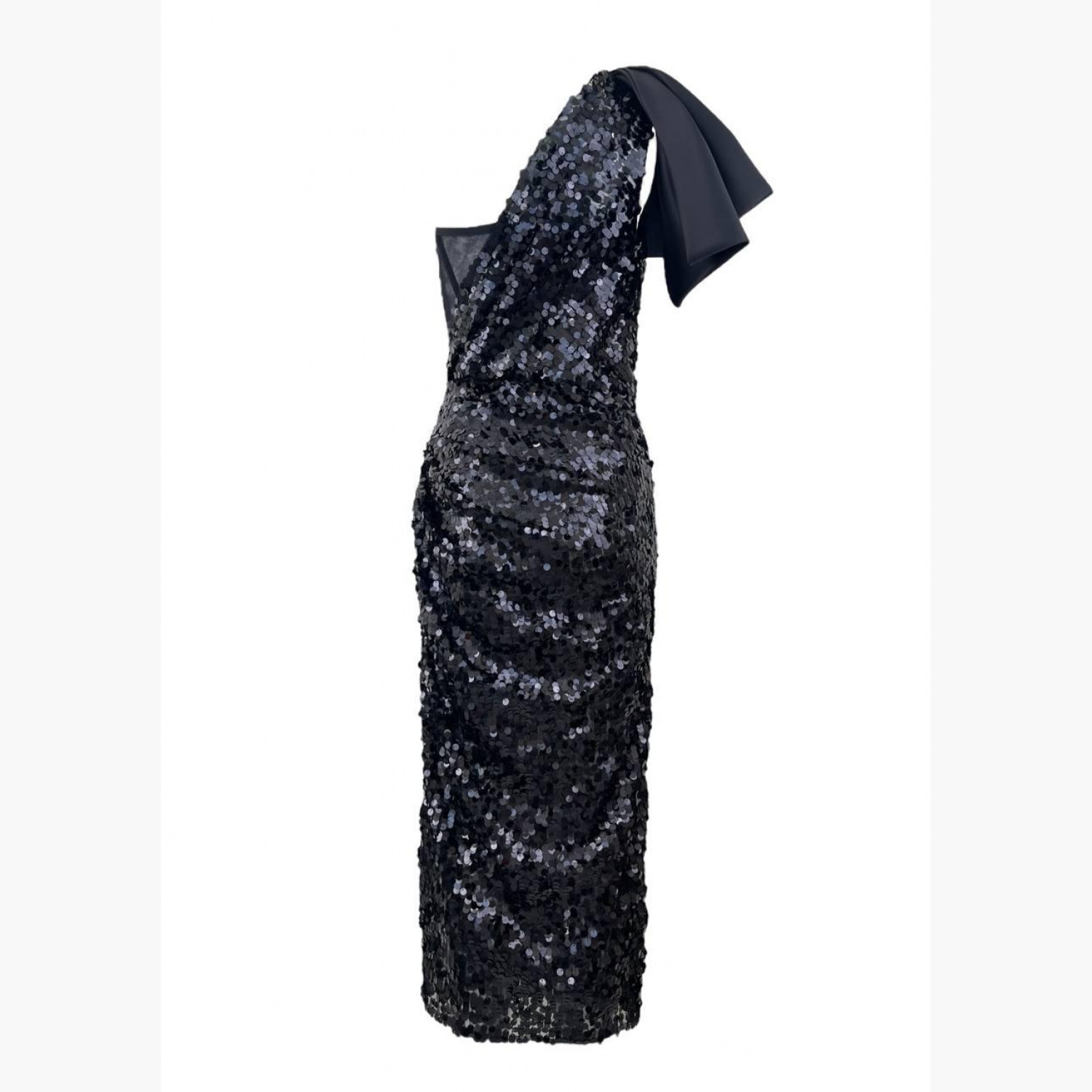 Чорна сукня з паєтками та бантом на одне плече. У відмінному стані, є ледь помітні нитки.