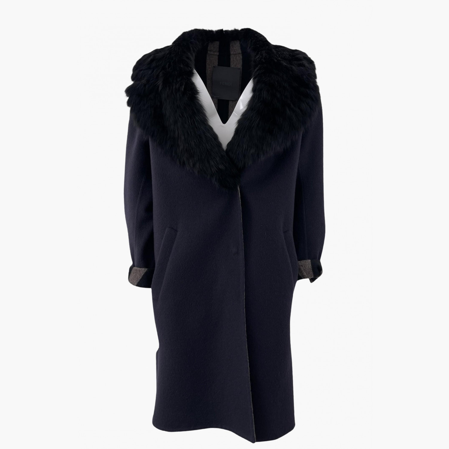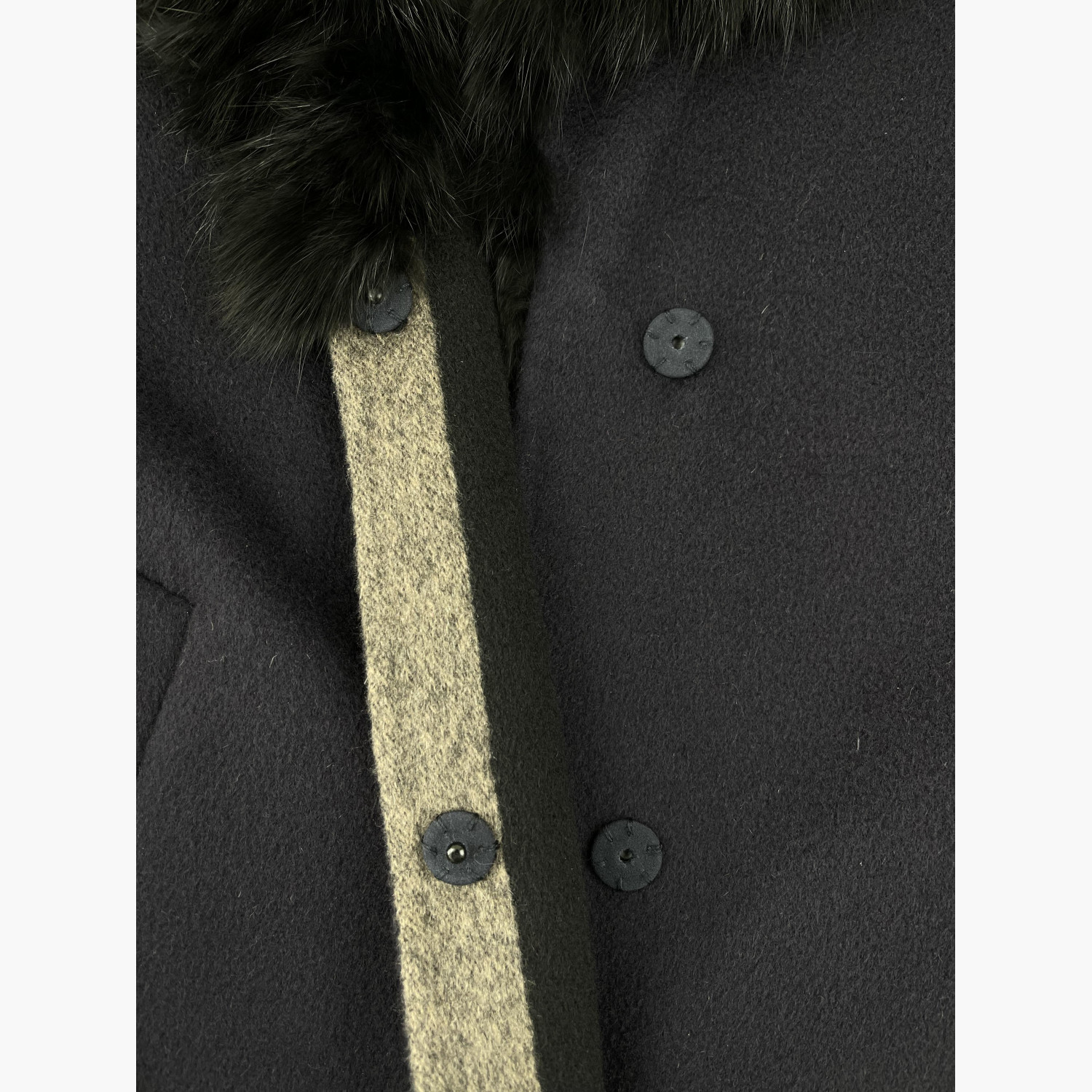 Темно-синє кашемірове пальто з чорним хутряним коміром. У відмінному стані.