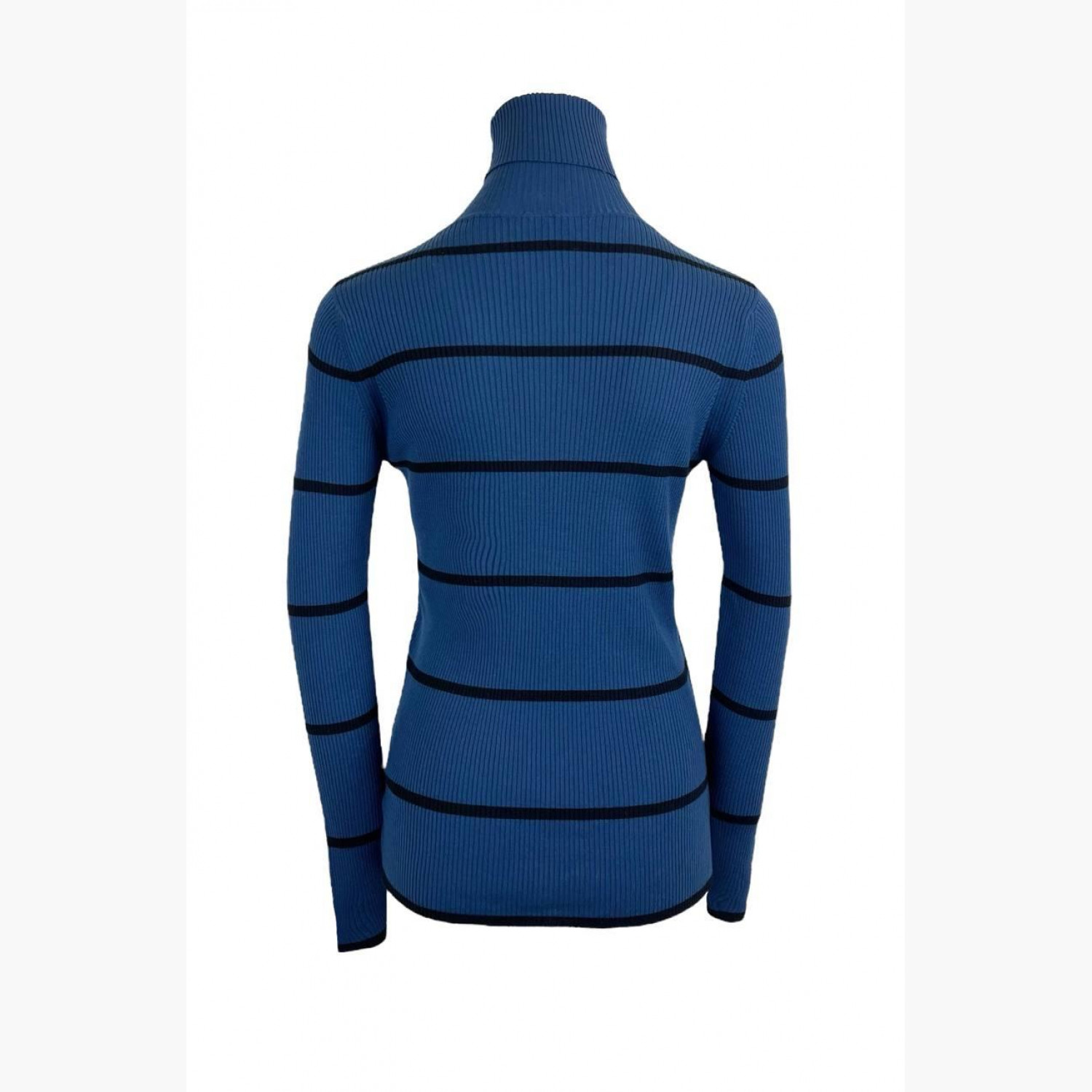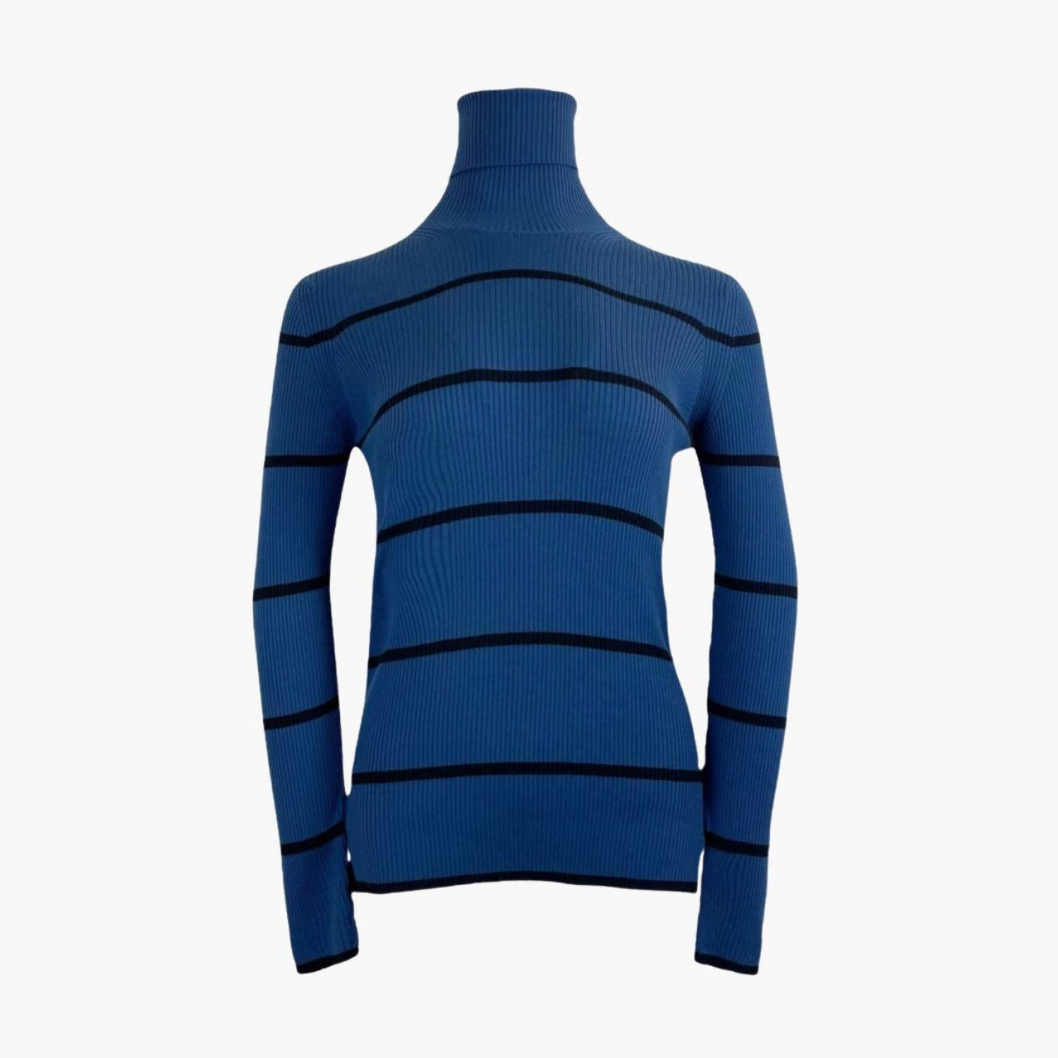 Трикотажний синій гольф у рубчик з чорною горизонтальною смужкою. У хорошому стані, без слідів вжитку.