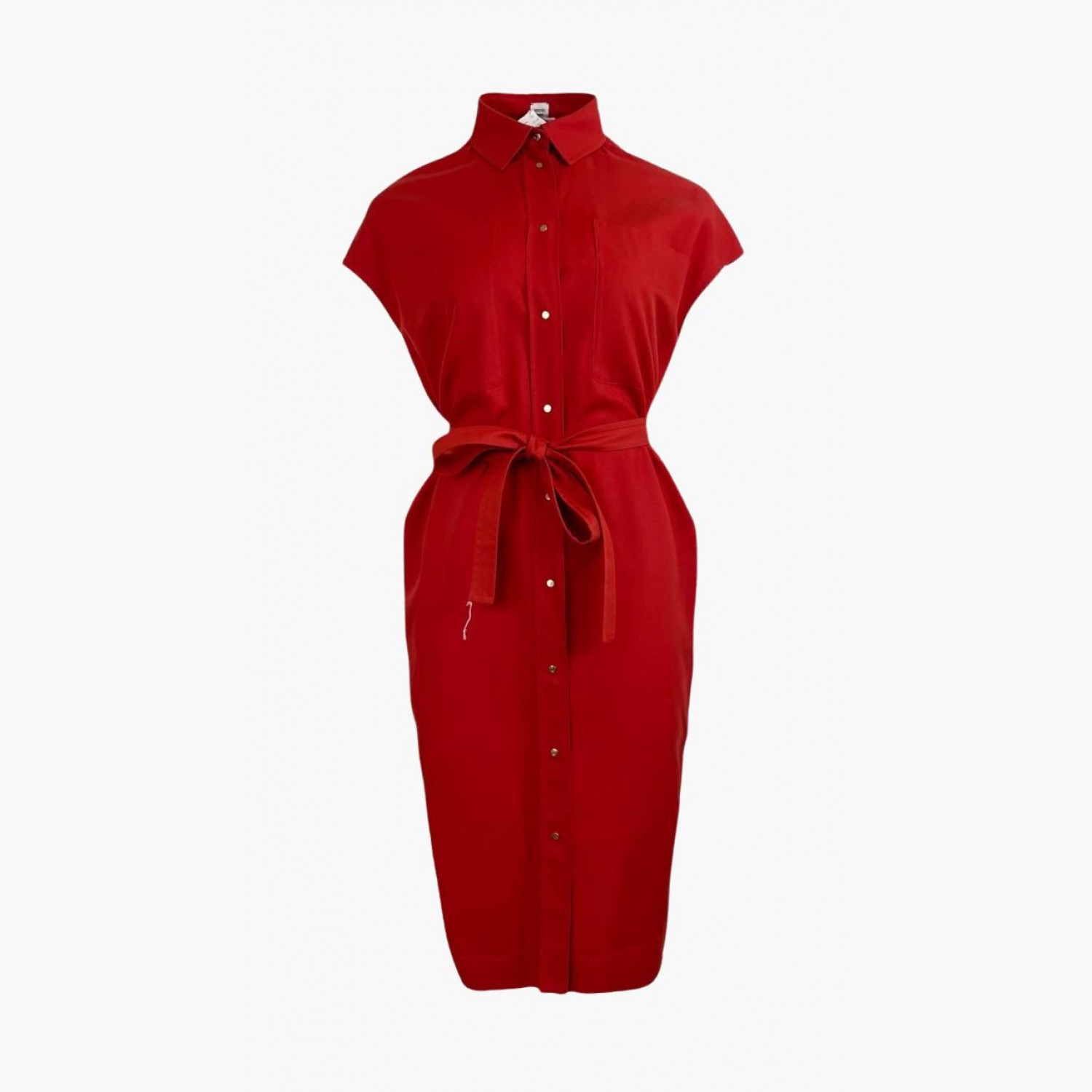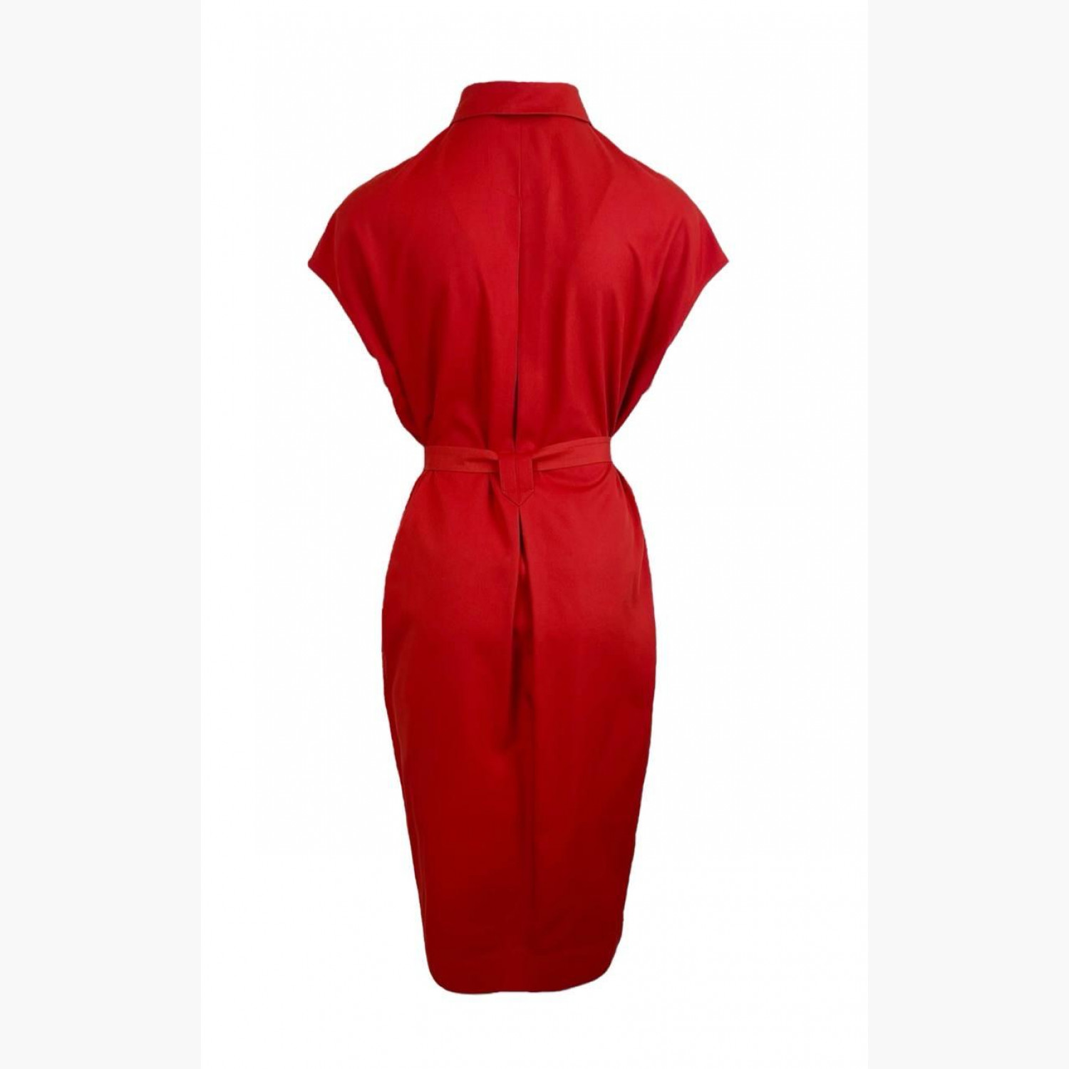 Червона шовкова сукня на кнопках із поясом і короткими рукавами. У відмінному стані.