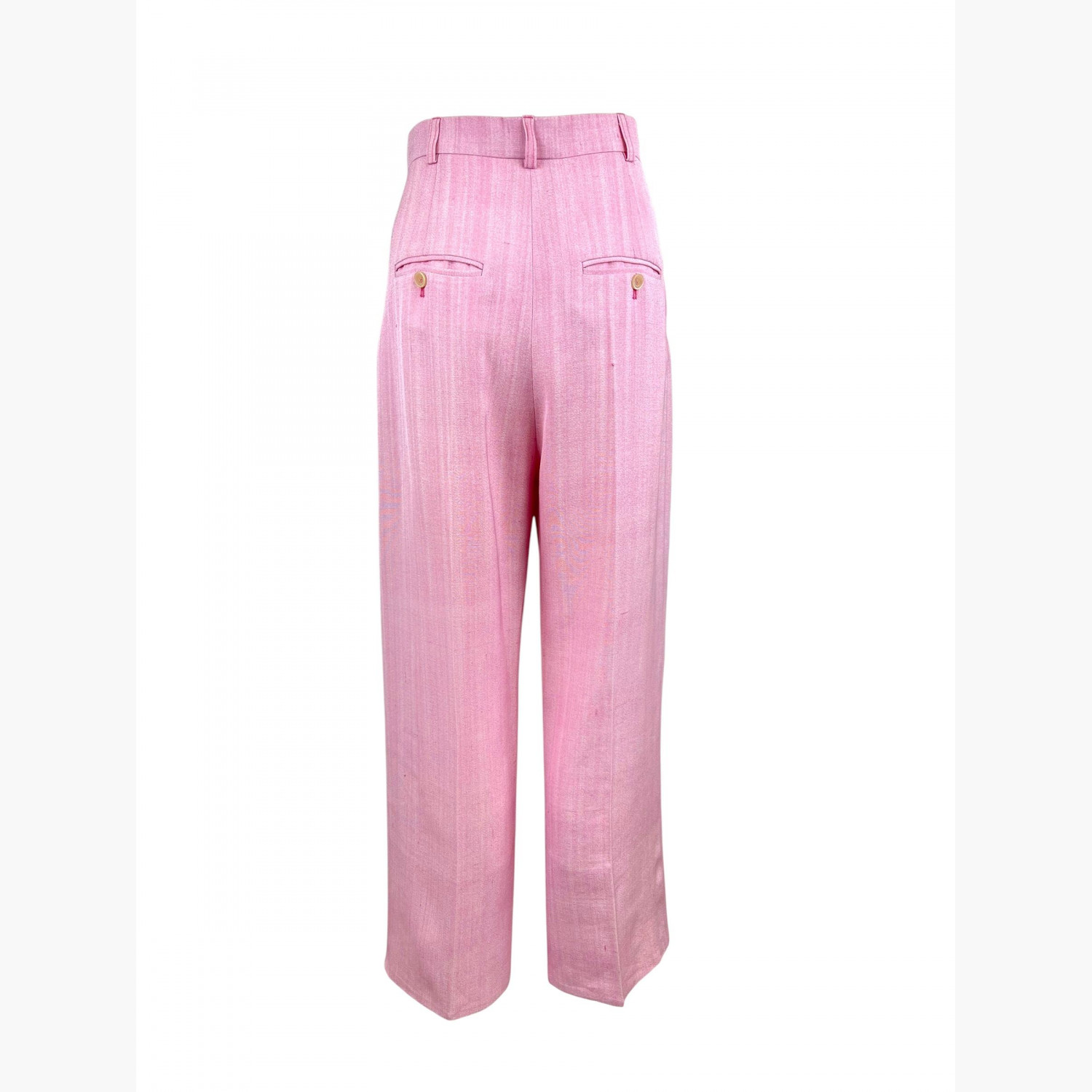Прямі рожеві брюки. Склад: основний матеріал — 57% віскоза, 43% шовк; підкладка — 51% віскоза, 49% бавовна. У відмінному стані, є незначні сліди вжитку.
