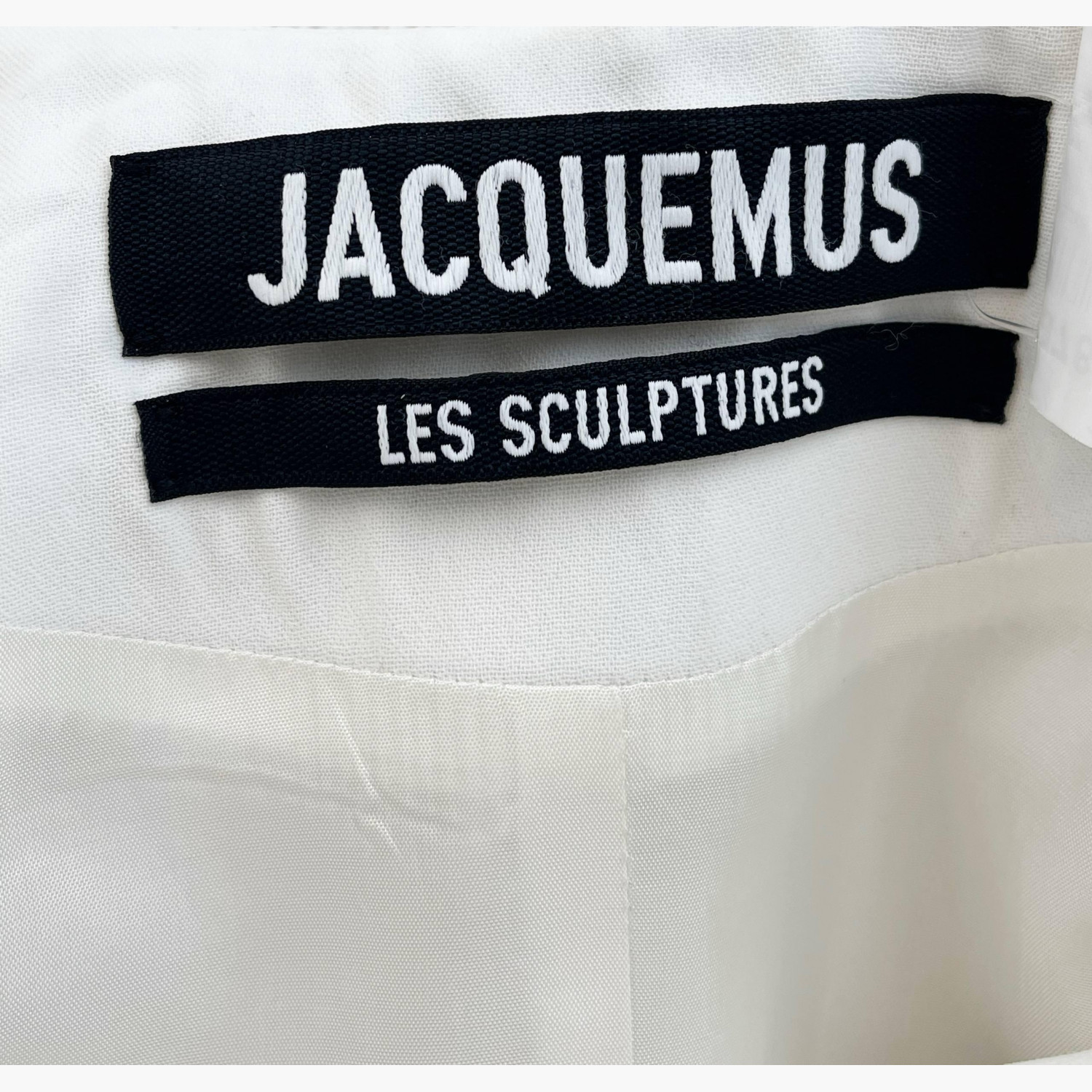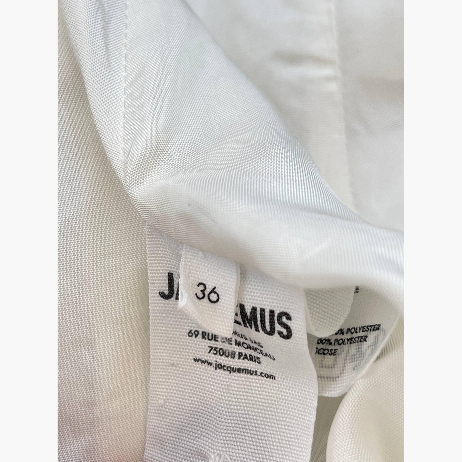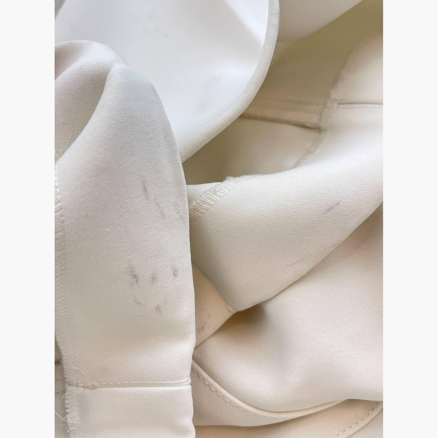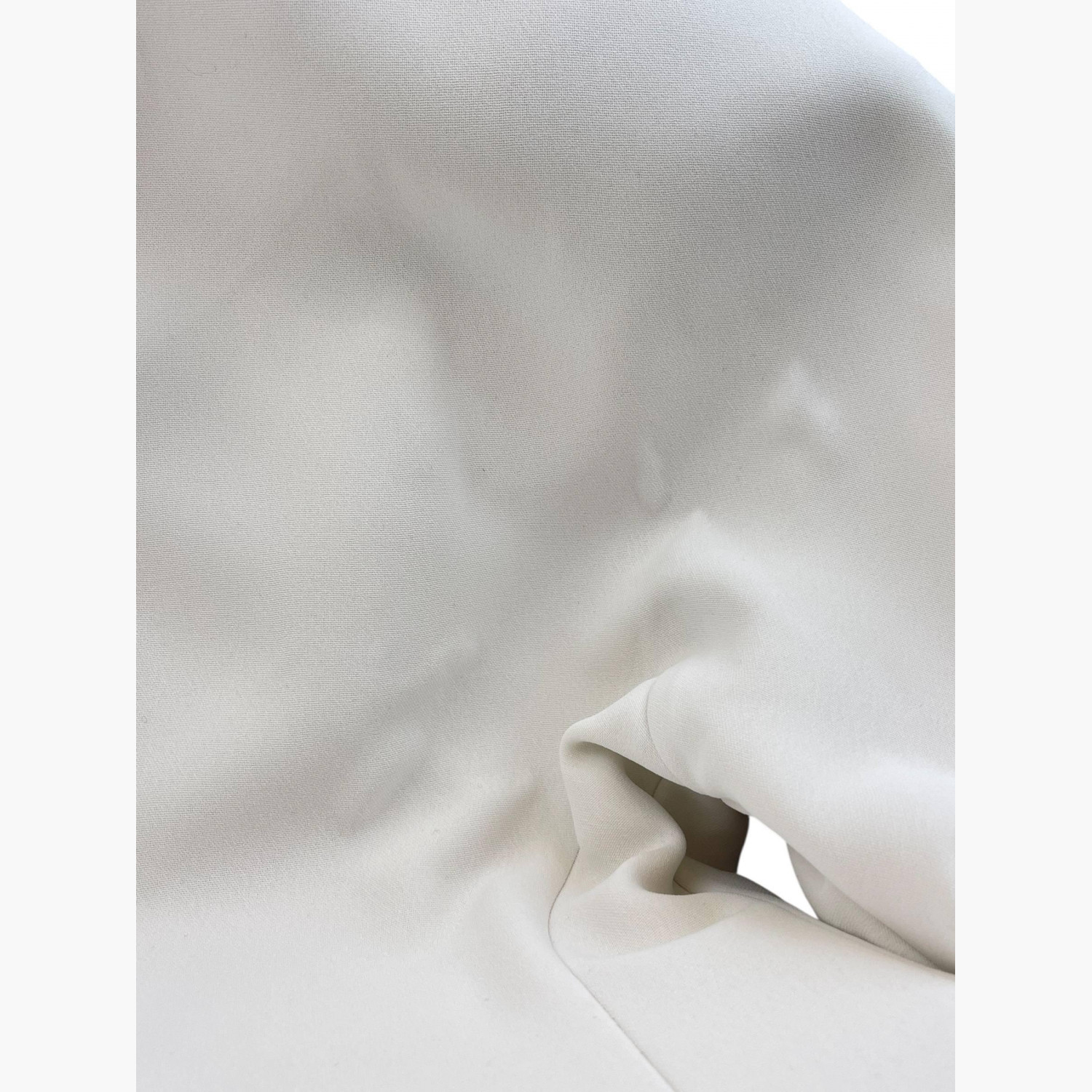 Білий приталений костюм із брюками палаццо.Склад: основна та додаткова тканина — 100% поліестер; підкладка — 100% віскоза.У гарному стані, є плями та дефект у вигляді відшарування дублерину.