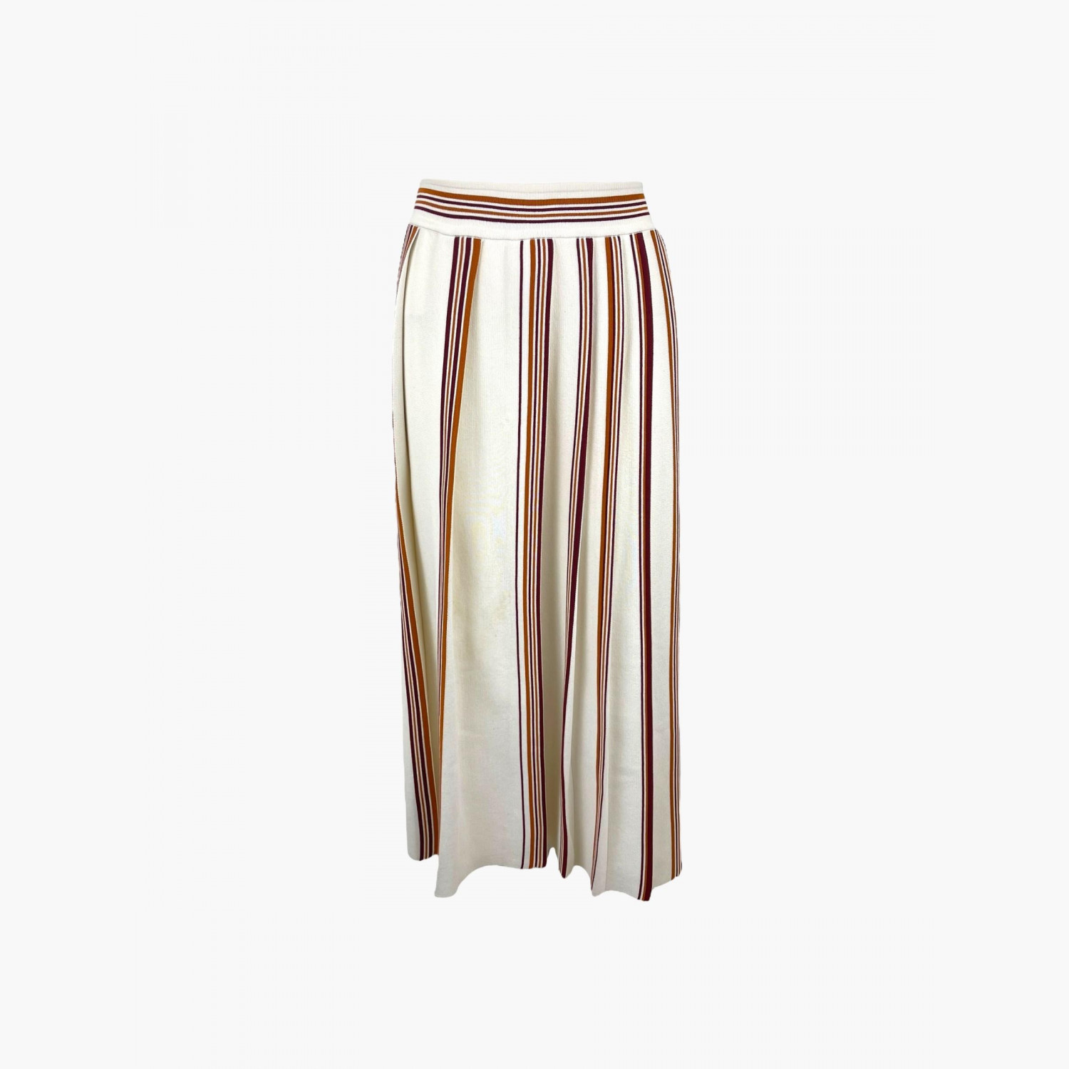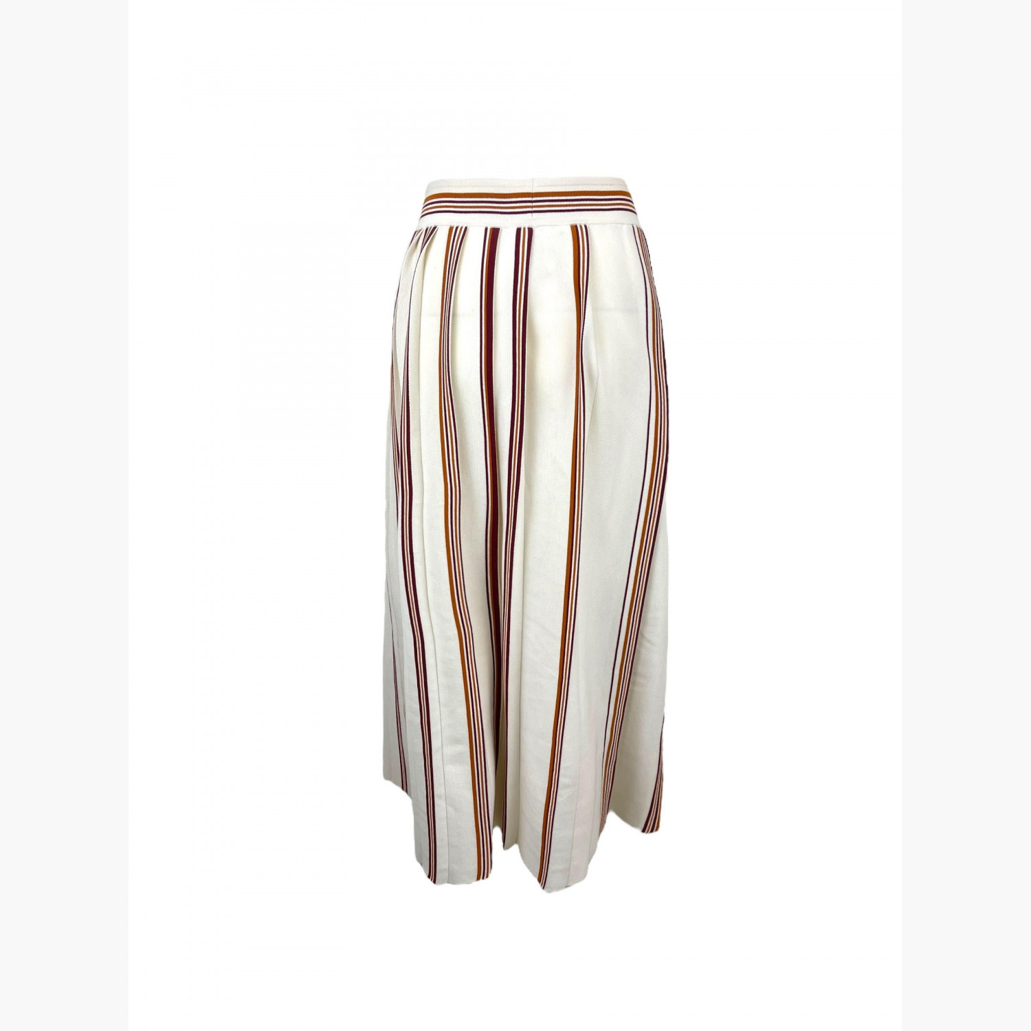 Спідниця максі молочного кольору в бордову вертикальну смужку. Склад: 55% шовк, 45% бавовна. У дуже гарному стані, є незначні сліди вжитку.
