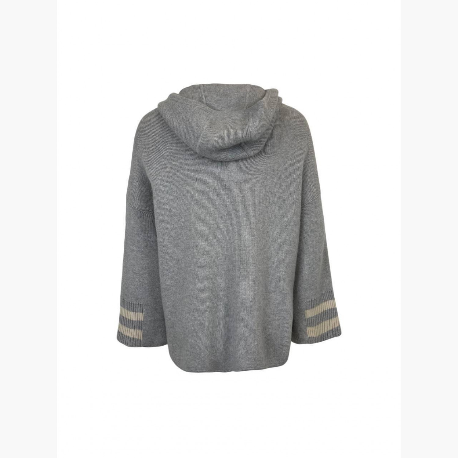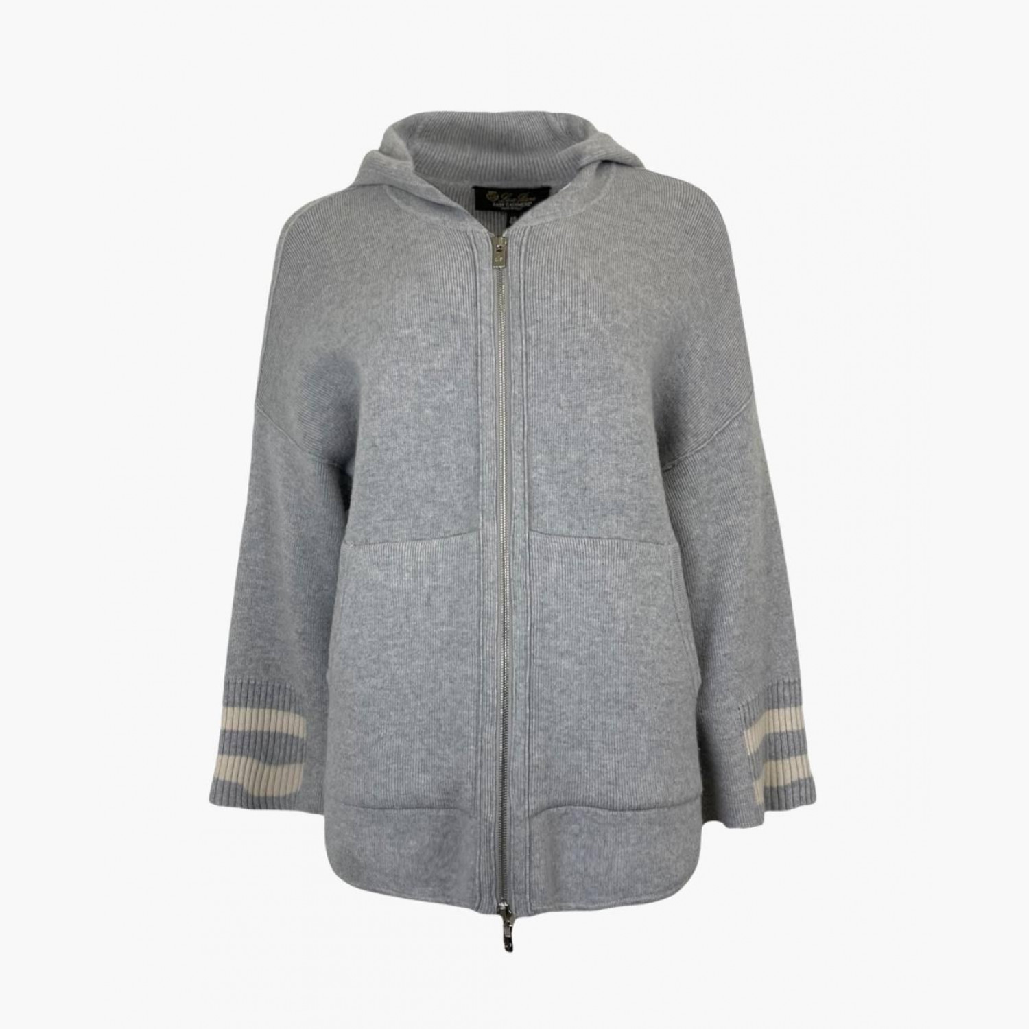 Сірий кашеміровий кардиган у смужку з капюшоном на блискавці. У хорошому стані, трохи скочується.