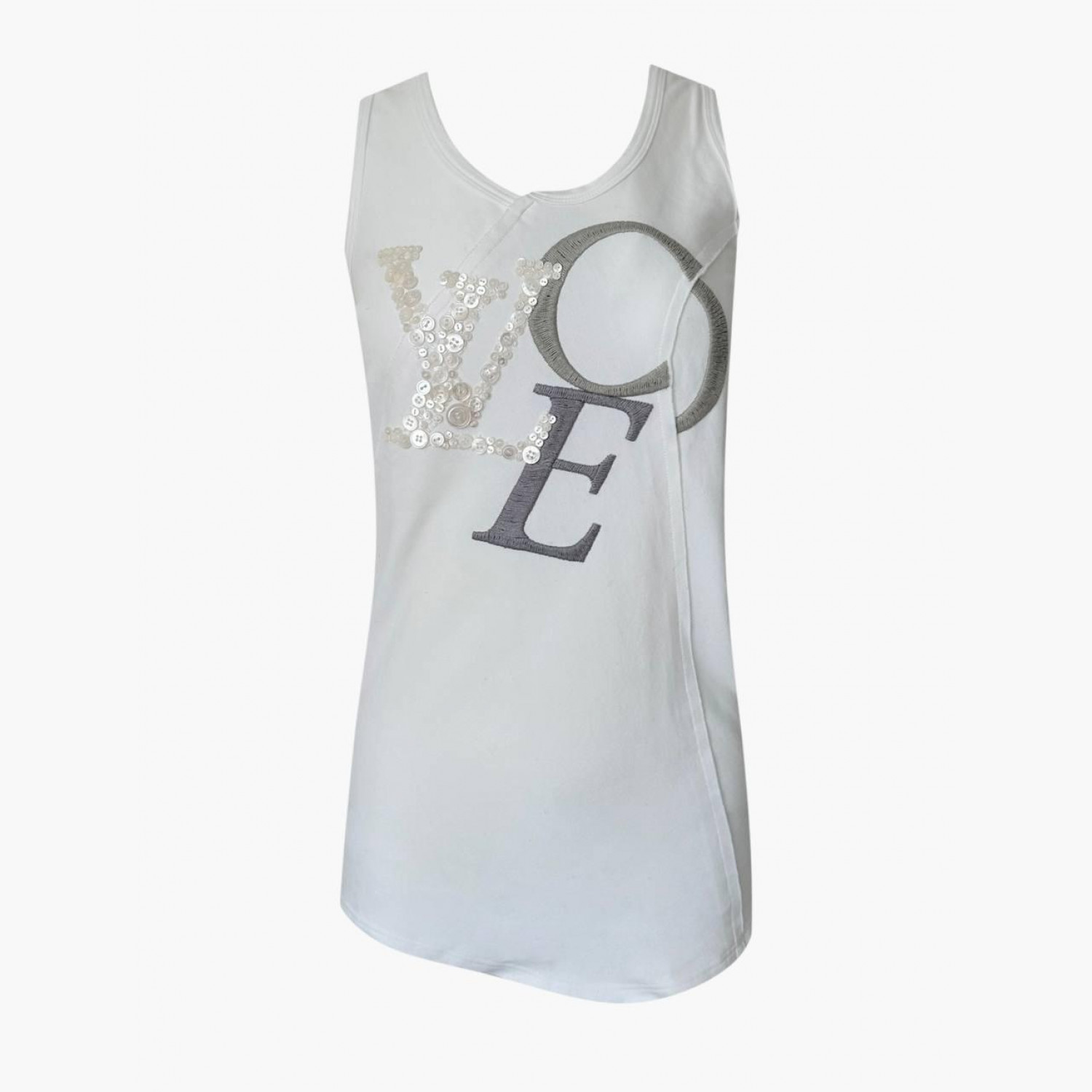 Біла майка з вишивкою. У хорошому стані, є сліди вжитку. Склад: 100% бавовна.