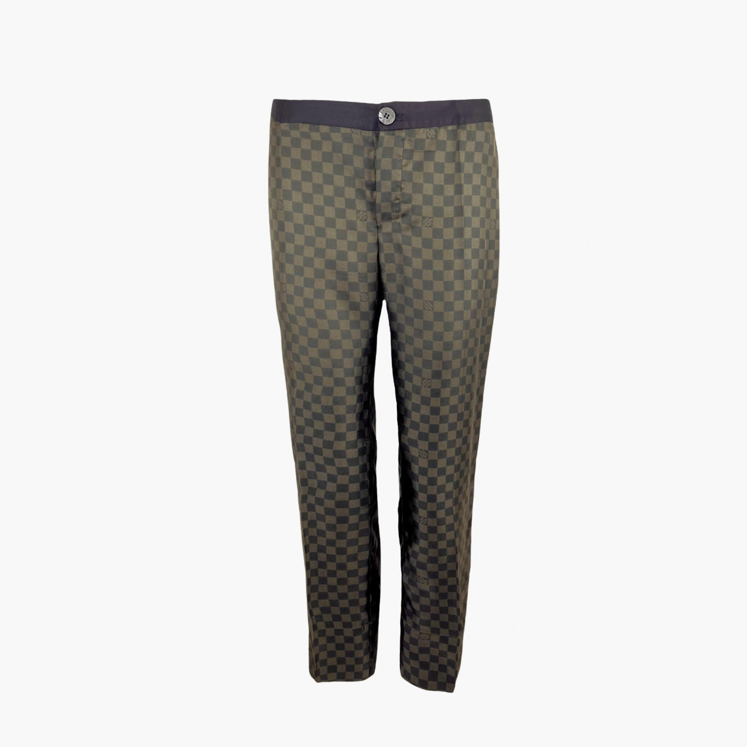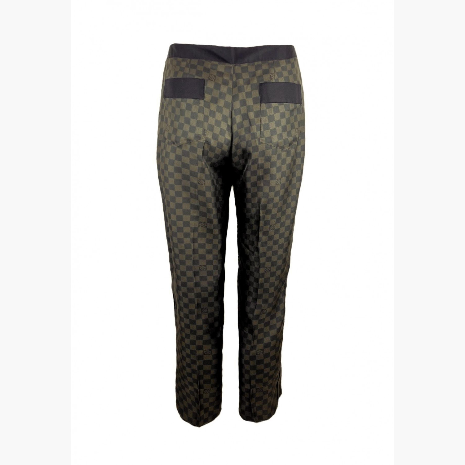 Коричневі шовкові звужені штани середньої посадки у чорну клітинку. У відмінному стані, без слідів вжитку.