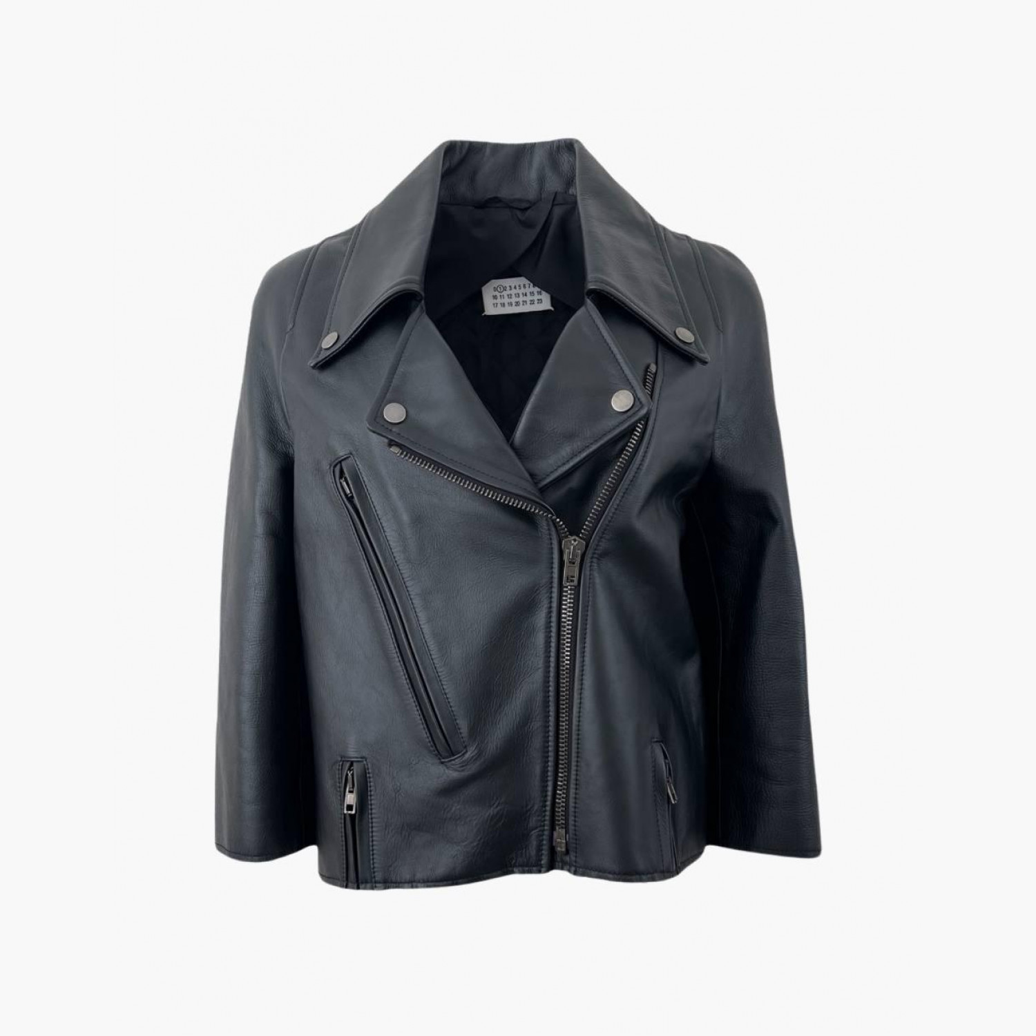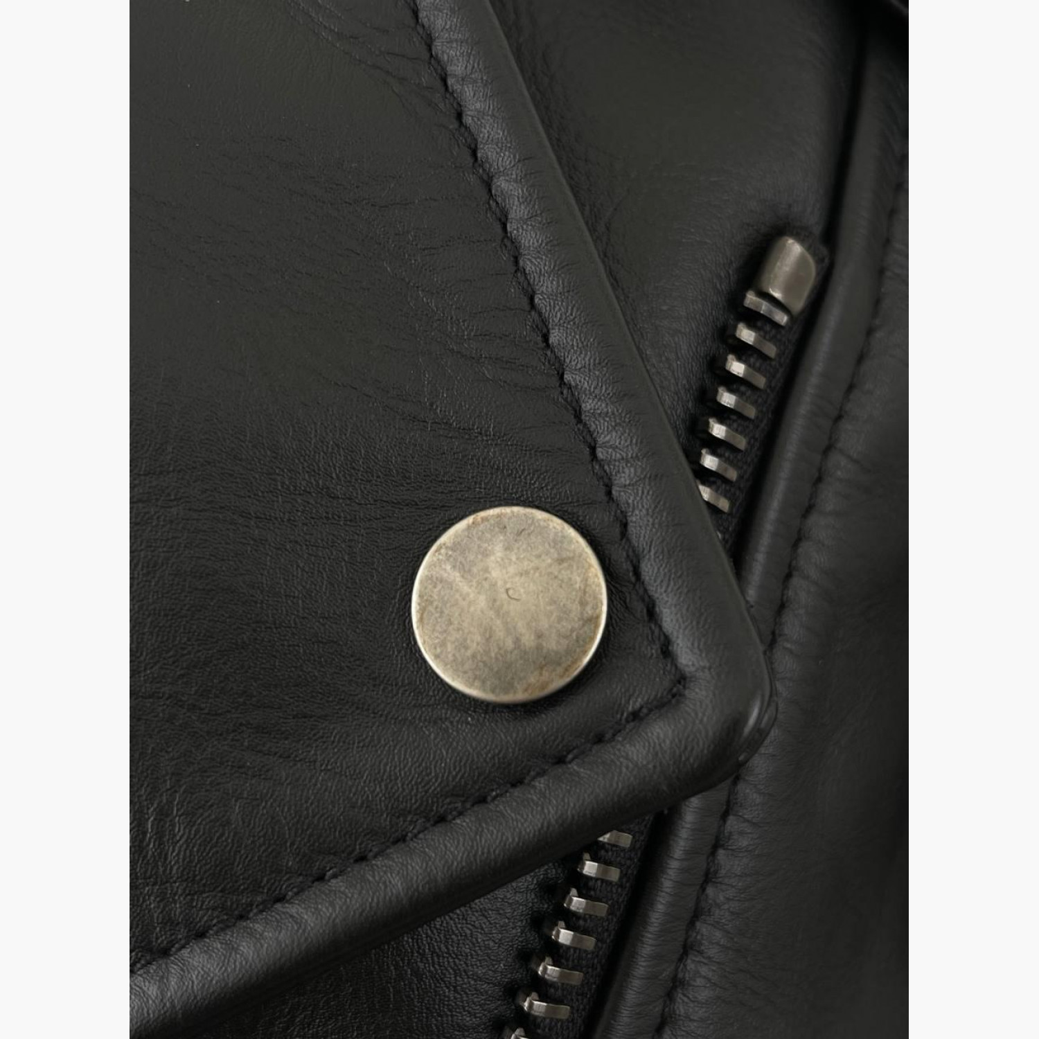 Чорна шкіряна куртка. Склад: основний матеріал — 100% коров’яча шкіра; підкладка рукава — 100% віскоза; наповнювач — 100% поліестер. У хорошому стані, є сліди вжитку.