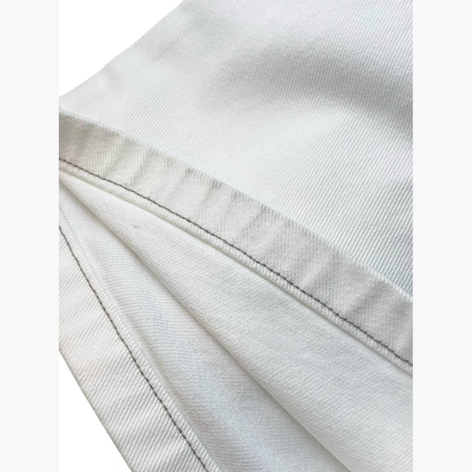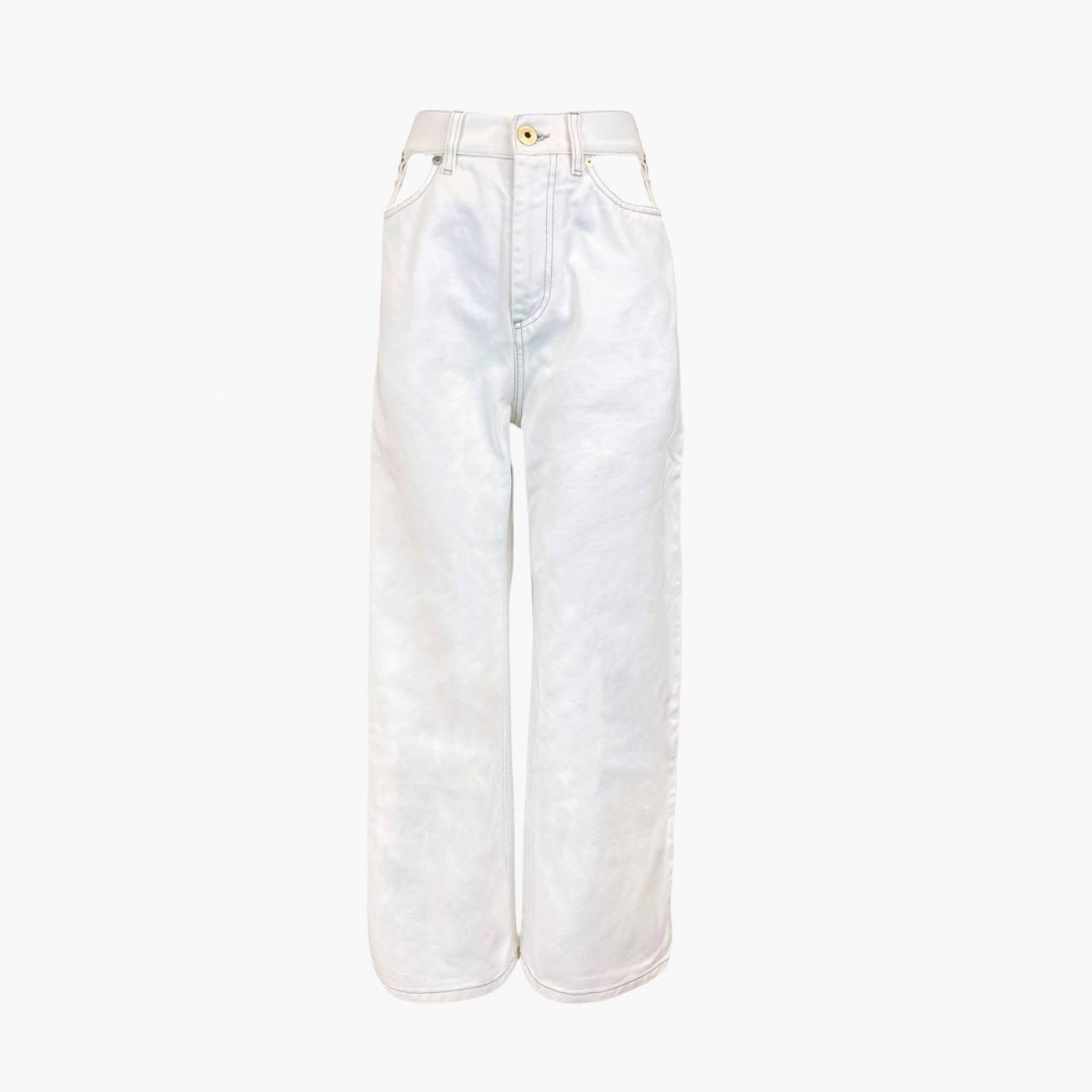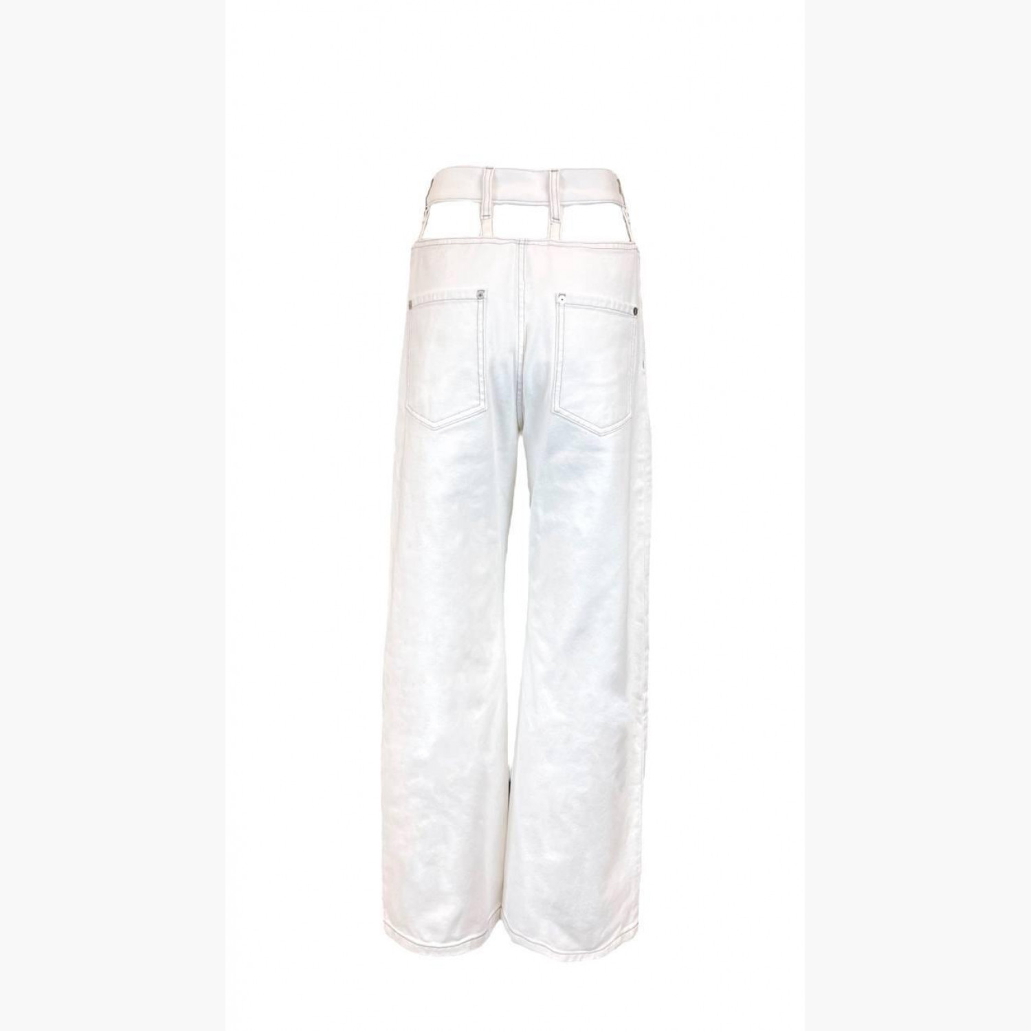 Білі широкі джинси з прорізами в зоні кишень і пояса. У дуже хорошому стані, є сліди вжитку.