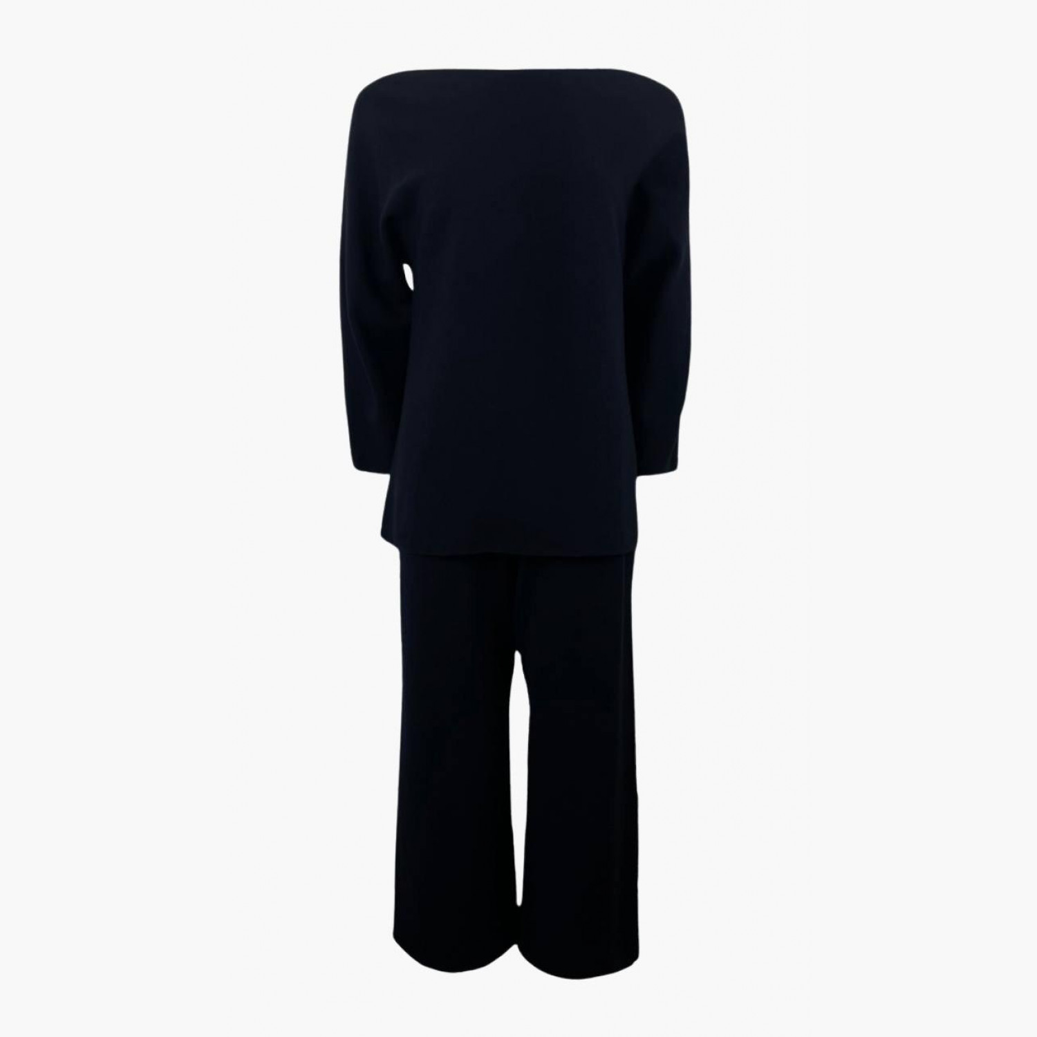Чорний трикотажний костюм. Склад: 72% віскоза, 28% поліестер. У дуже гарному стані, є катишки та ледь помітні плями.