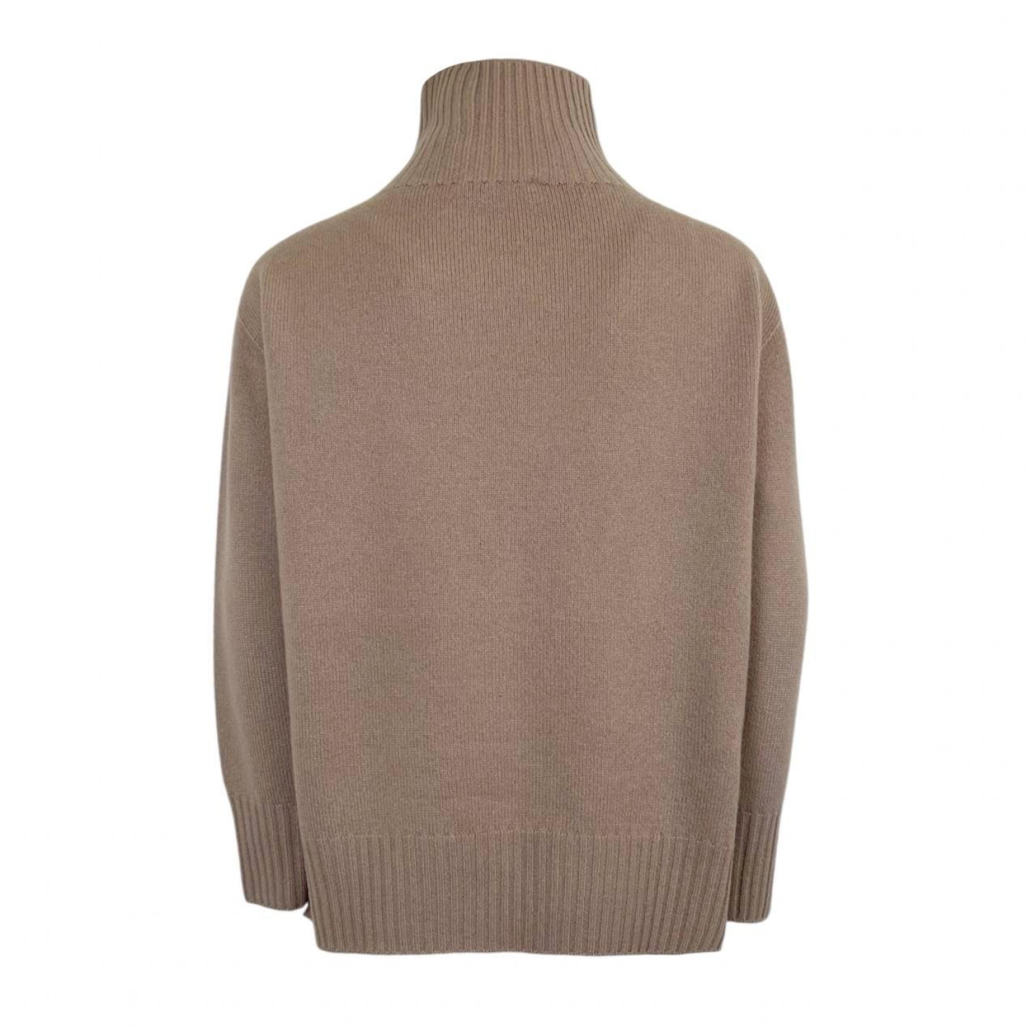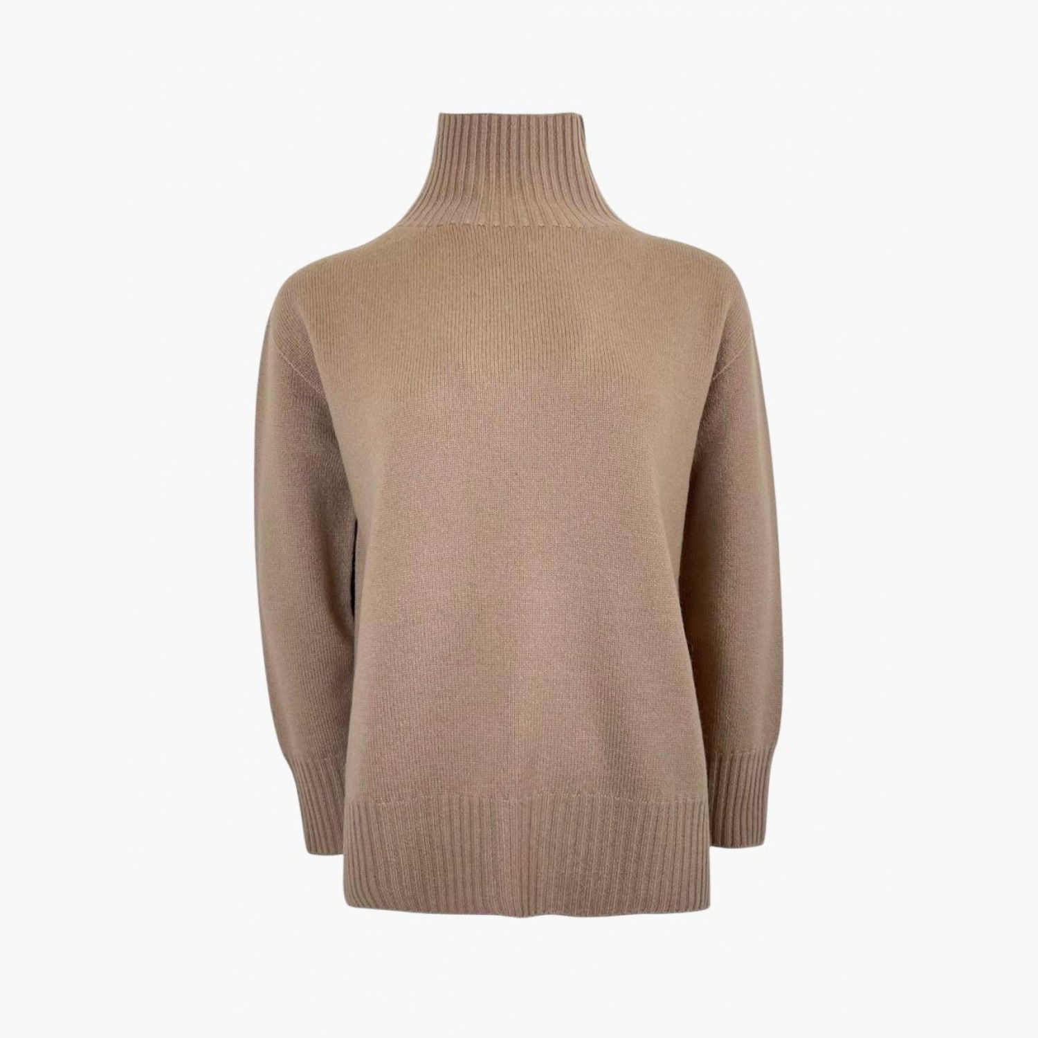 Бежевий трикотажний светр з високим коміром. У дуже хорошому стані, без слідів вжитку.