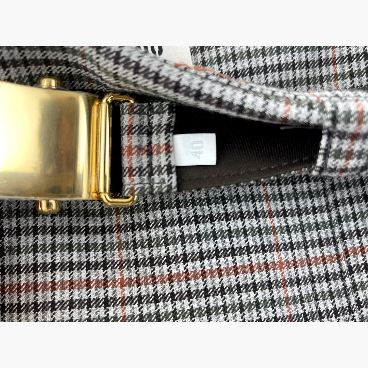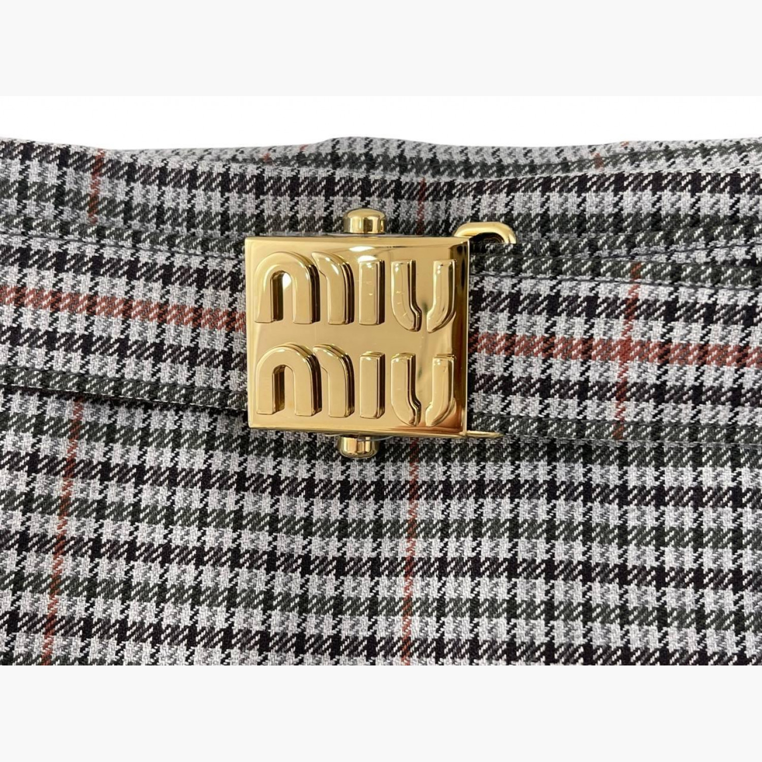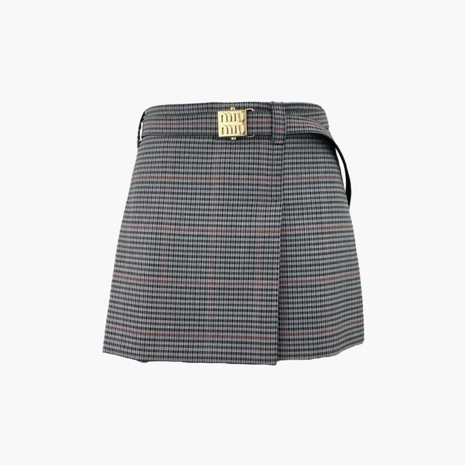 Сіра міні-спідниця в клітинку з ременем і золотою пряжкою. Абсолютно нова.