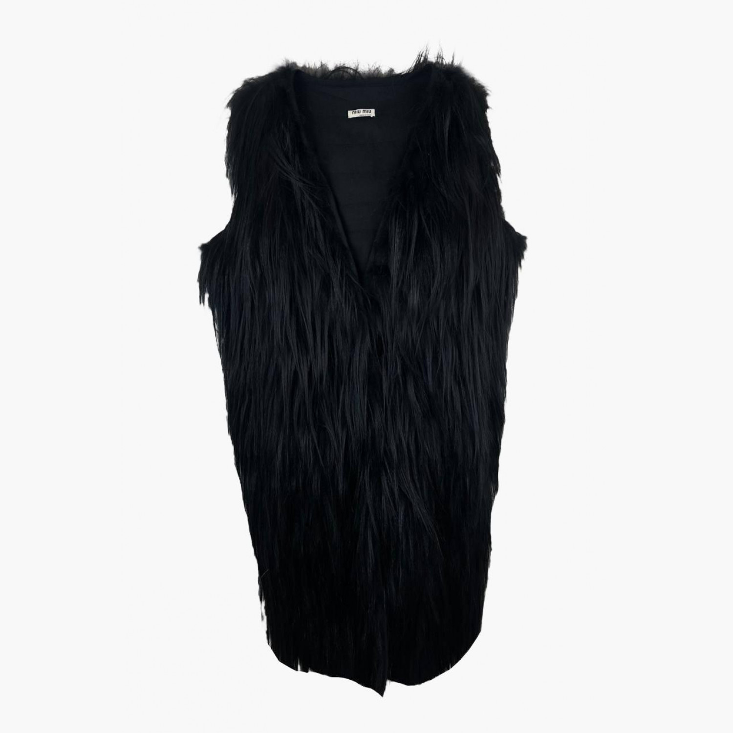 Чорна хутряна жилетка з козячого хутра. Склад: основний матеріал — 100% хутро кози; підкладка — 100% вовна. У відмінному стані, без слідів вжитку.