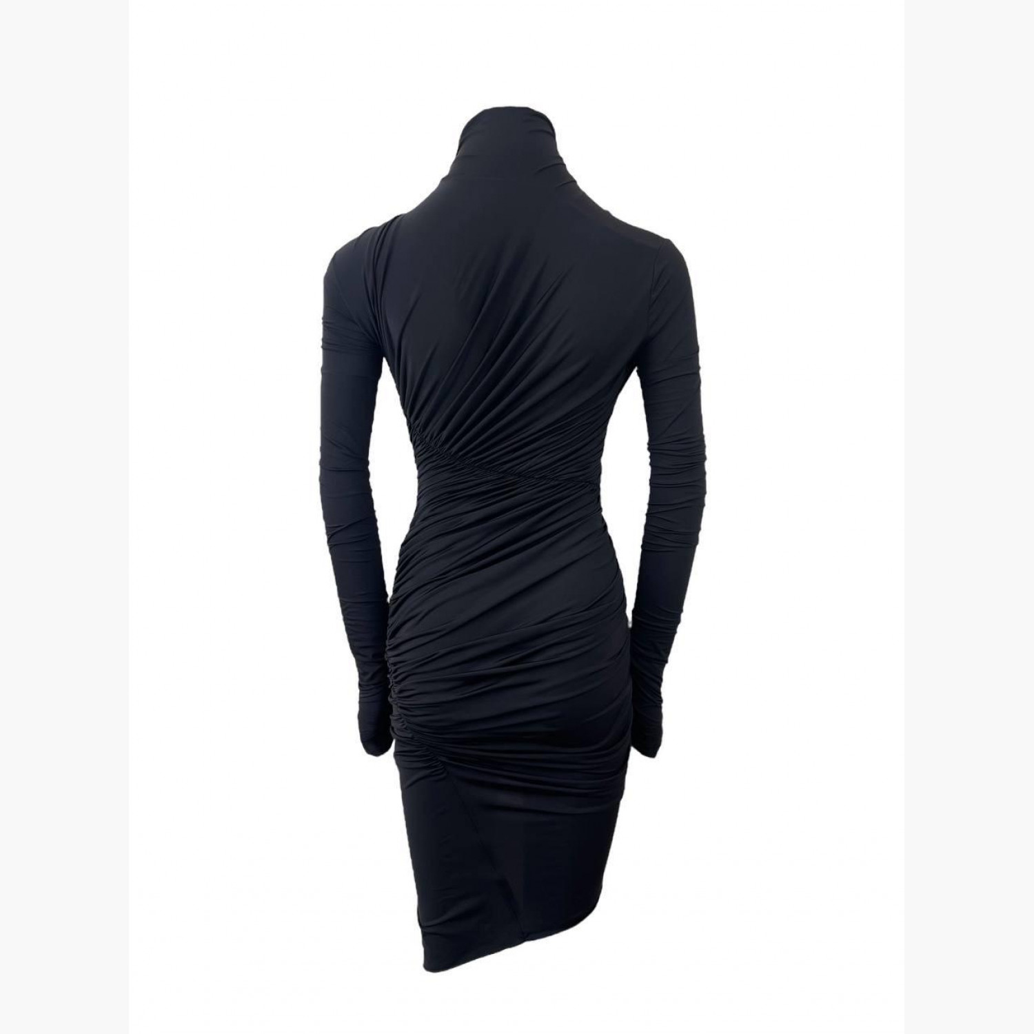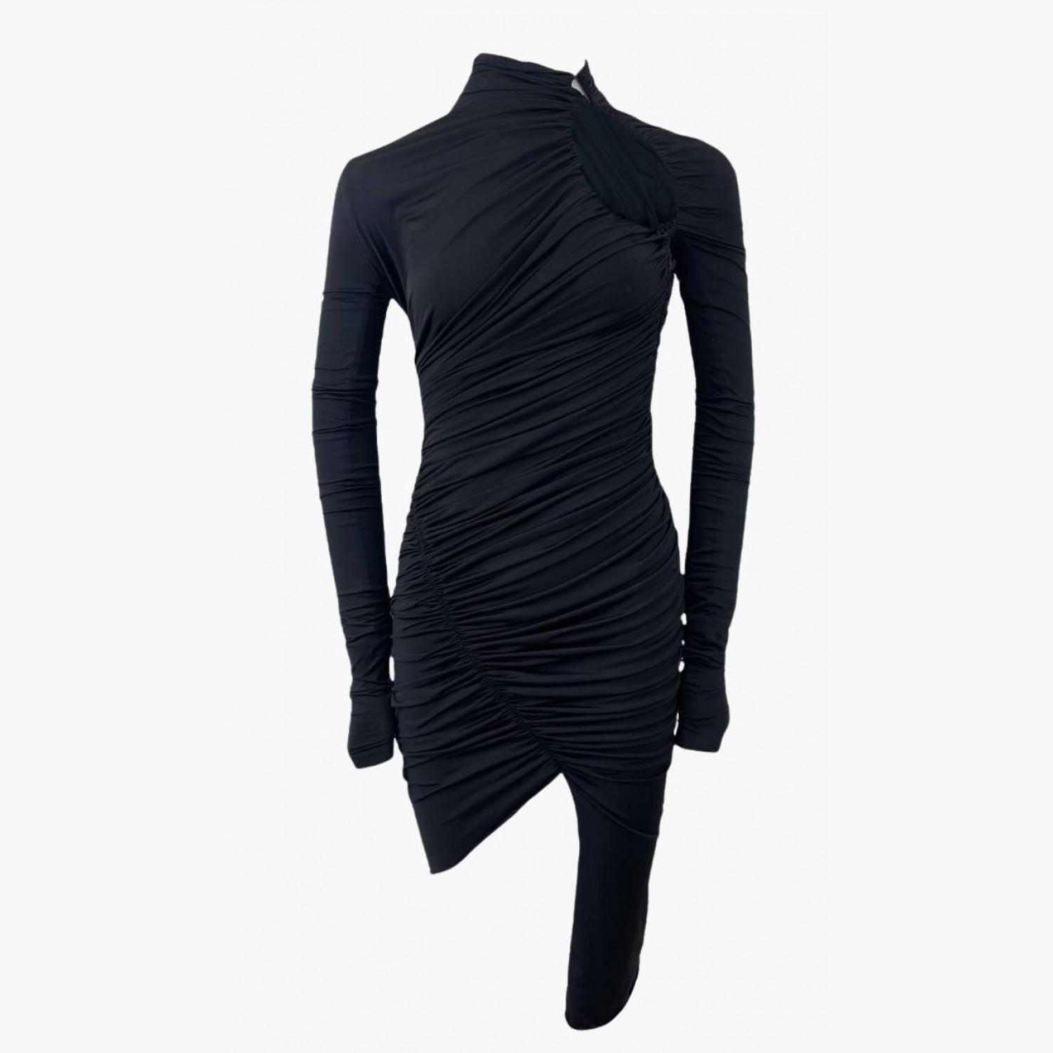 Чорна сукня з драпіруванням. Склад — 82% поліамід, 18% еластан. У відмінному стані, є незначні сліди вжитку.
