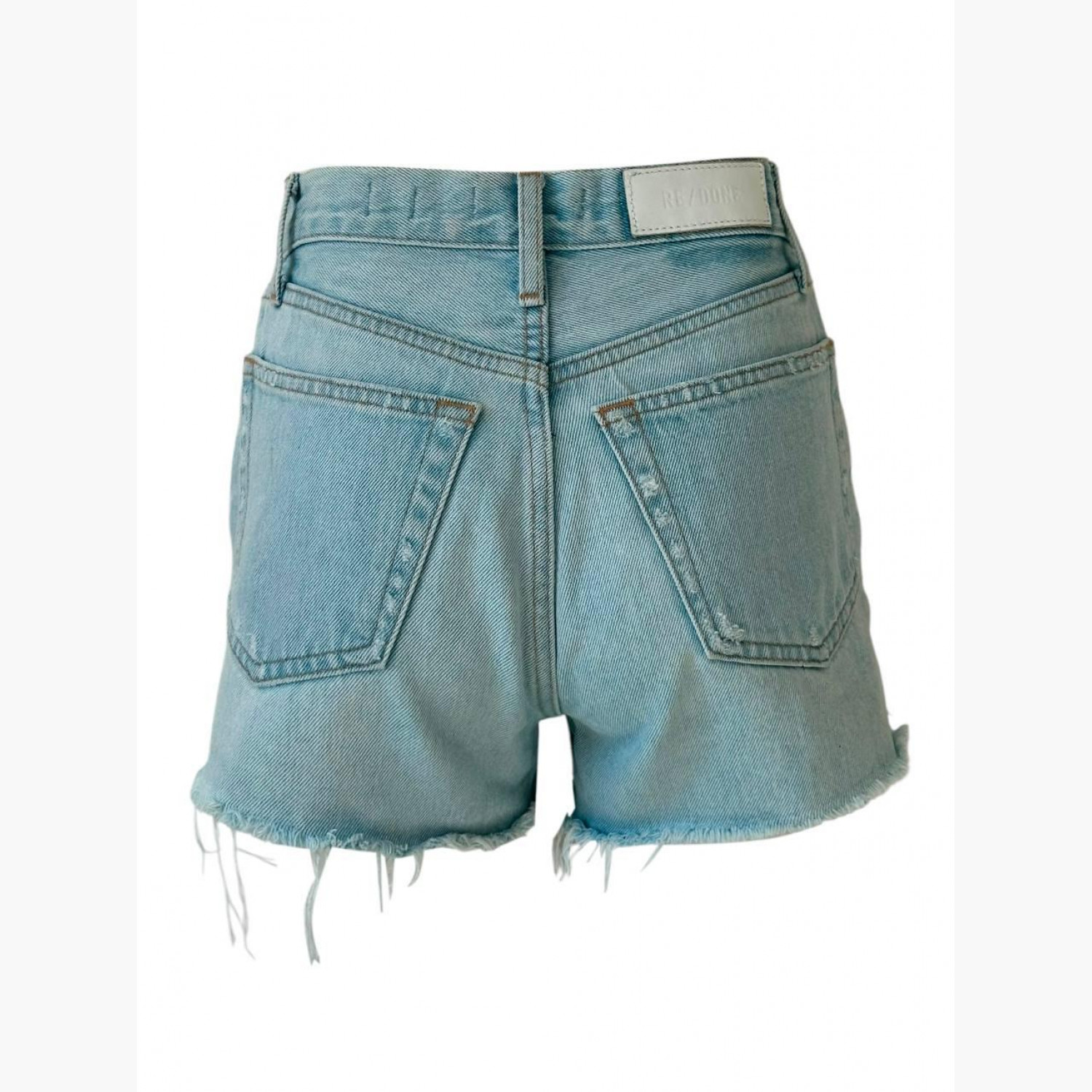 Голубые джинсовые шорты с потертостями. В хорошем состоянии, есть небольшие пятна. Состав: 100% хлопок.