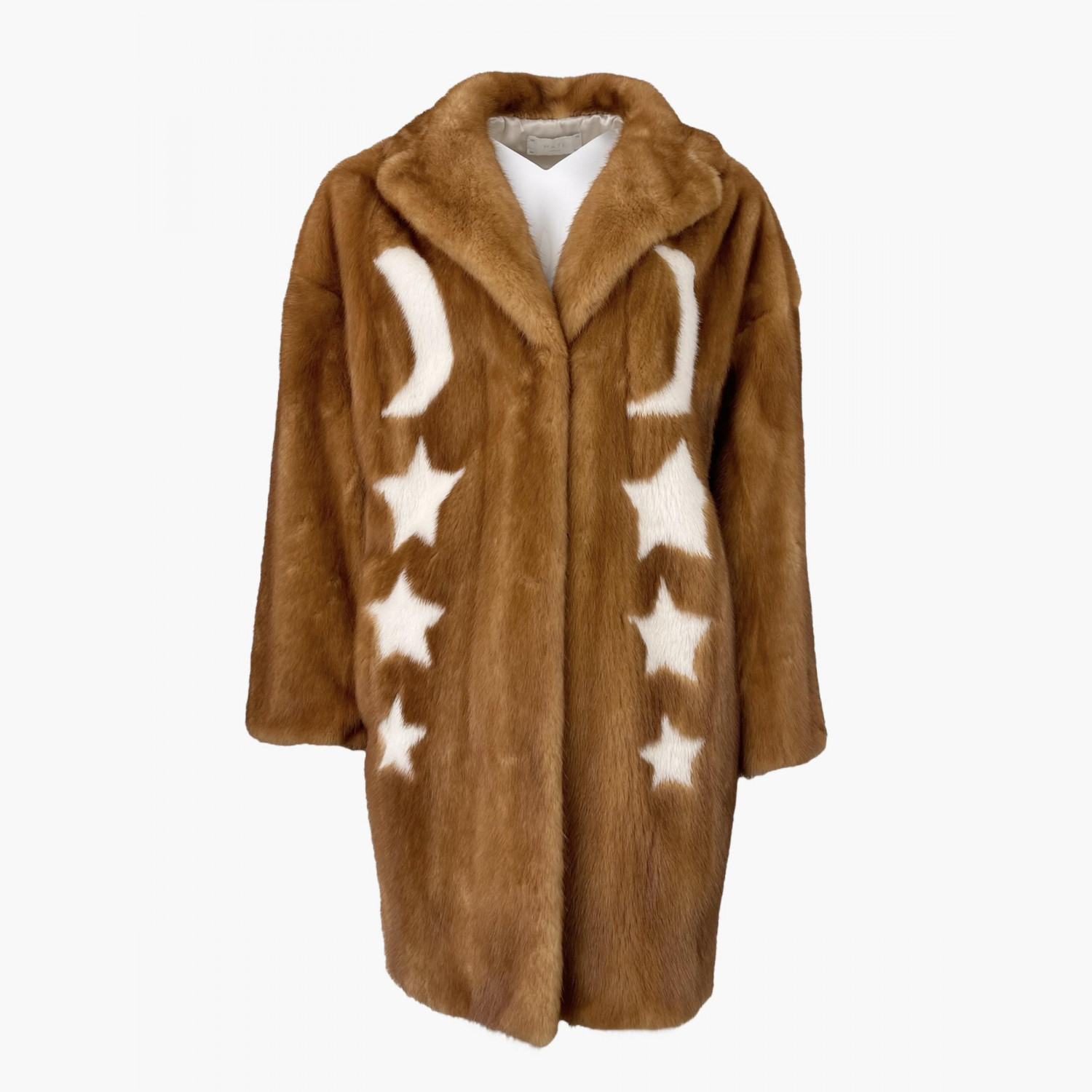Руда шуба із норки з білими зірками. Гарний стан, є сліди вжитку та незначні дефекти.